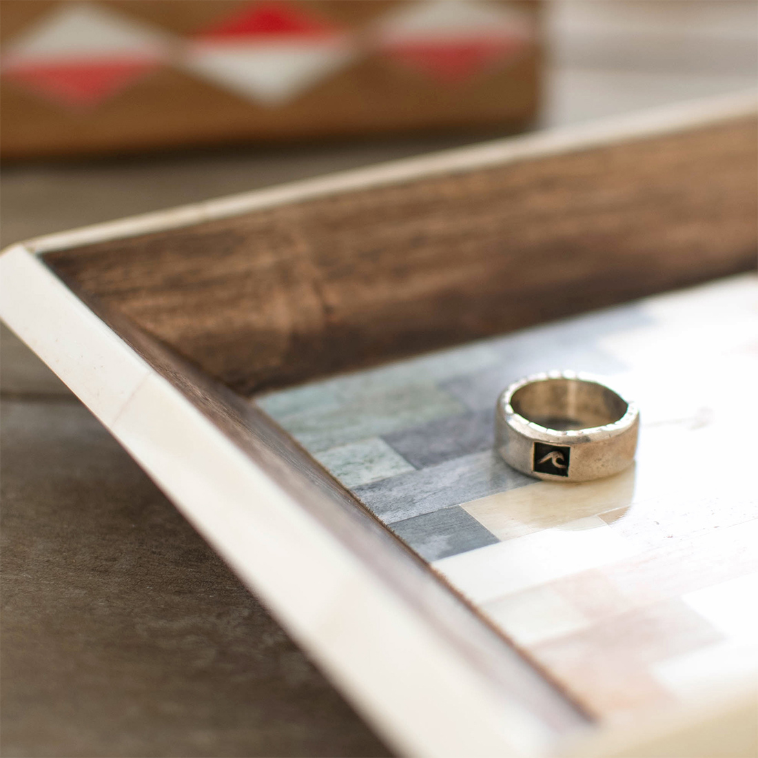 少し深めのスクエア型トレイは小物入れやディスプレイなどにお使いいただけます。美しい質感を生かしたデザインはどんなインテリアにも相性抜群です。