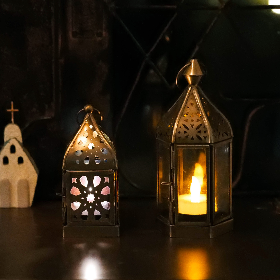 キャンドルの灯りが透かし柄の模様を照らし、お部屋をオリエンタルな空間に。神秘的な光と繊細なデザインが、癒しのひとときを与えてくれます。