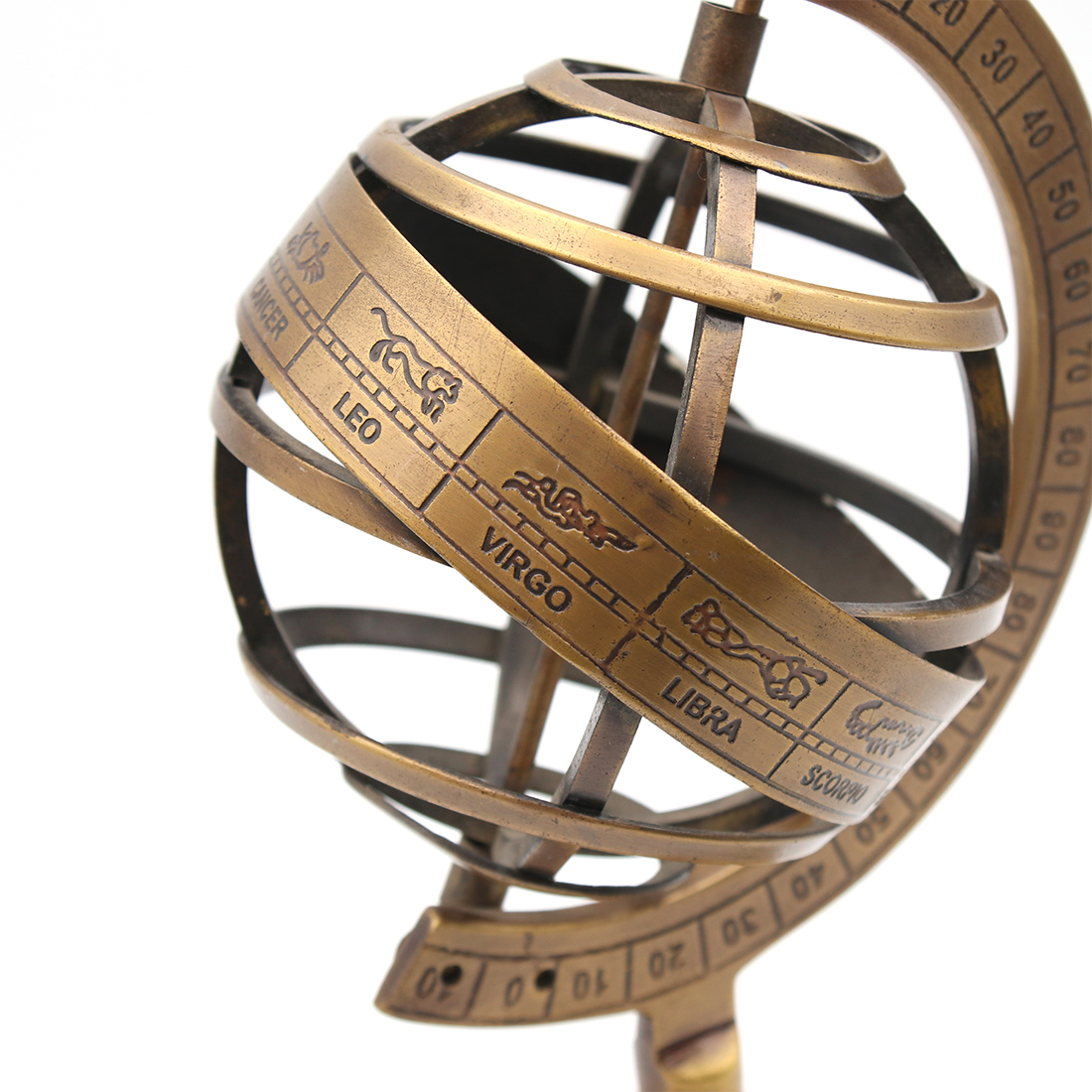 軽くて錆びにくいインドのアルミで作られた天球儀。アンティーク調の落ち着いたくすんだ色合いが、雰囲気のあるインテリアとしてお部屋を素敵に演出します。