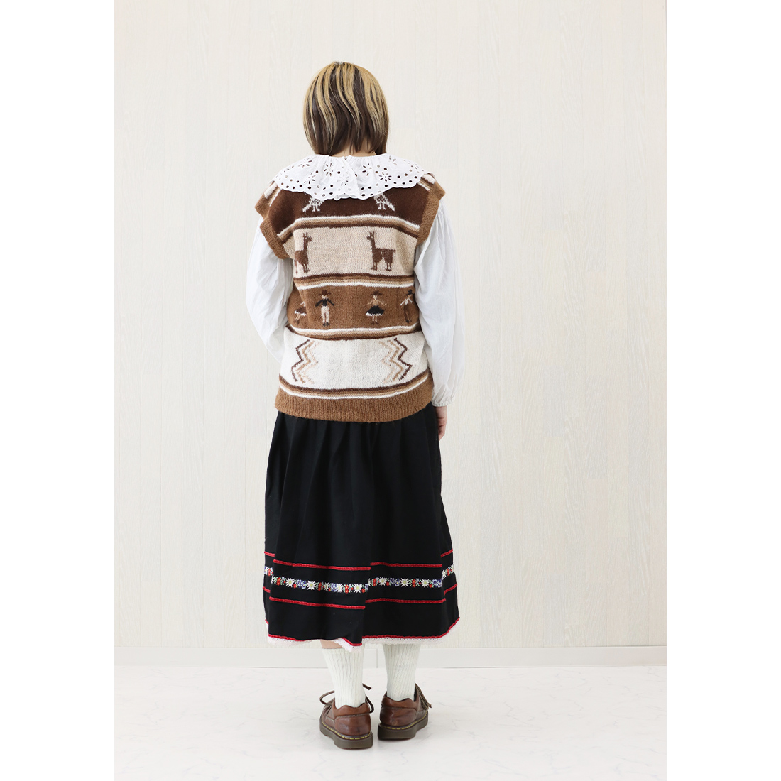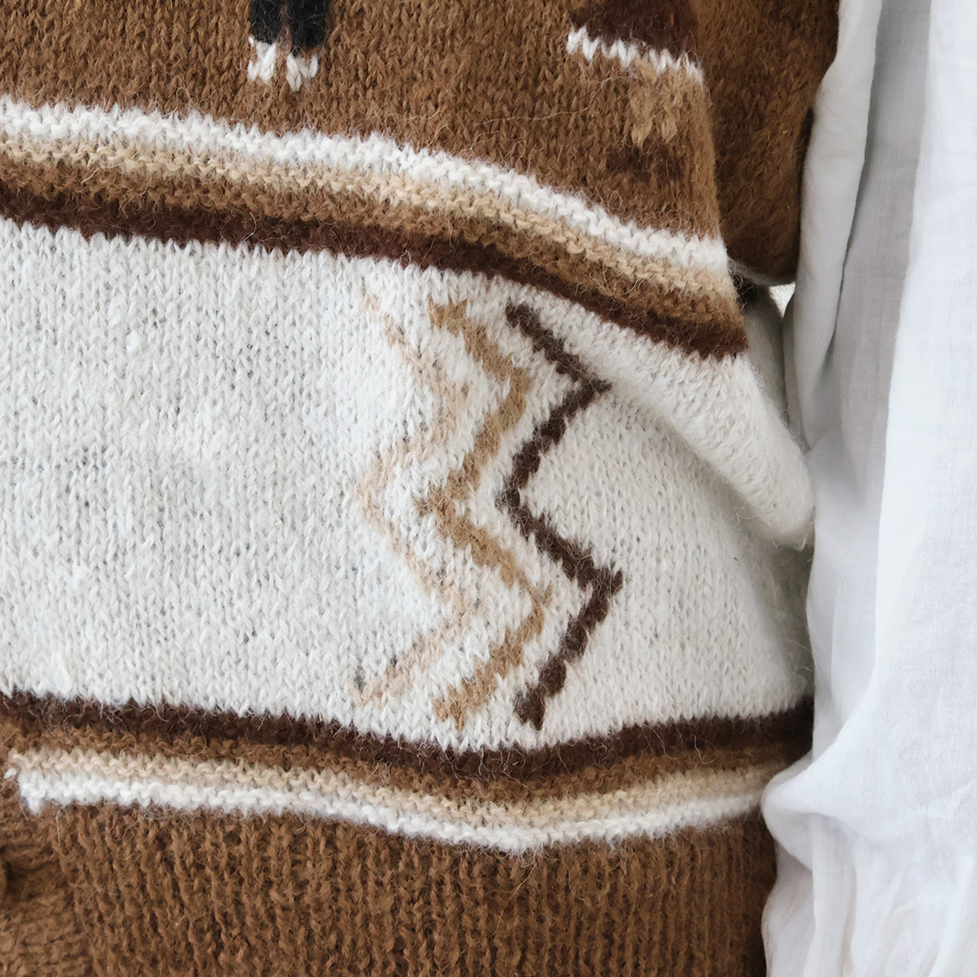 ふんわりやわらか、アルパカ毛でできたベストです。ペルー南部の街・プーノでおばあちゃんたちが生活の合間に編んでくれました。色の組み合わせもちょっとずつ違っていて見るだけでも楽しい一枚。暖かさは太鼓判です!