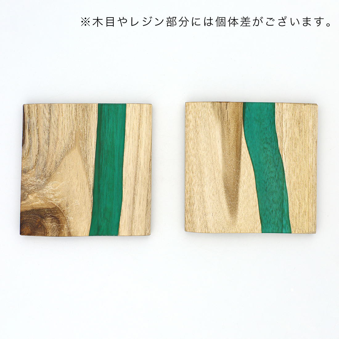 ウッドに澄んだブルーレジンを閉じ込めたコースターまるで大河の一部を切り取った様なデザインがテーブルウェアを彩ります。