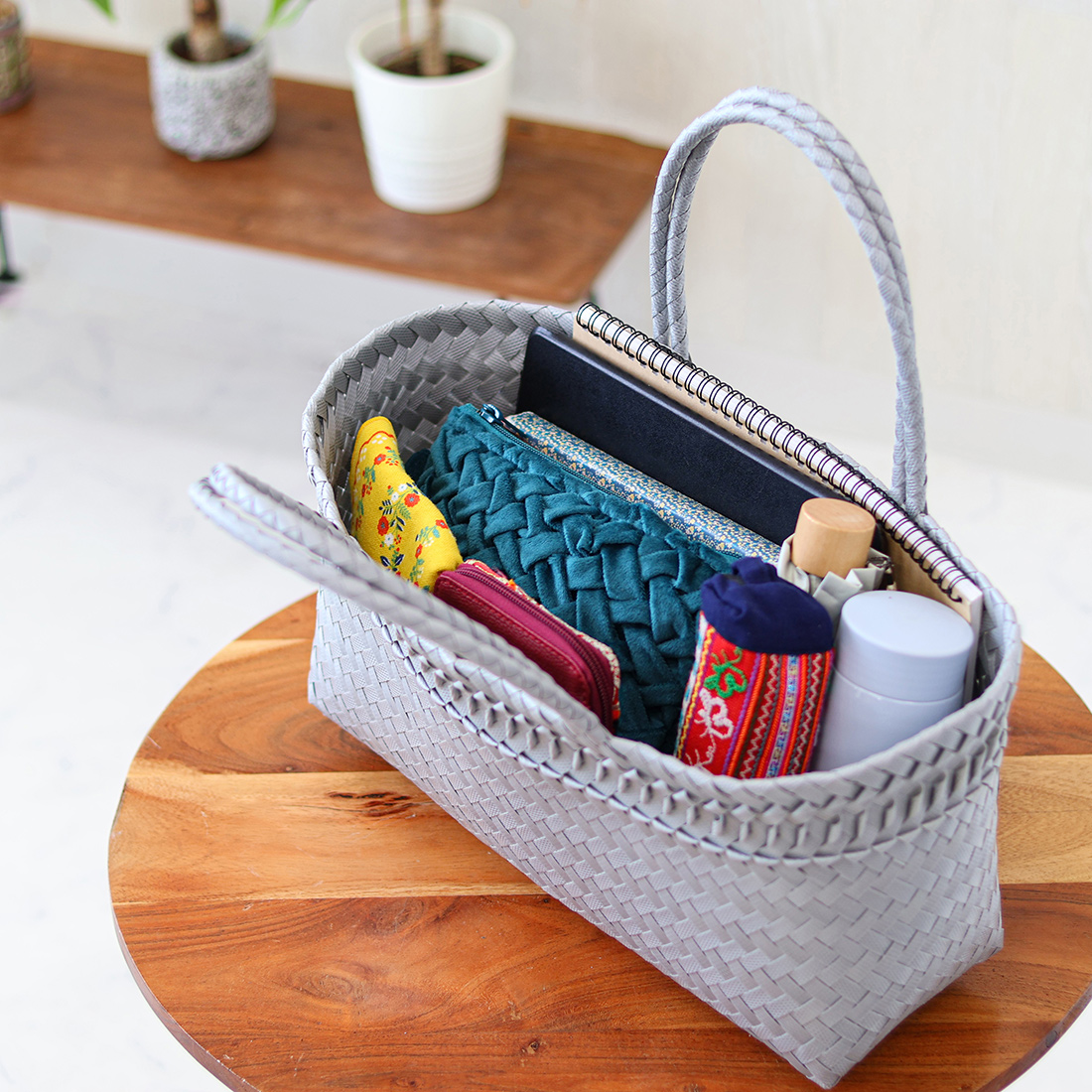 パサールバッグとは、バリの女性たちが朝、市場に買い出しに行くときに持っていくPP製のお買い物カゴのこと。