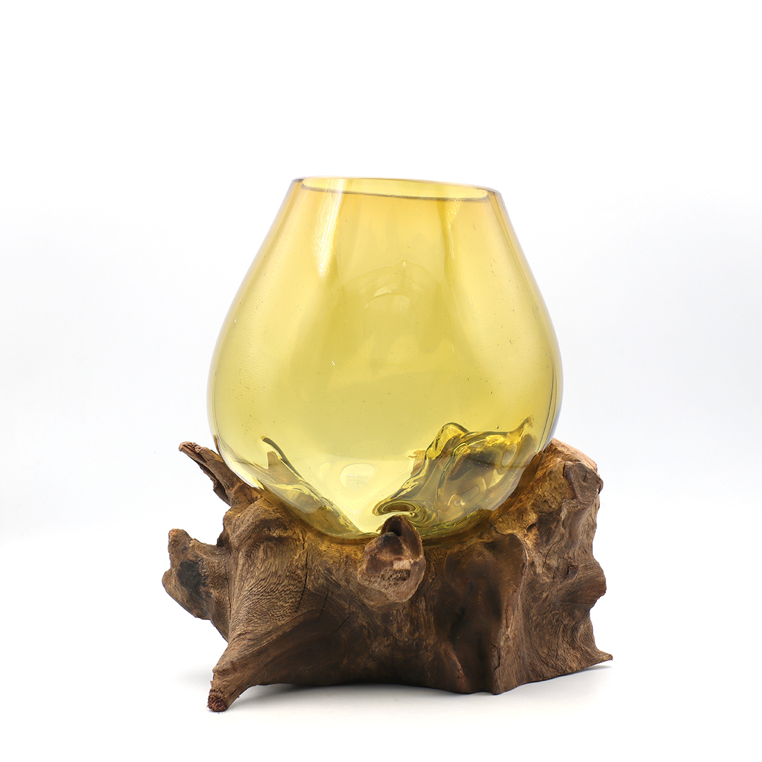 天然木とアクアリウム型の器を組み合わせた手吹きガラス