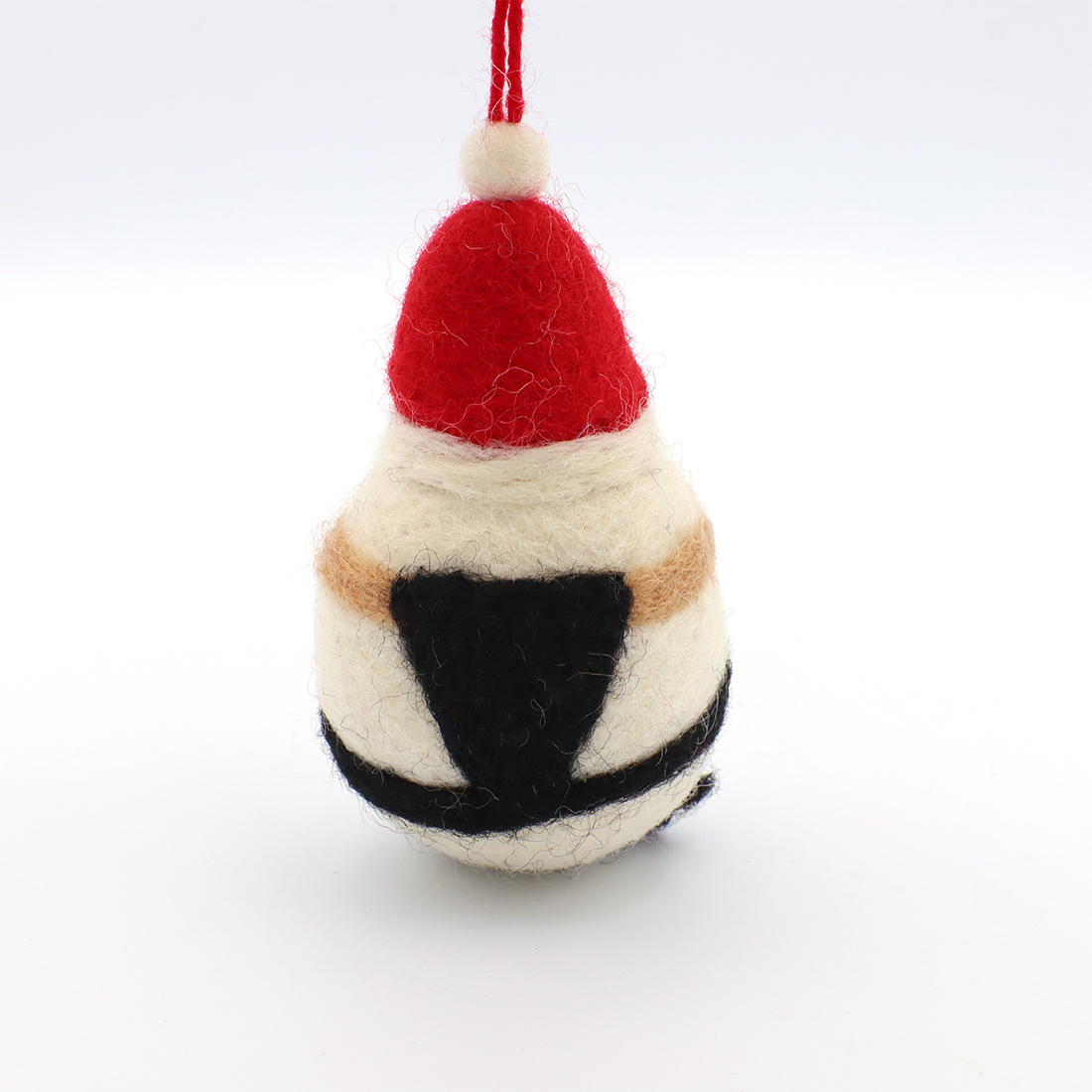 ネパールの職人がひとつひとつ丁寧に手作りした、サンタ帽を被ったシマエナガのオーナメント。