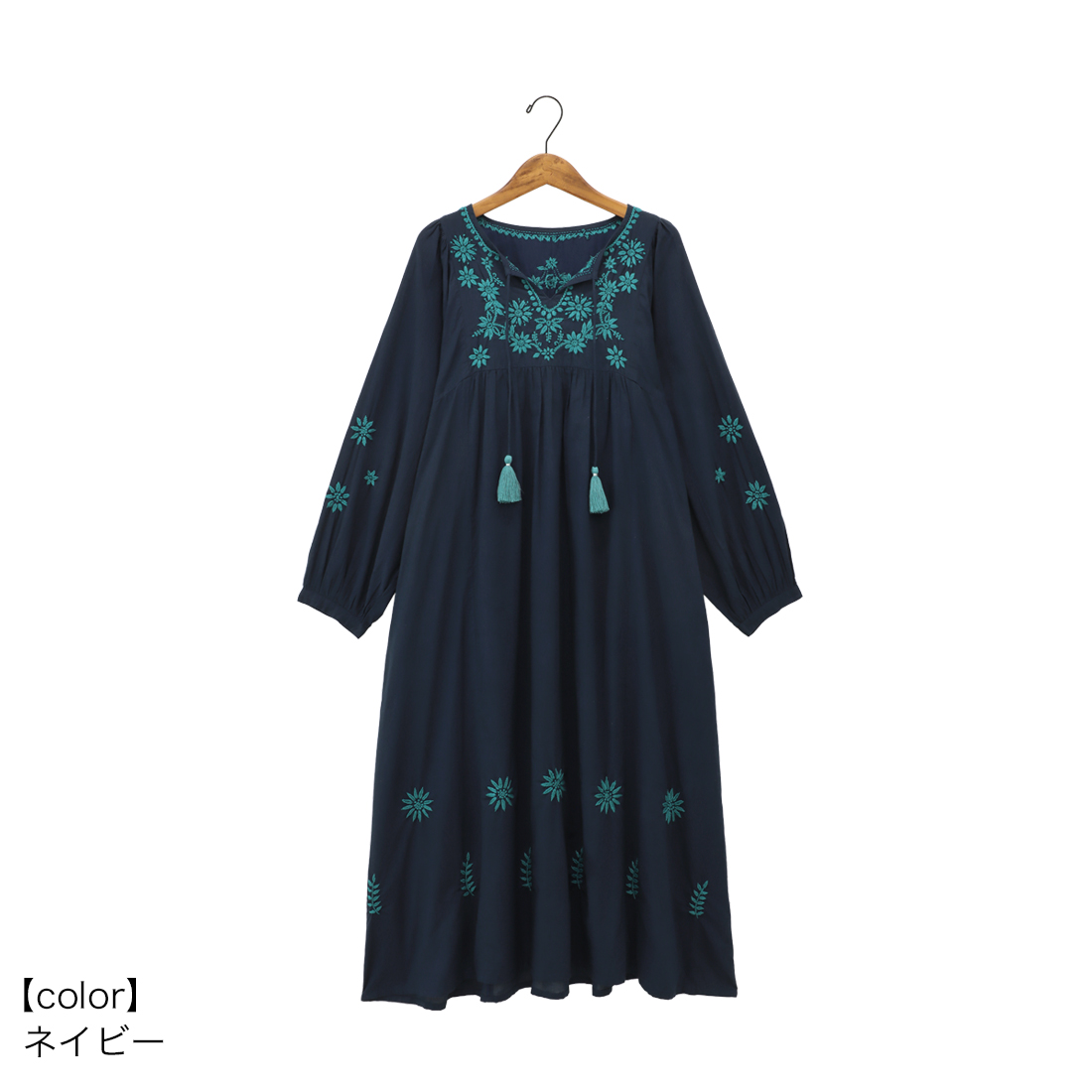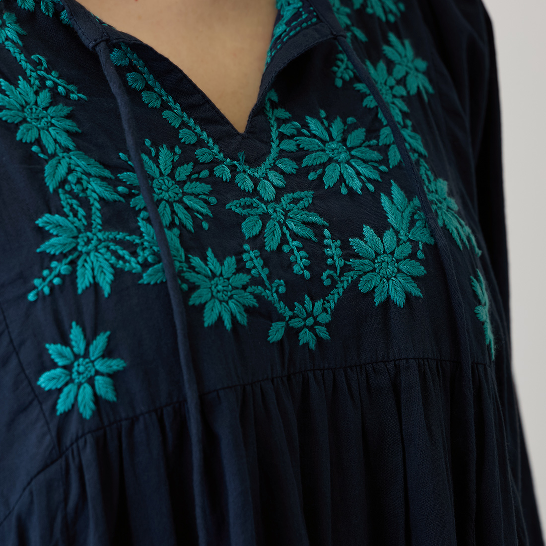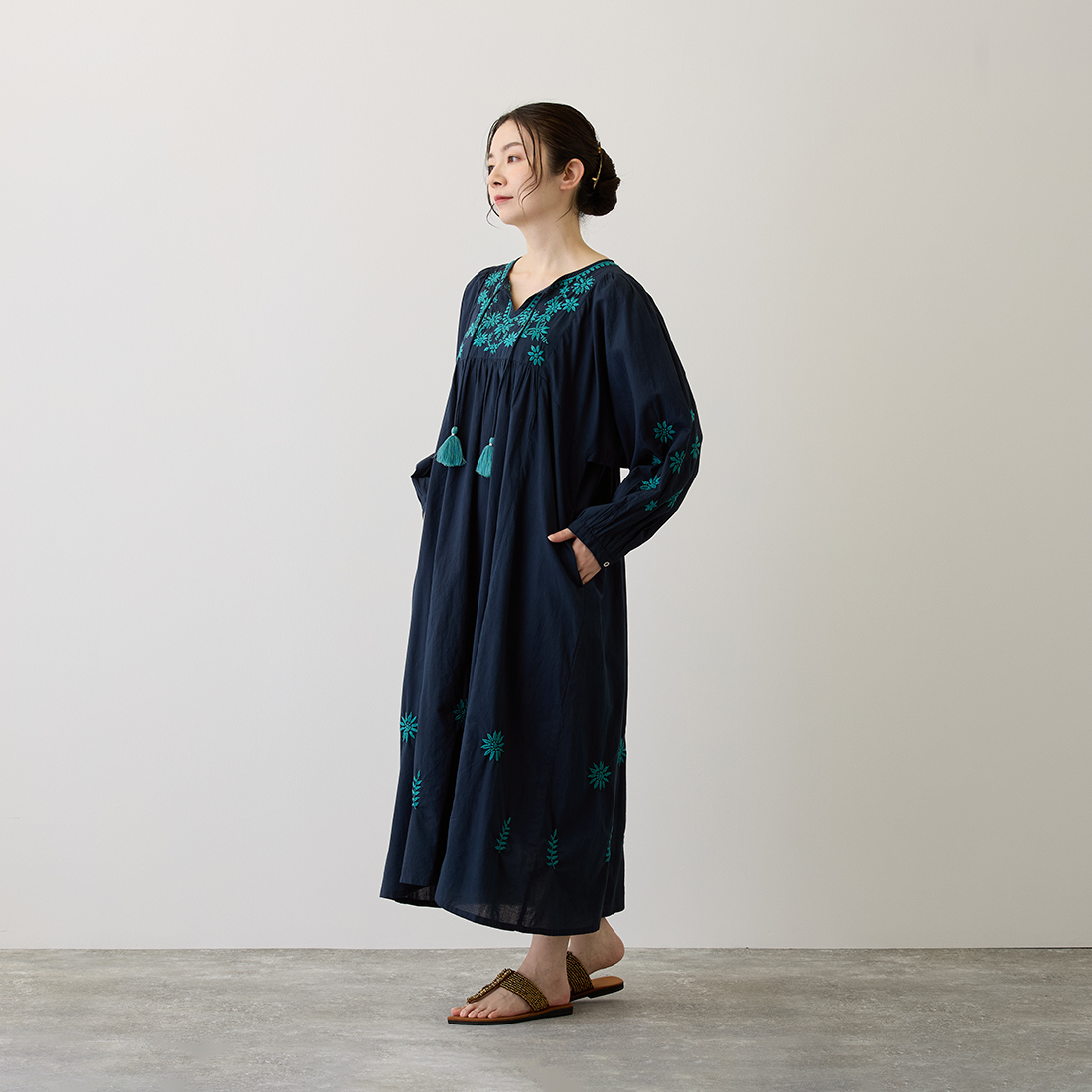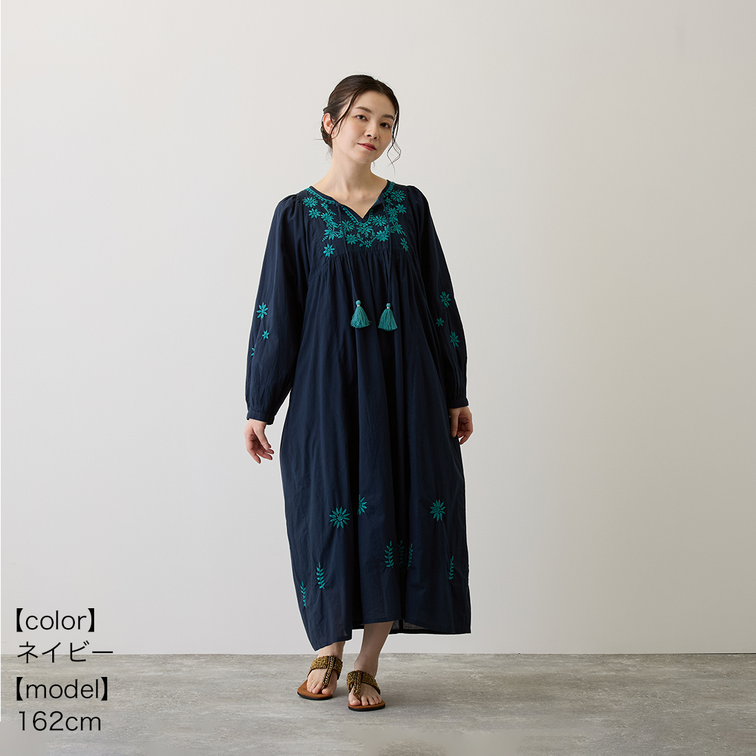 胸元、背中、そして袖と裾にも美しい刺しゅうがたっぷりと散りばめられています。