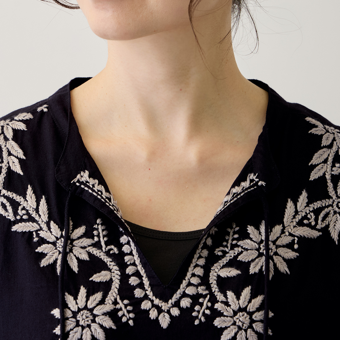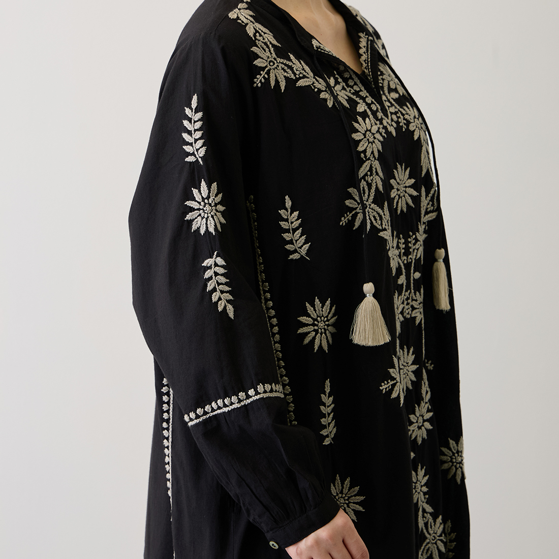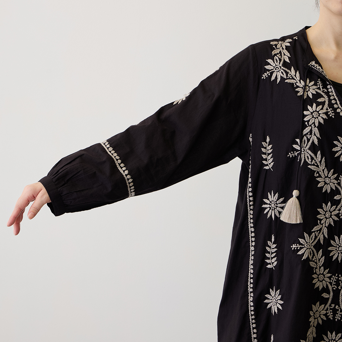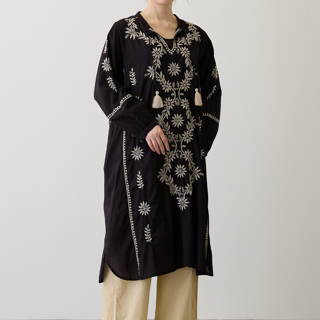 チュニックの前面に美しい刺しゅうをたっぷりと施しました。