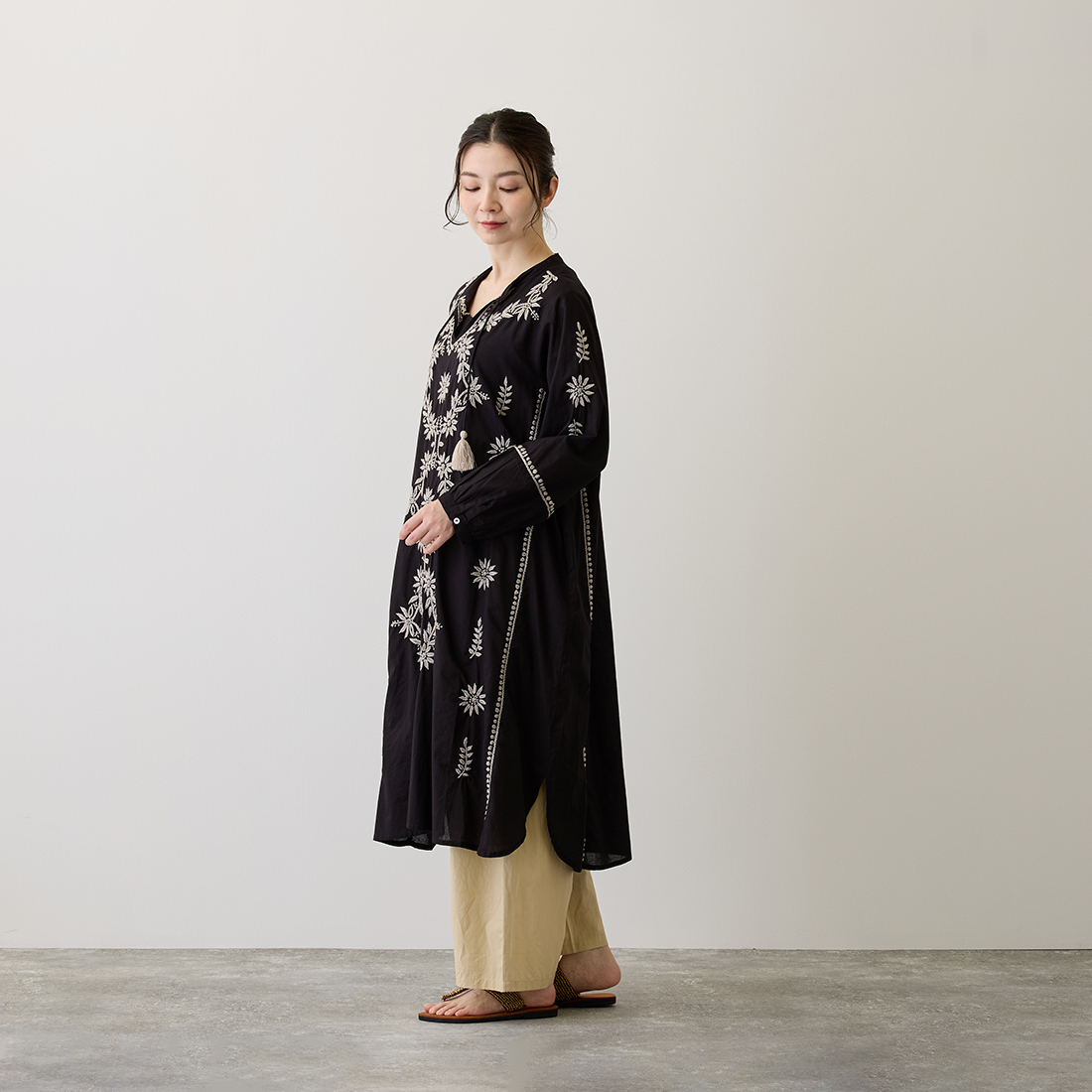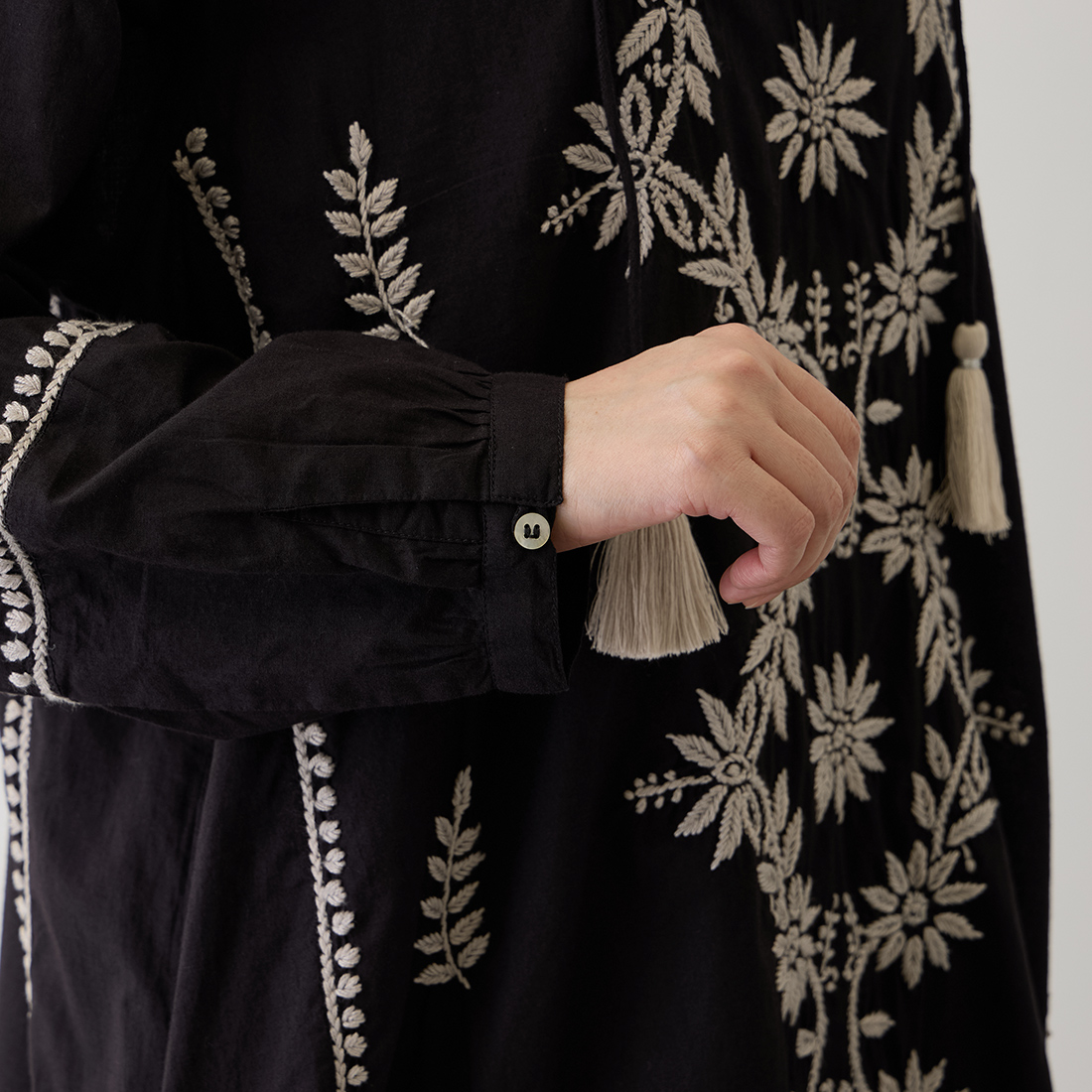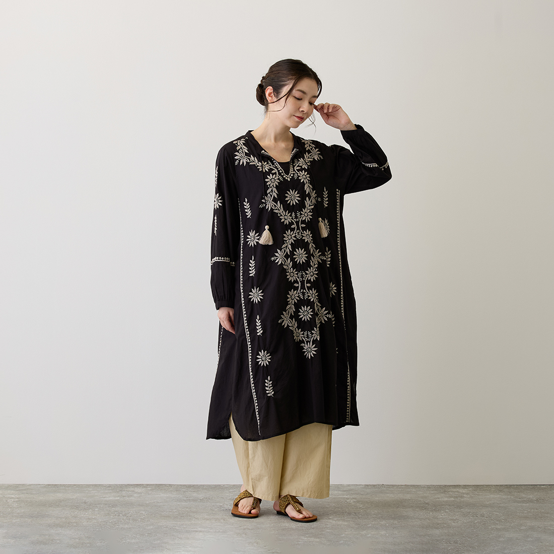 チュニックの前面に美しい刺しゅうをたっぷりと施しました。