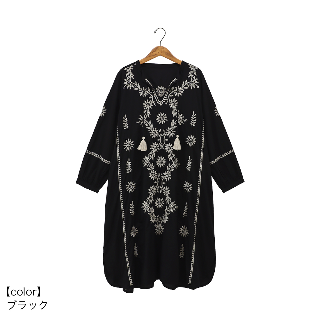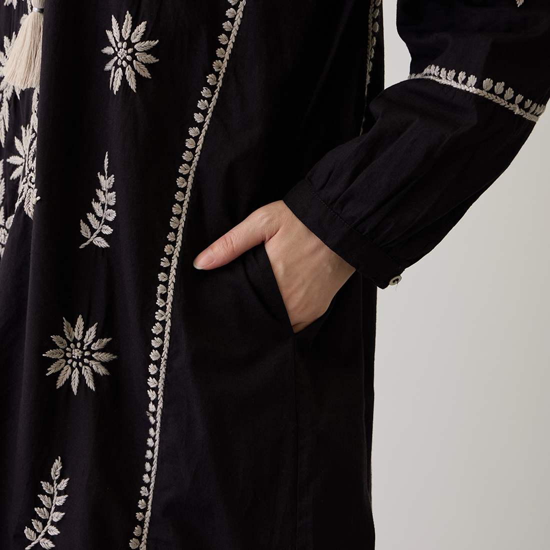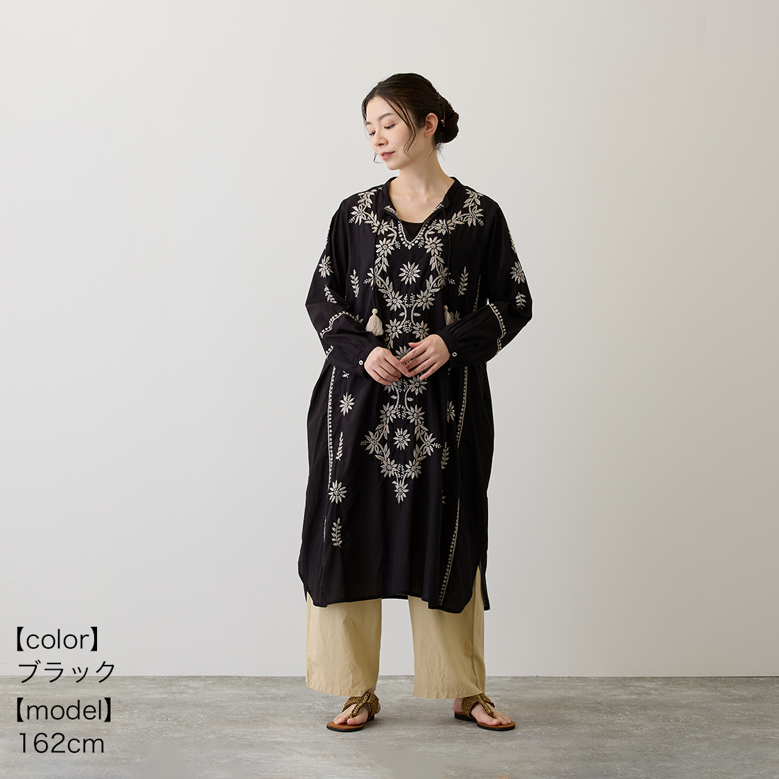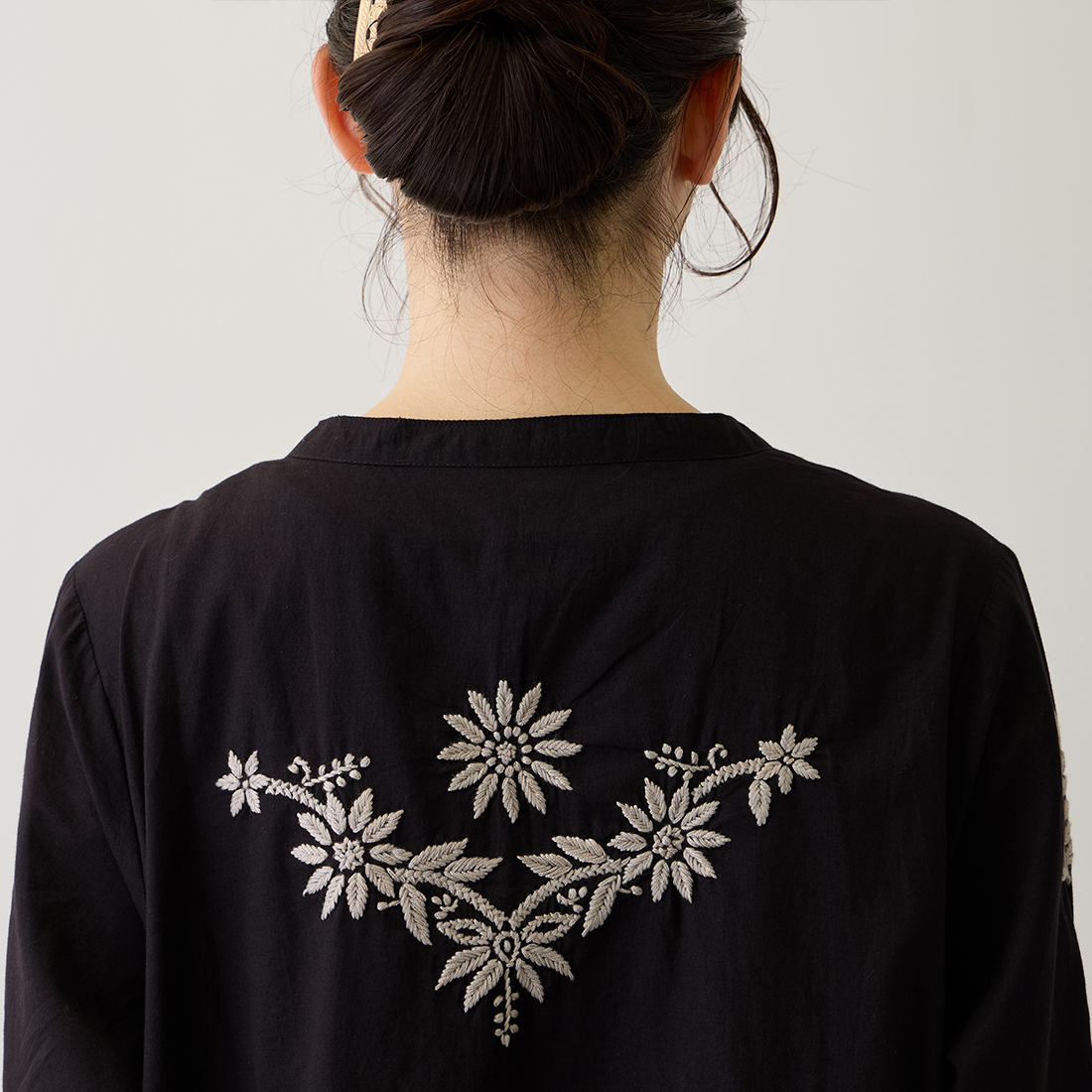チュニックの前面に美しい刺しゅうをたっぷりと施しました。