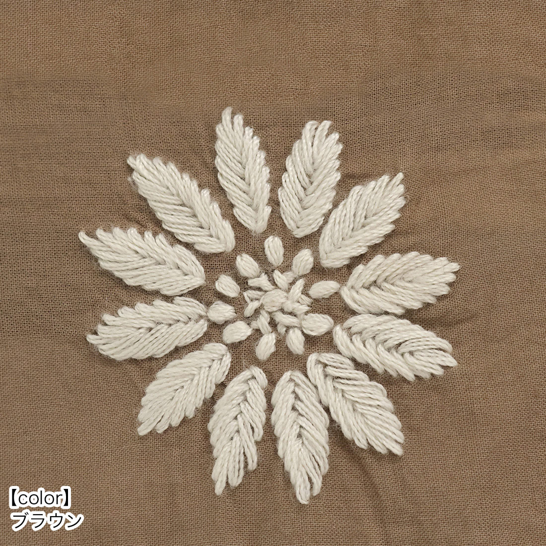 このボリュームと立体感は手刺しゅうならでは。