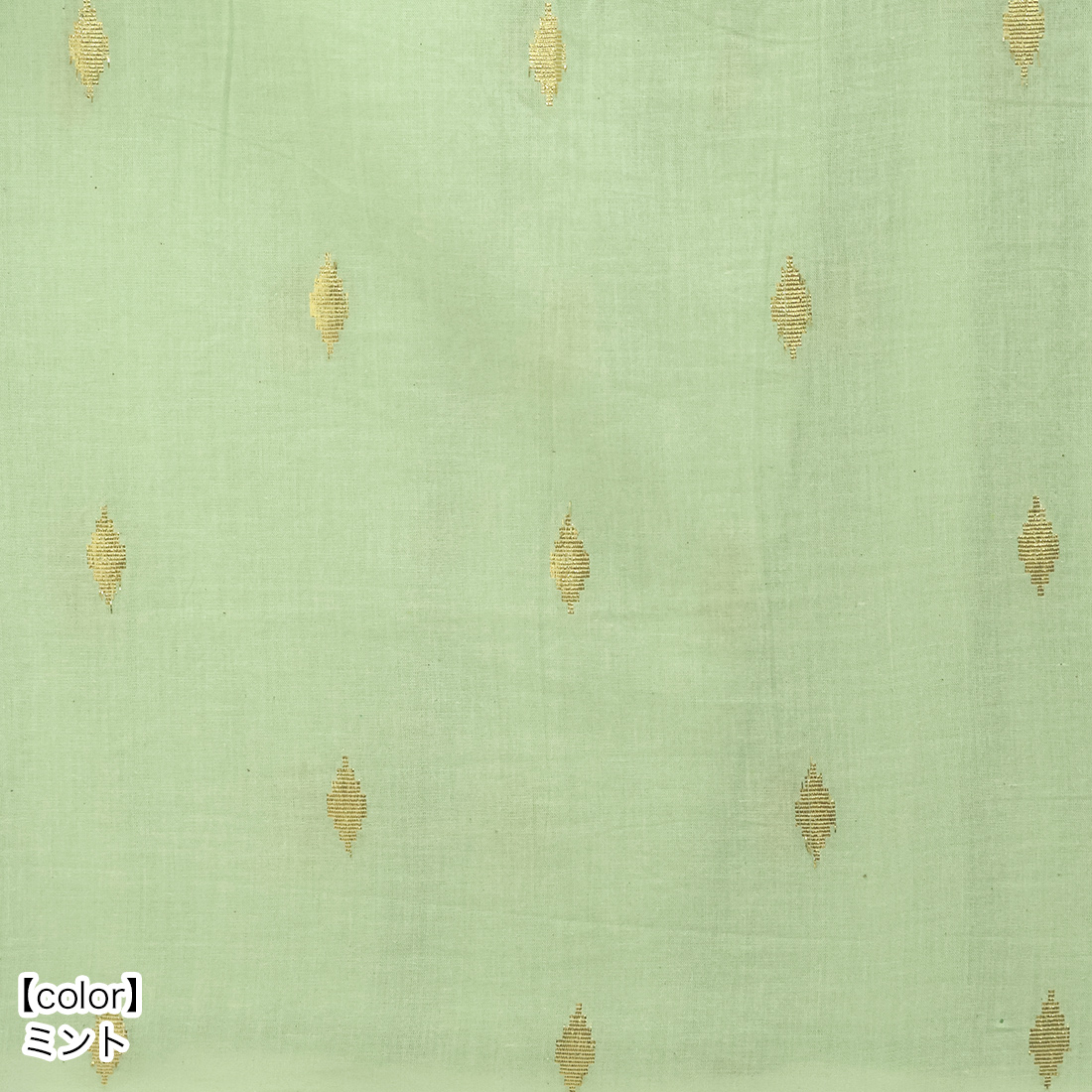 淡く優しいカラーの生地に繊細に織り込まれた金糸が、光に当たるとさりげない煌めきを添えてくれます。やさしさの中に品格を感じる女性らしいデザインです。