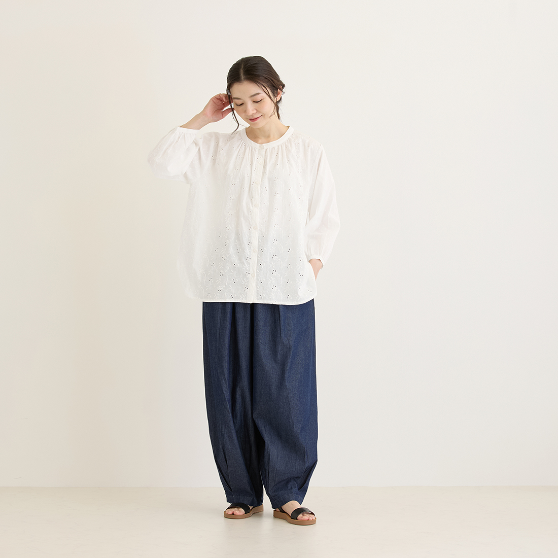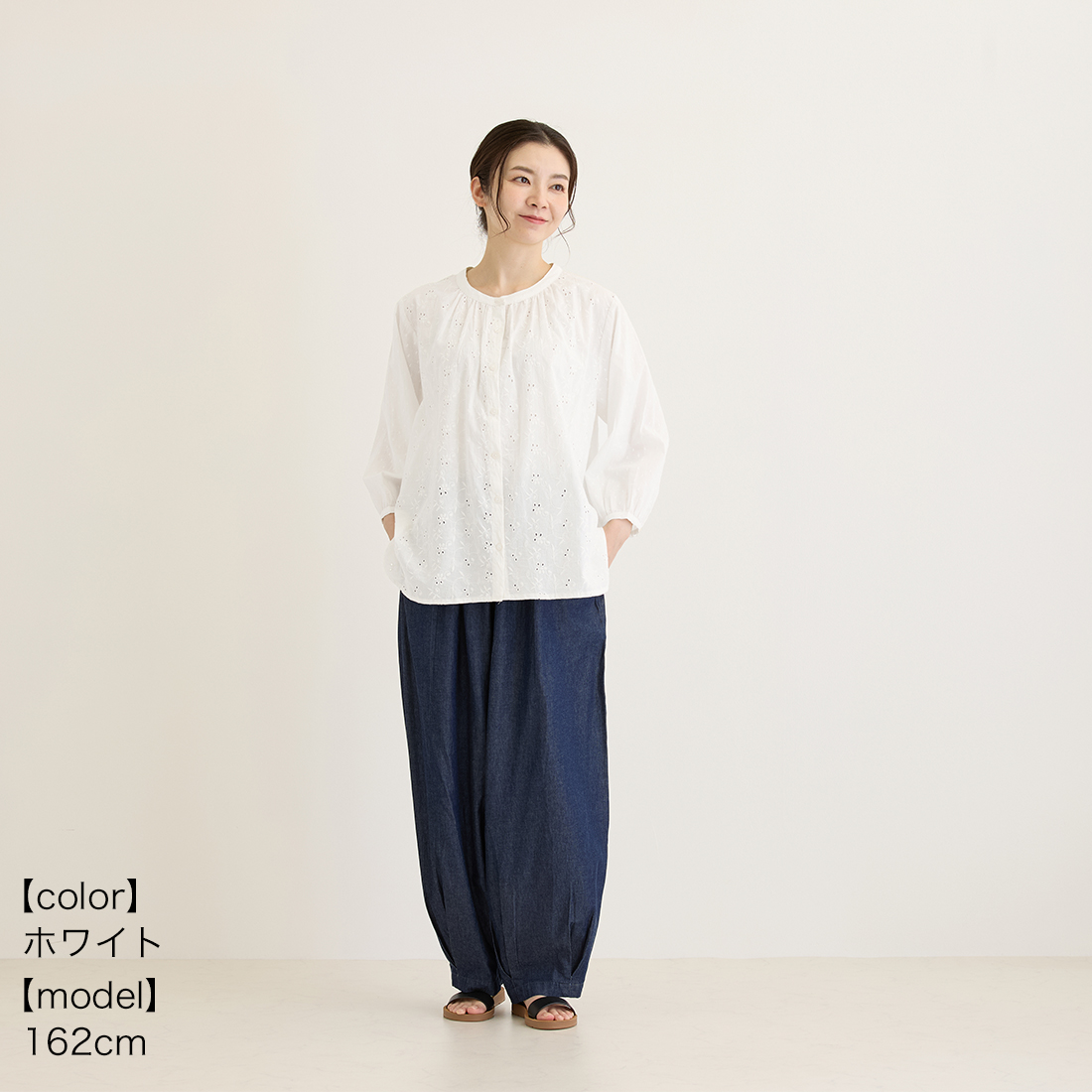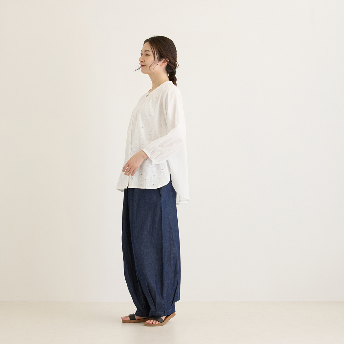 ブラウスは前開きで涼し気な印象に!レイヤードコーデや、薄めの羽織りとしてもピッタリな1枚です。