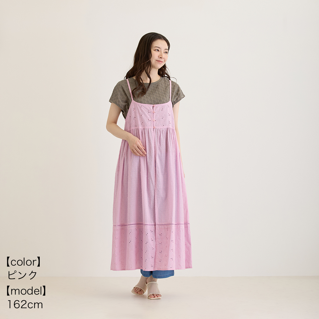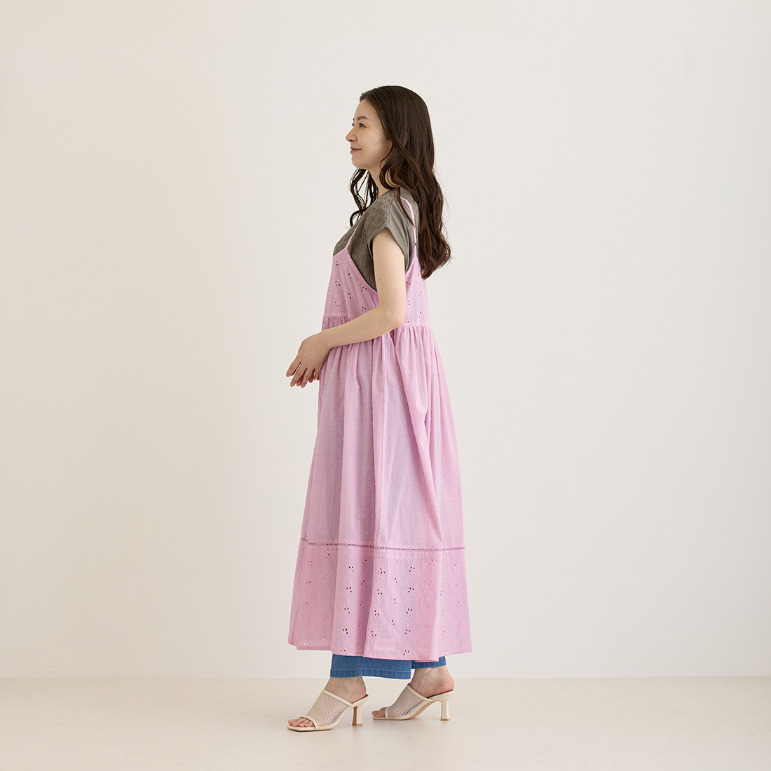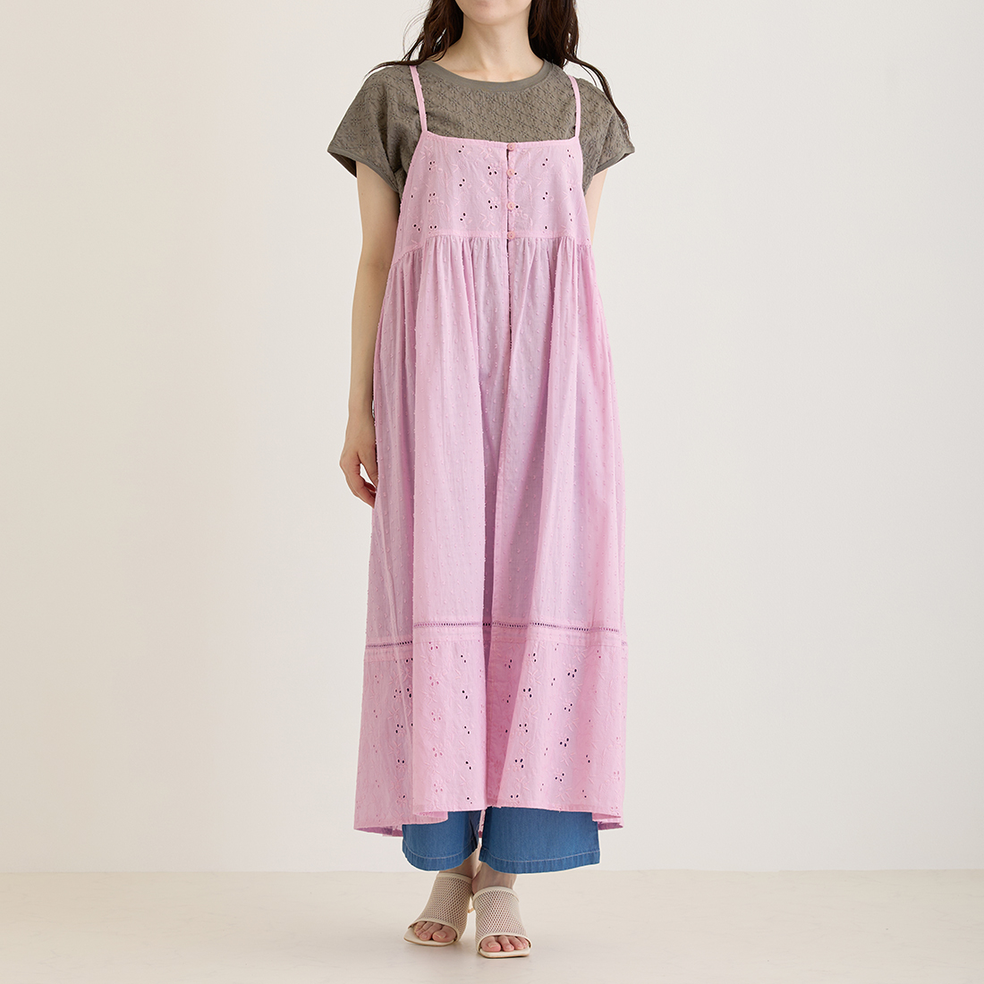 キャミワンピースはウエストから下が前開きで涼し気な印象に!レイヤードコーデの主役にピッタリな1枚です。