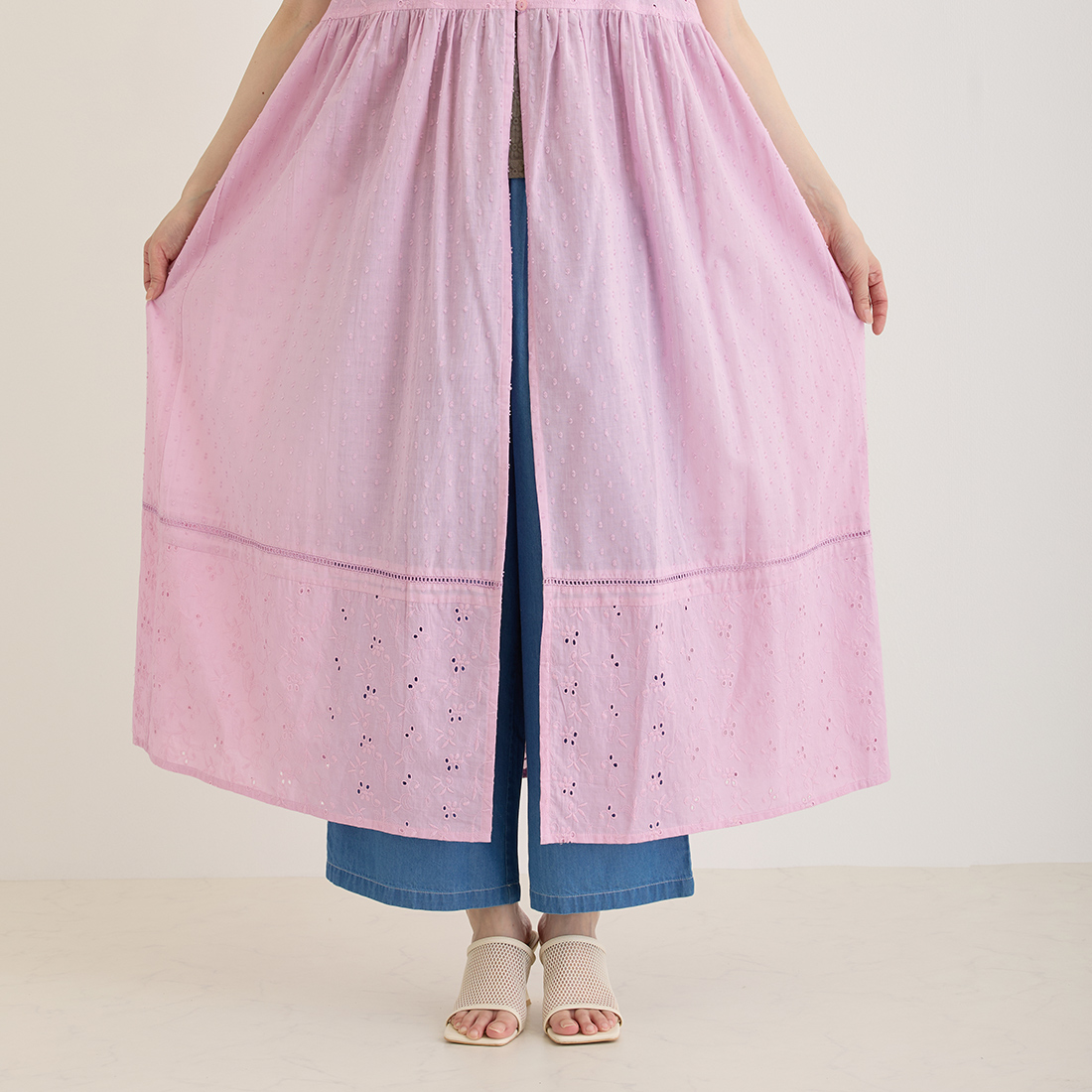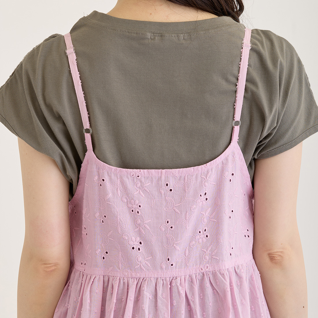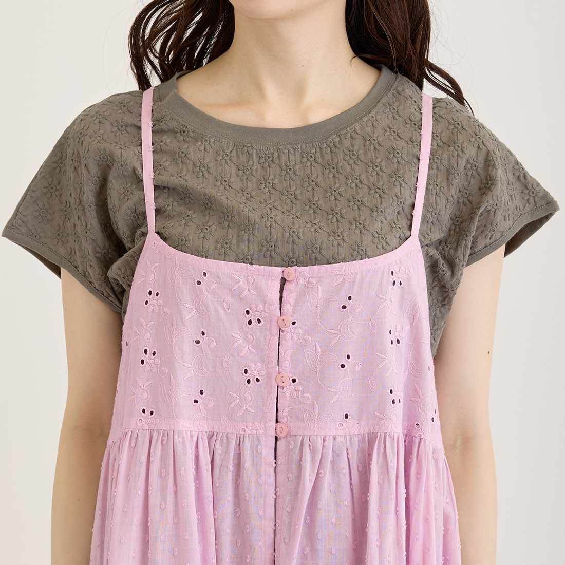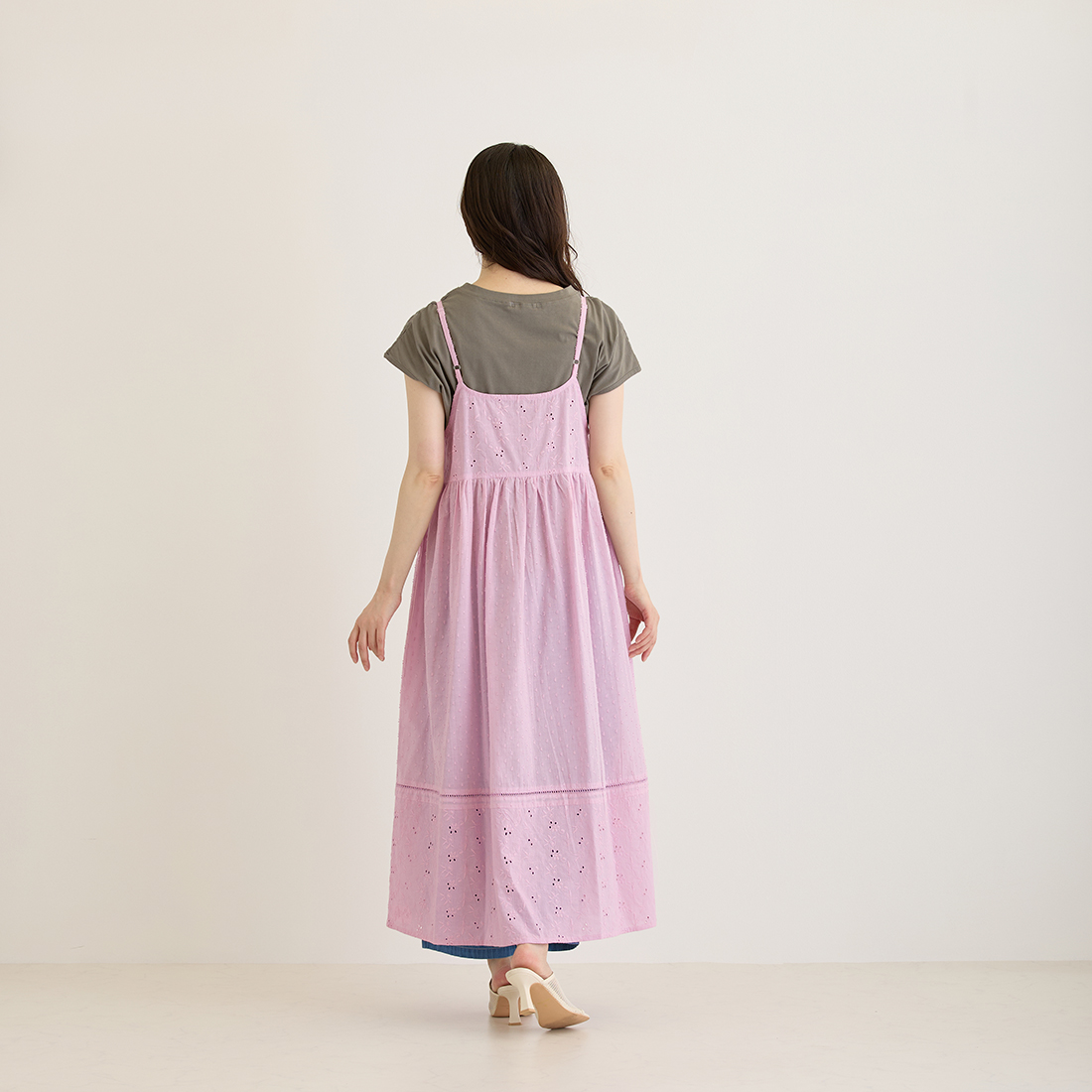 キャミワンピースはウエストから下が前開きで涼し気な印象に!レイヤードコーデの主役にピッタリな1枚です。