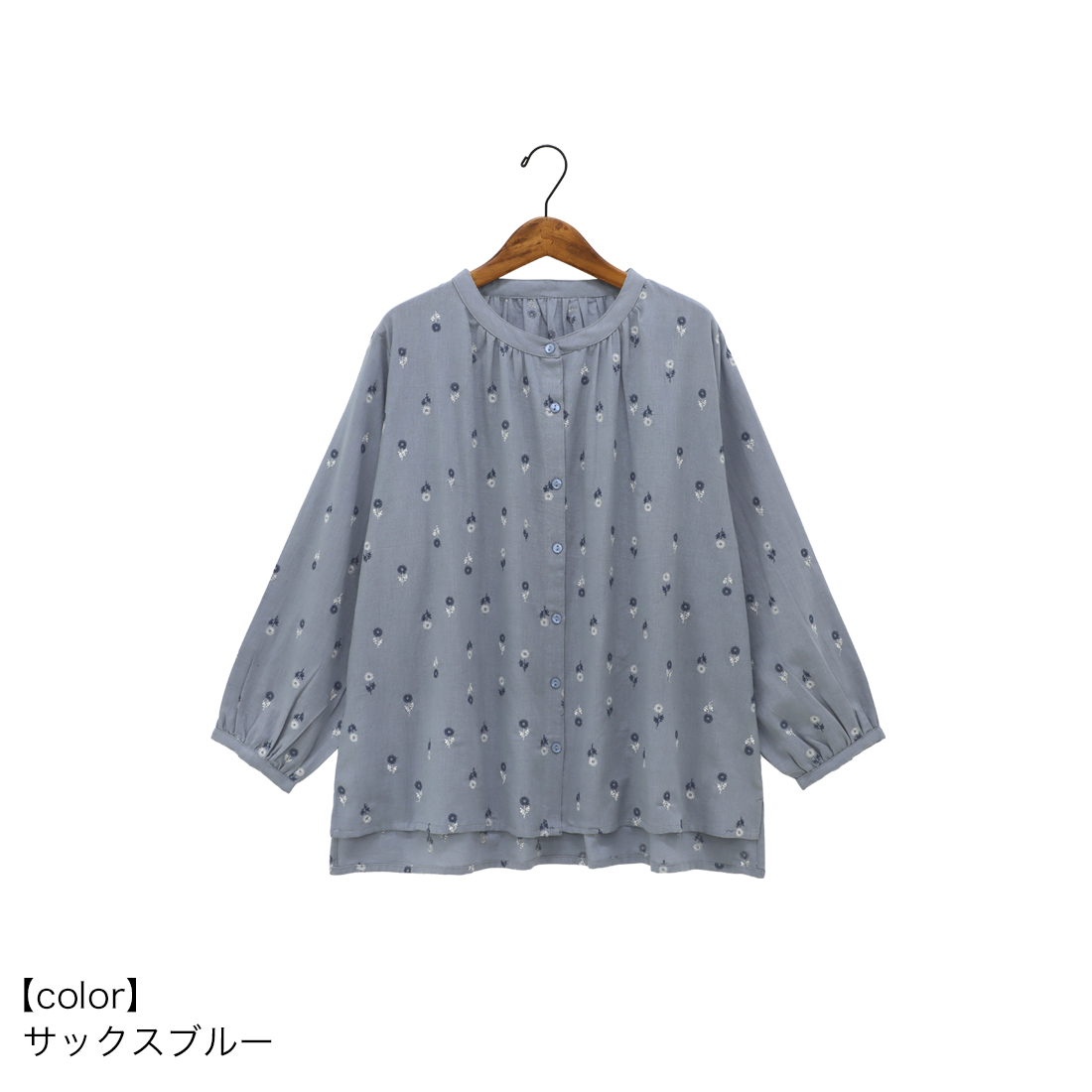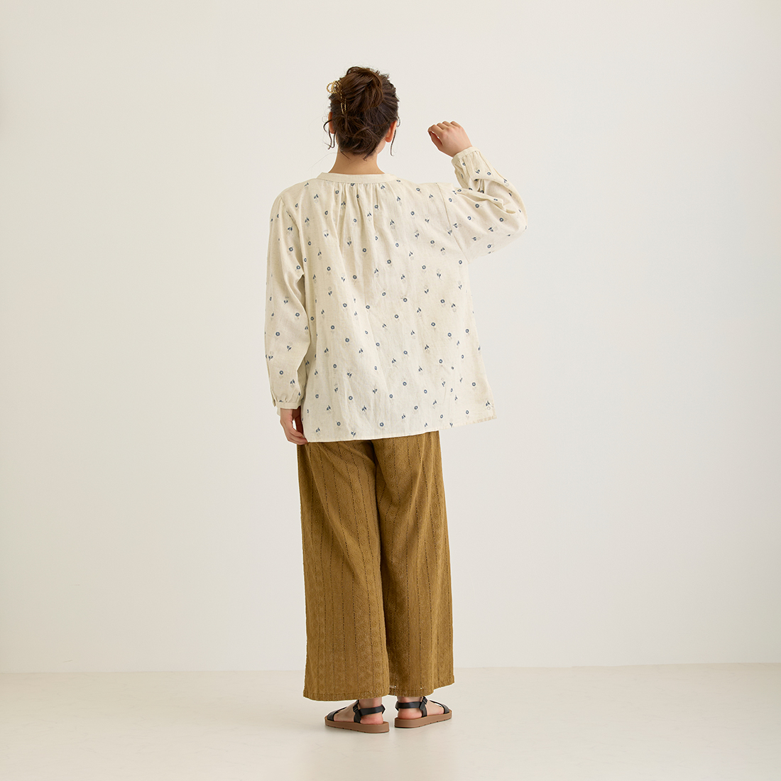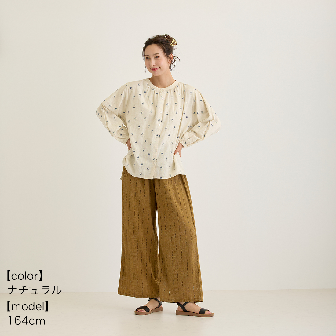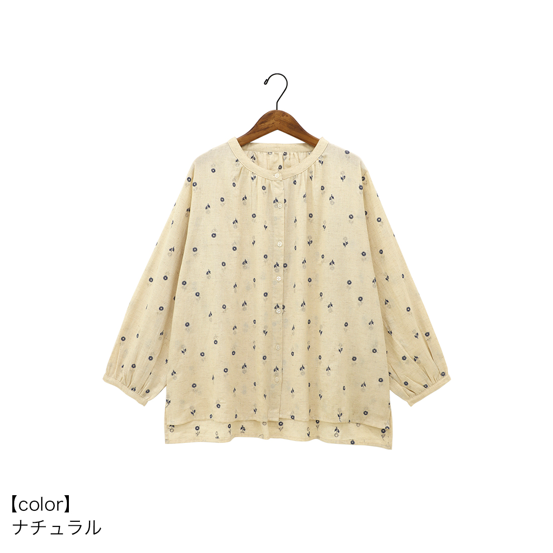 ナチュラルな麻混の生地にシンプルな花柄刺繍。ブルー系のカラーが合わせやすく、夏まで使える大人可愛いシリーズです。