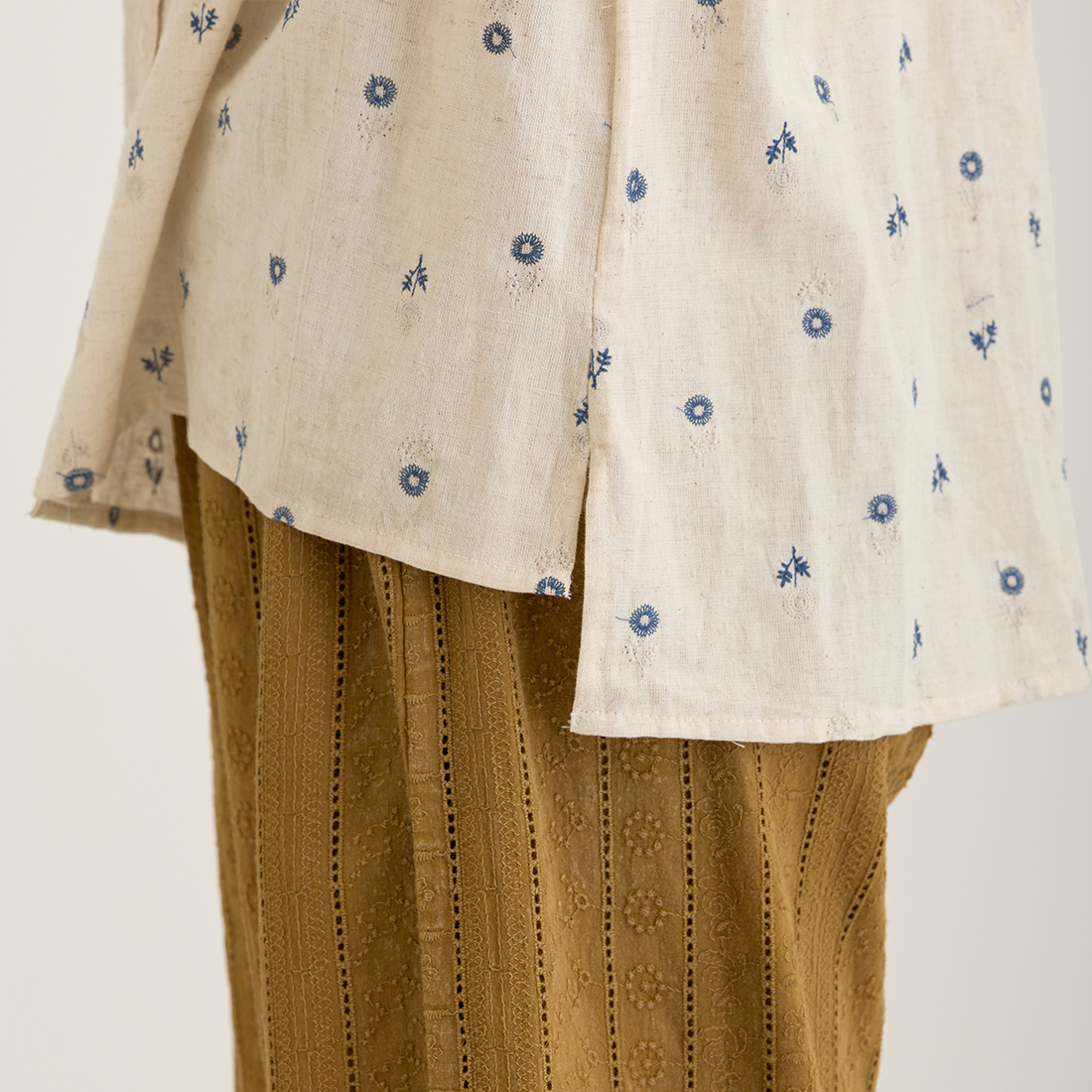 ナチュラルな麻混の生地にシンプルな花柄刺繍を入れました