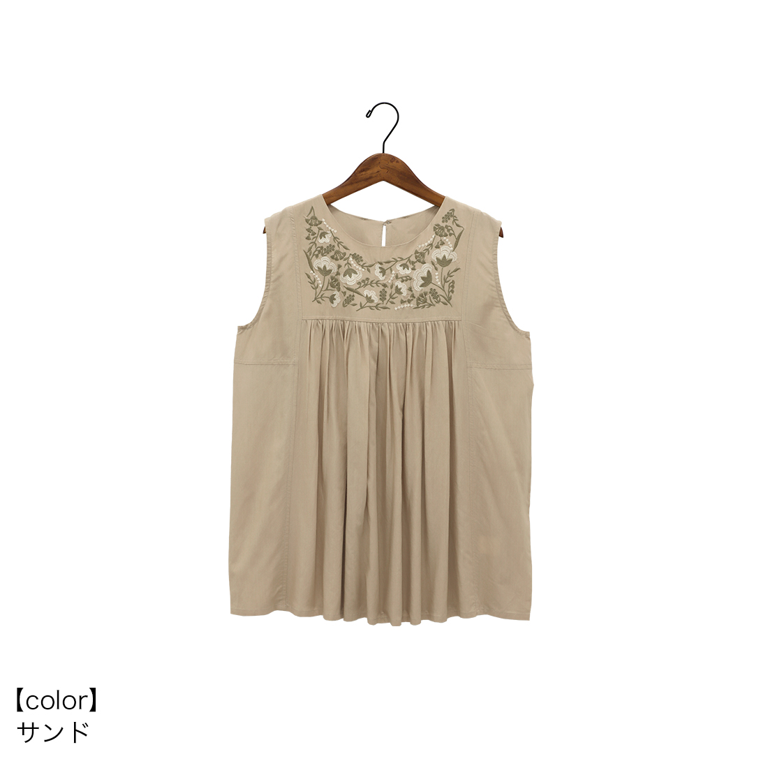 可愛らしい草花の刺繍を胸元に敷き詰めました。爽やかなワントーンカラーがコーディネートしやすいシリーズです。