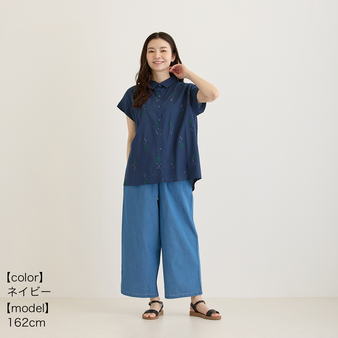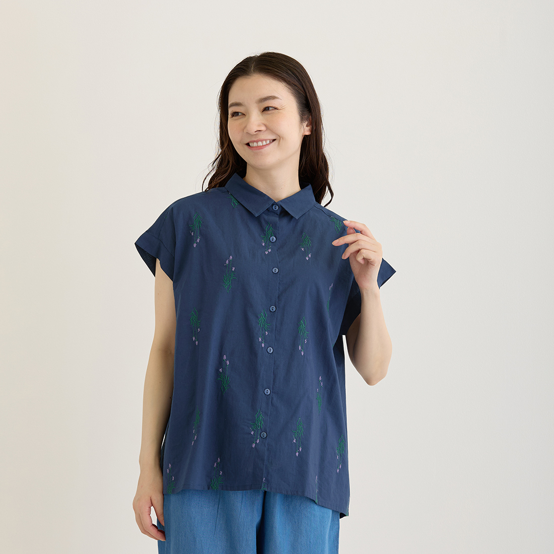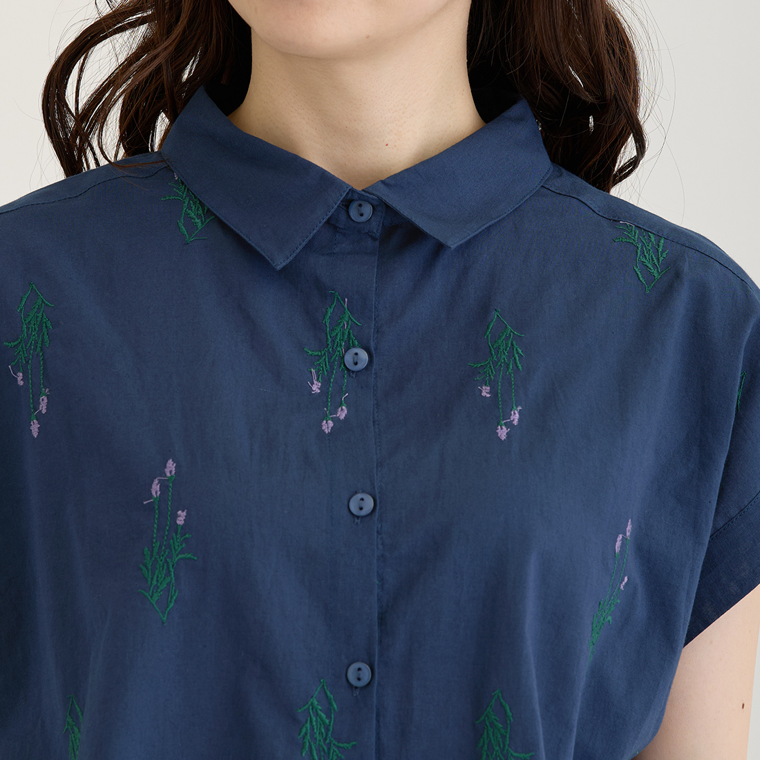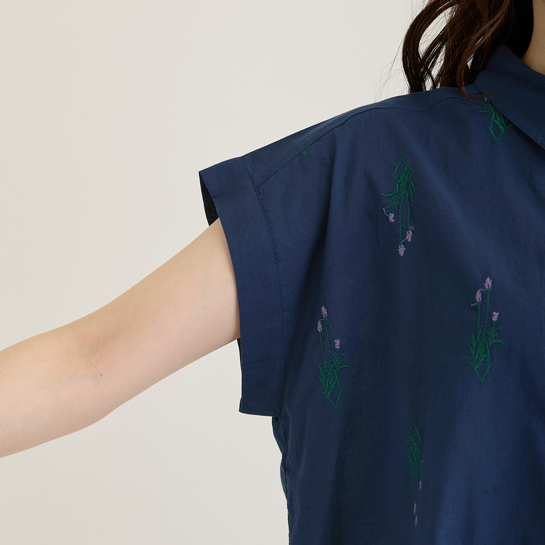 ラベンダーの花のような刺繍を着心地の良いキャンブリック素材に載せました