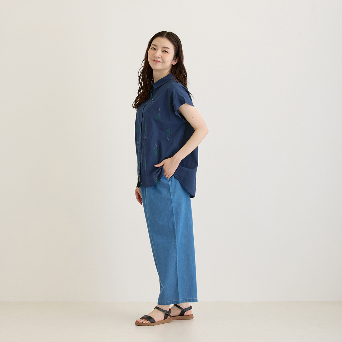 シャツは1枚でちゃんとした印象になるアイテム。上にもう一枚重ねたコーディネートも◎