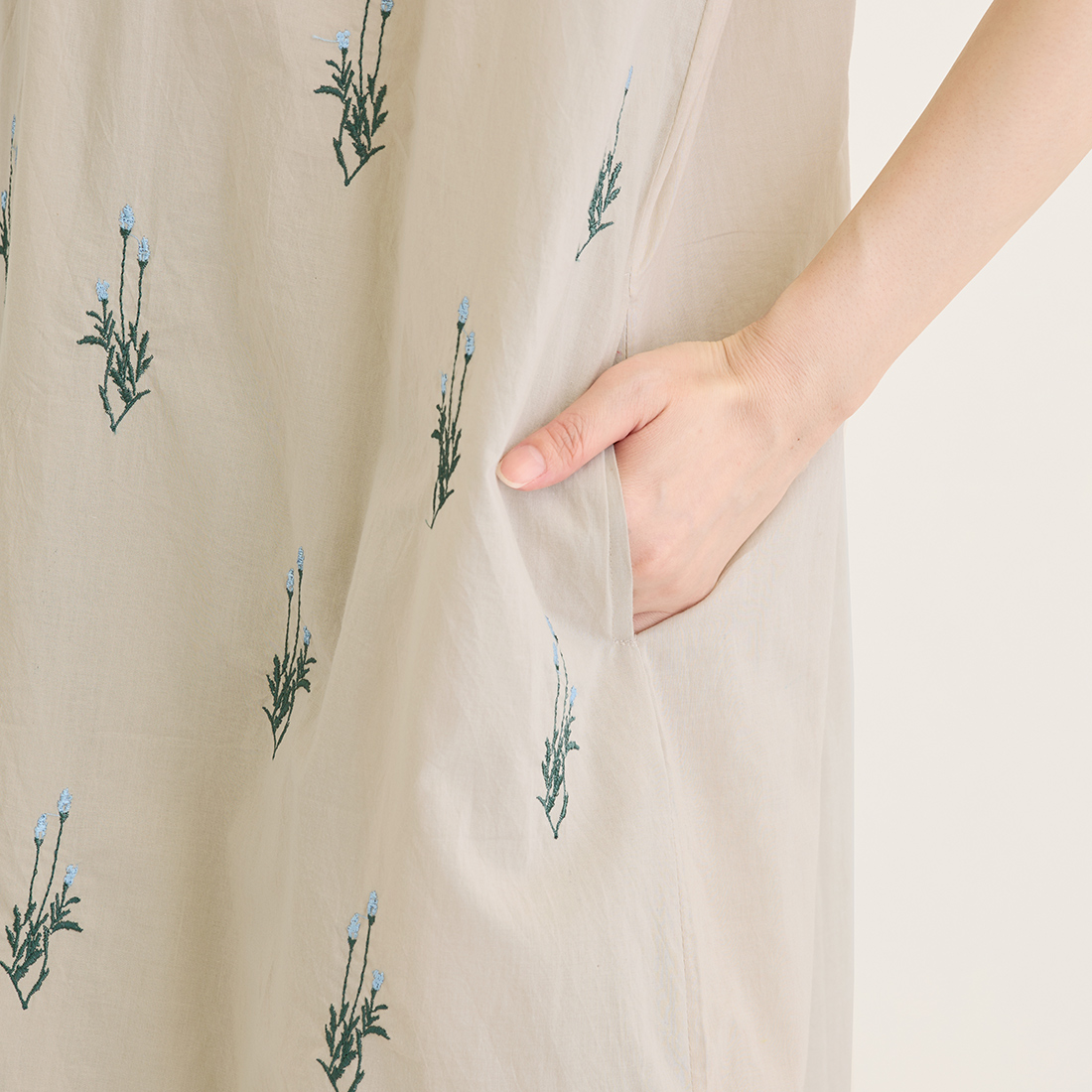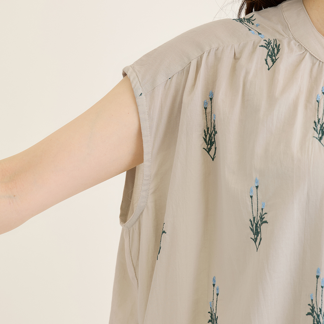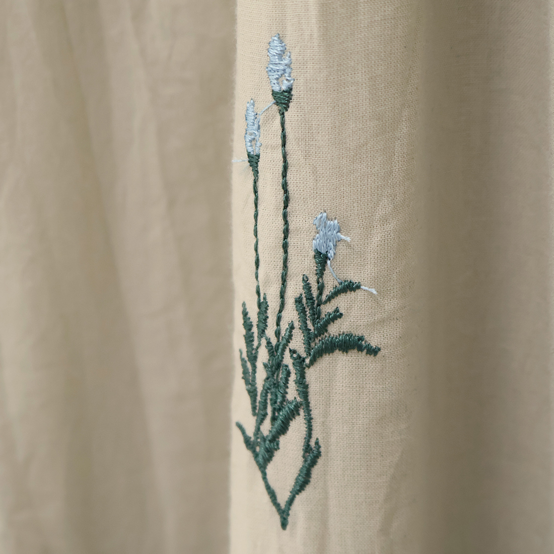 ラベンダーの花のような刺繍を着心地の良いキャンブリック素材に載せました