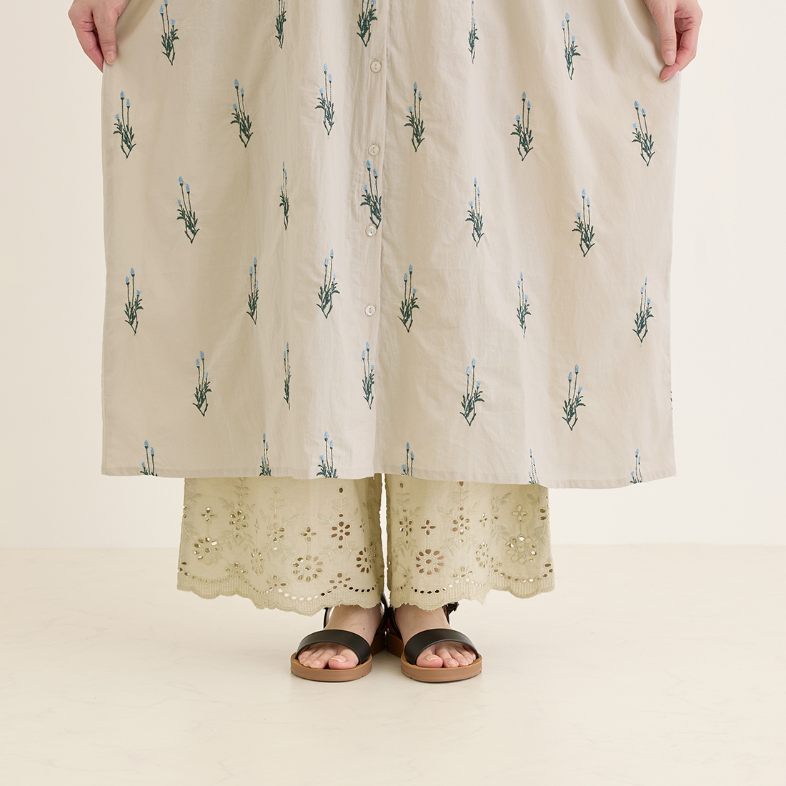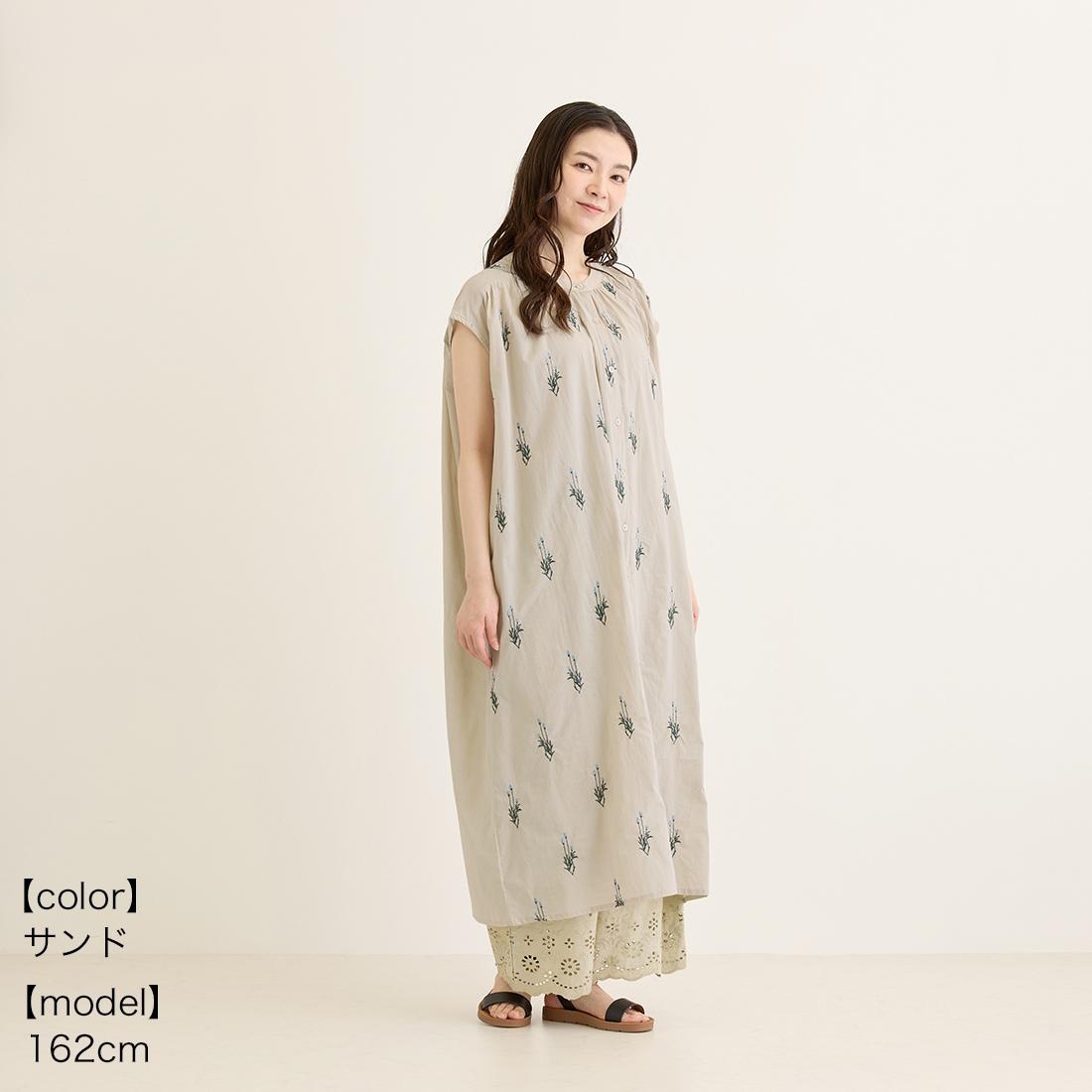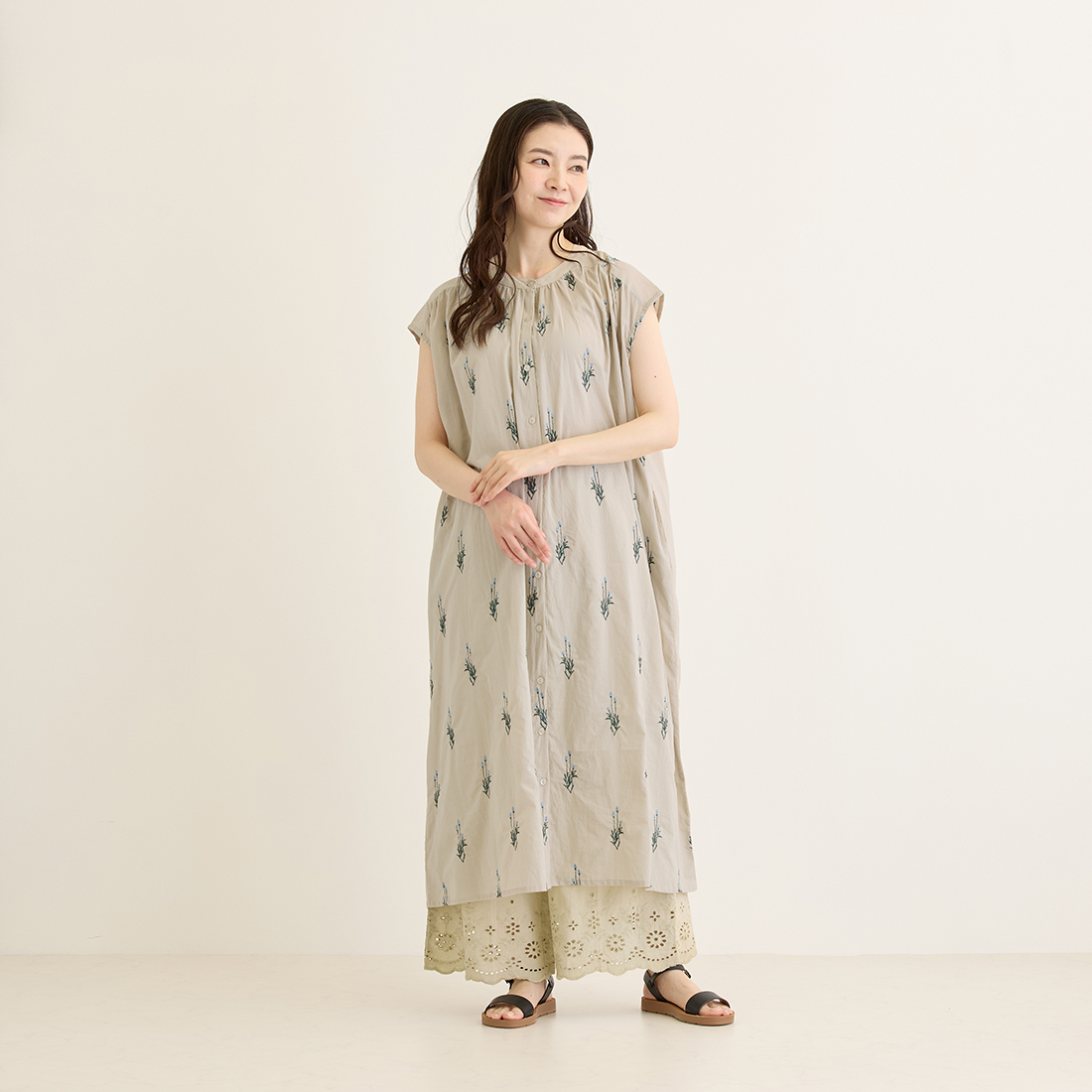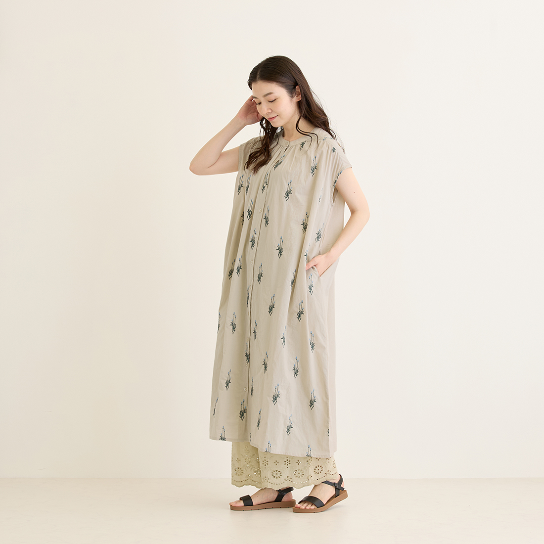 ラベンダーの花のような刺繍を着心地の良いキャンブリック素材に載せました