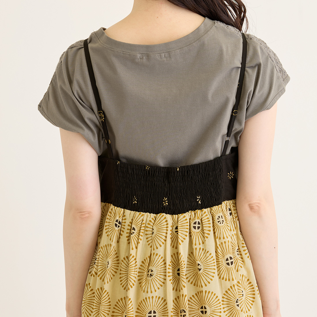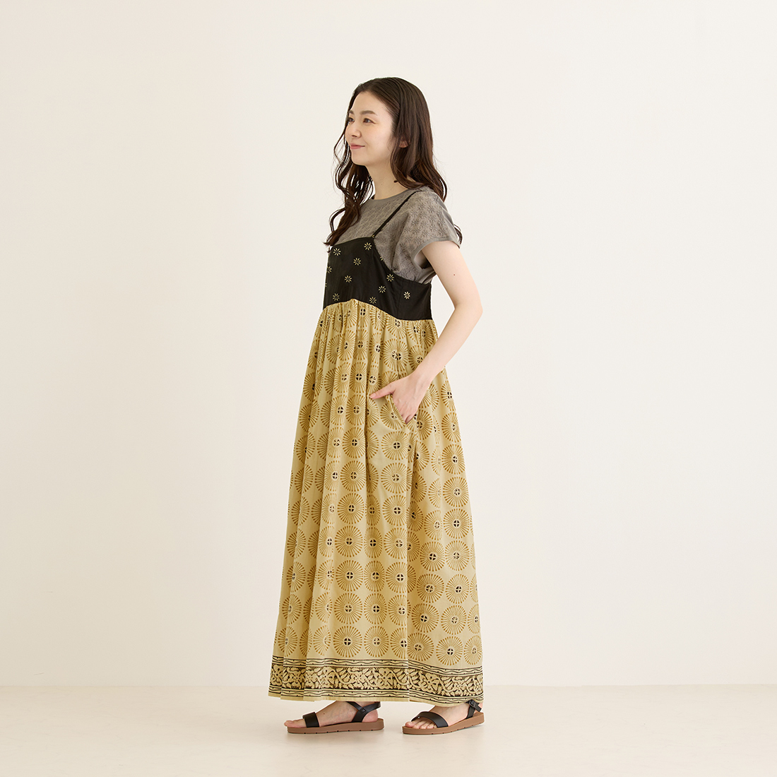 ブラックとイエローの組み合わせがオシャレなキャミワンピース。これ1枚でコーデの決まるアイテムです。