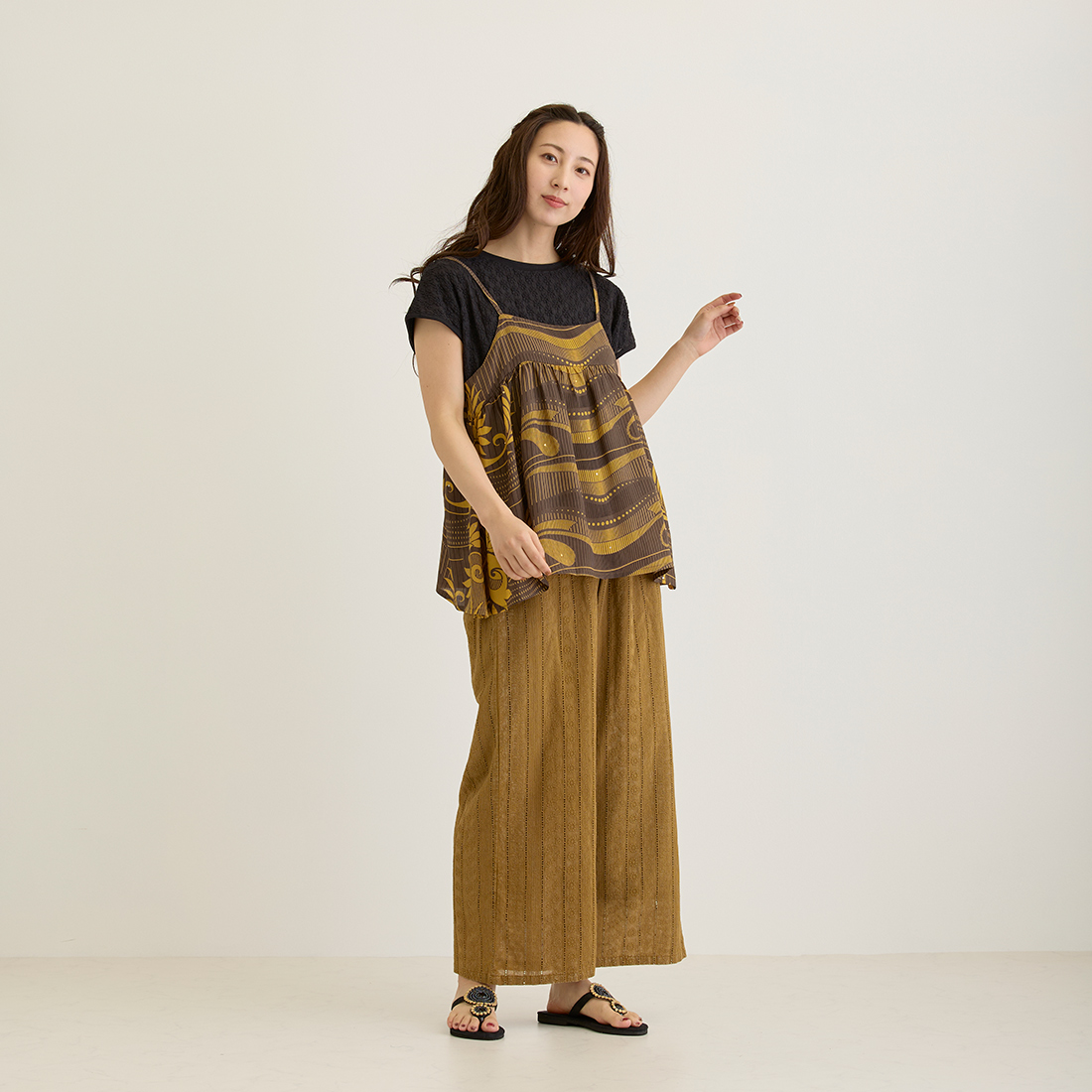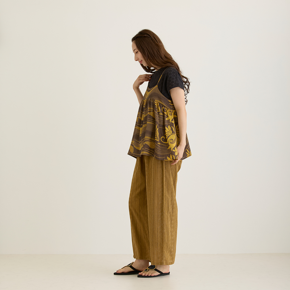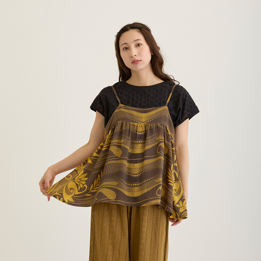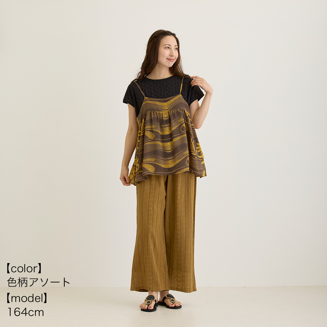 キャミソールは無地のワンピースやデニムと合わせるコーディネートでよりオリジナリティを。どの柄も個性的で何枚も集めたくなってしまいます!