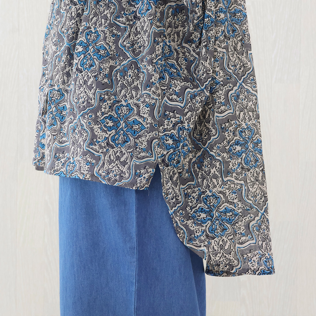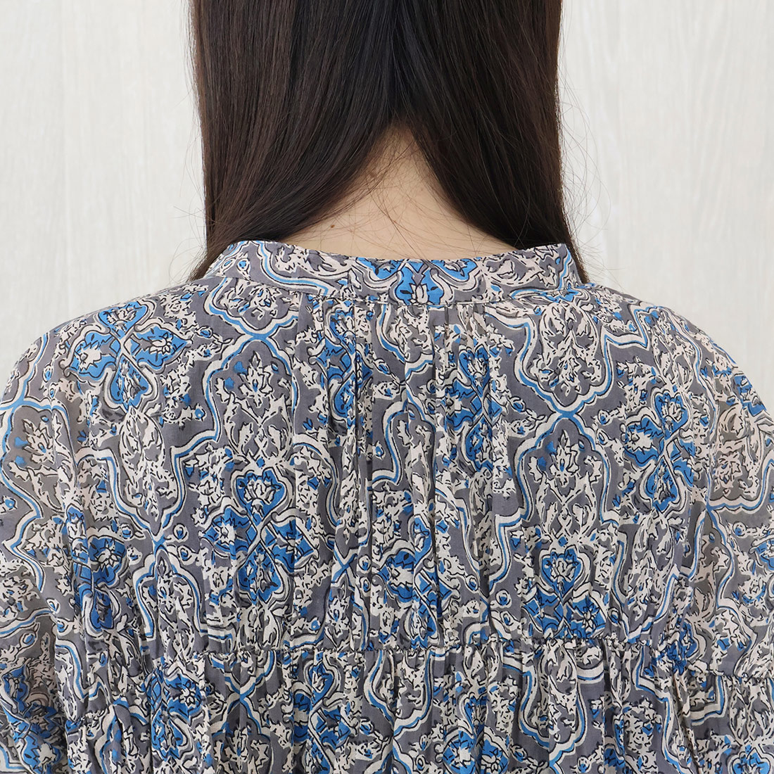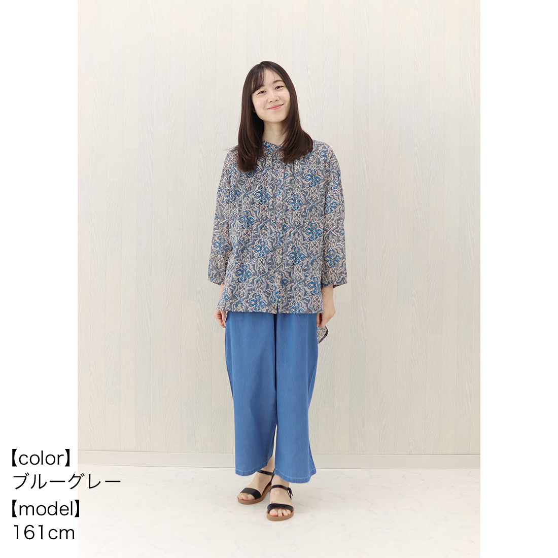 ブラウスは後ろの丈が長くなっているので体型カバーにも◎