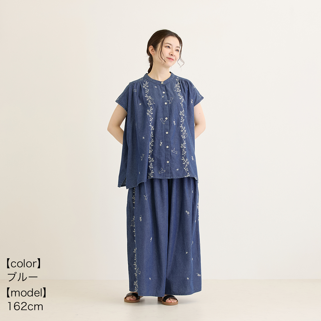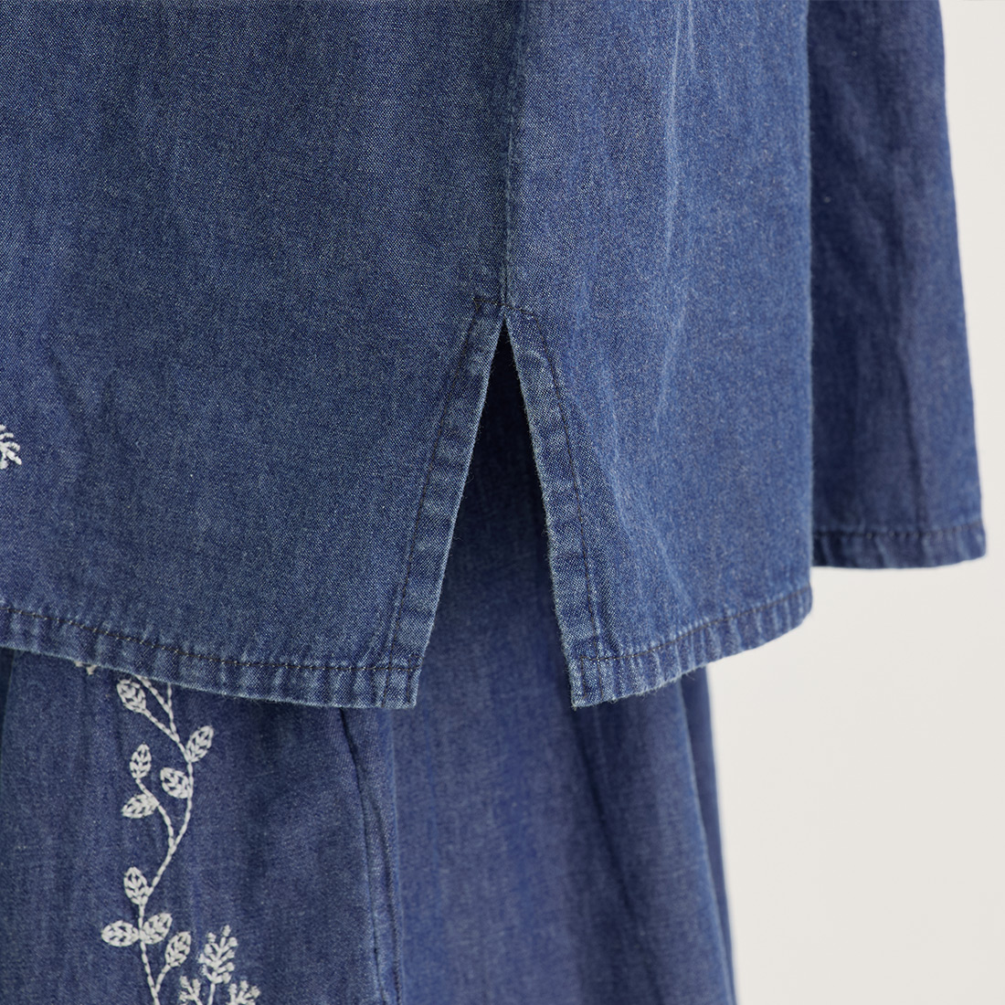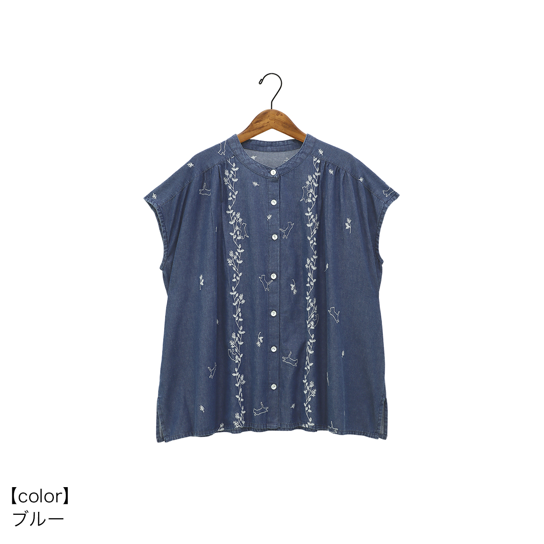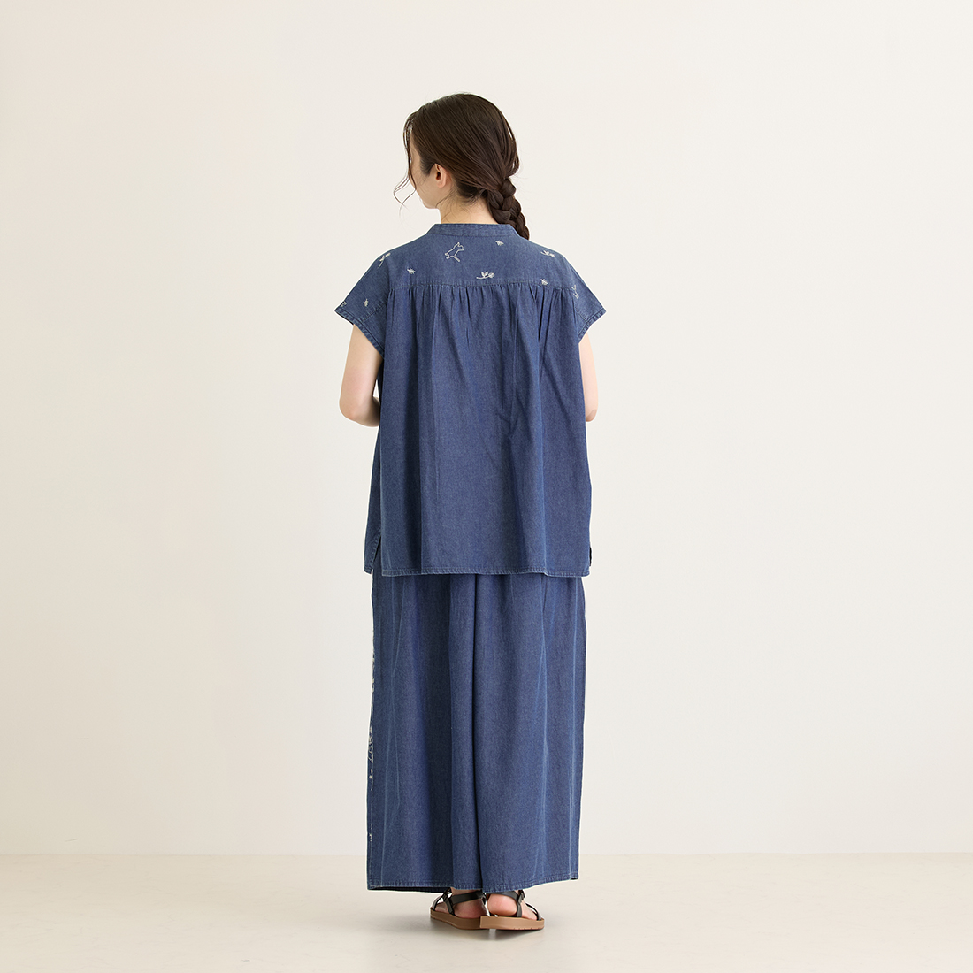 ネコたちがのびのびと過ごす様子の刺繍で、シンプルな型にもさりげない遊び心をプラスしました。