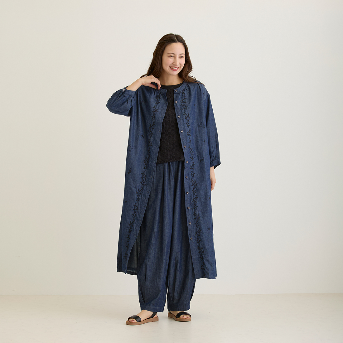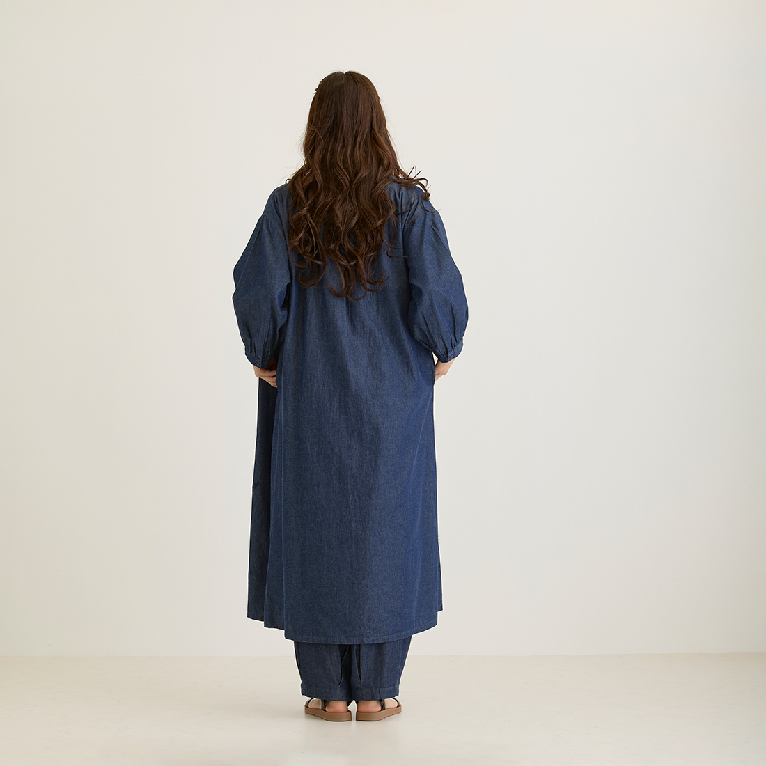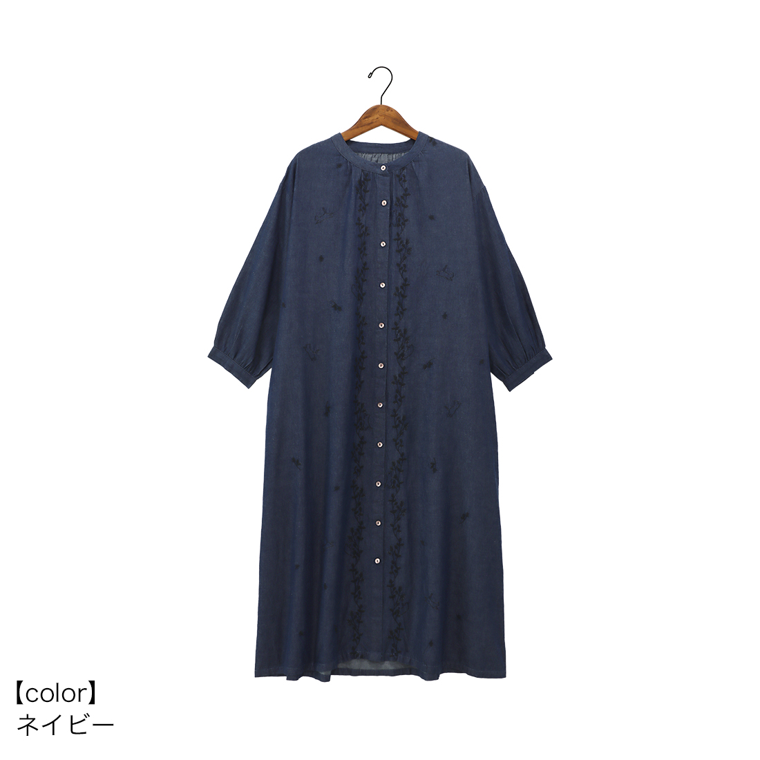 ワンピースは前開き羽織としても活躍します!両サイドポケット付きです。
