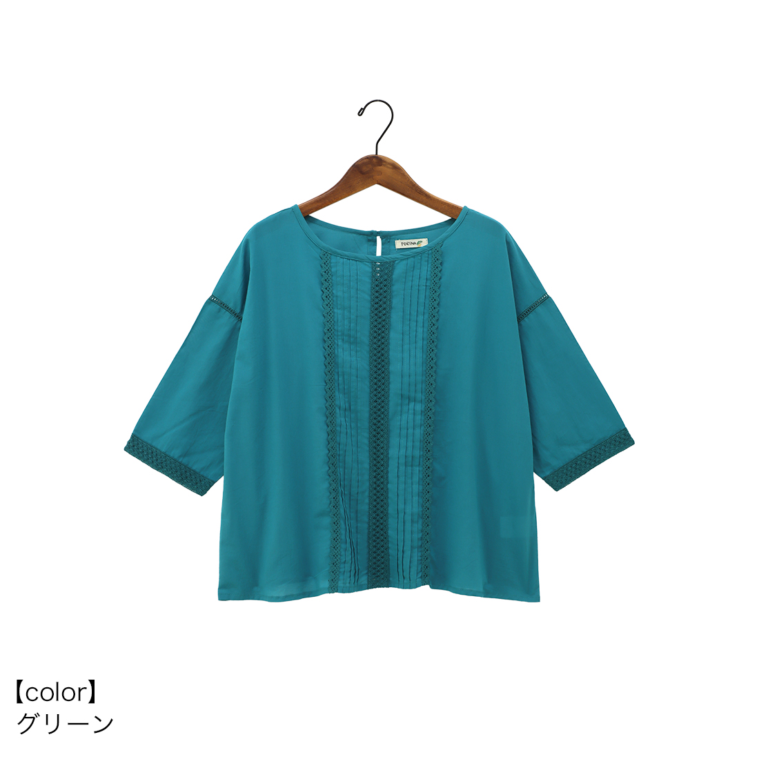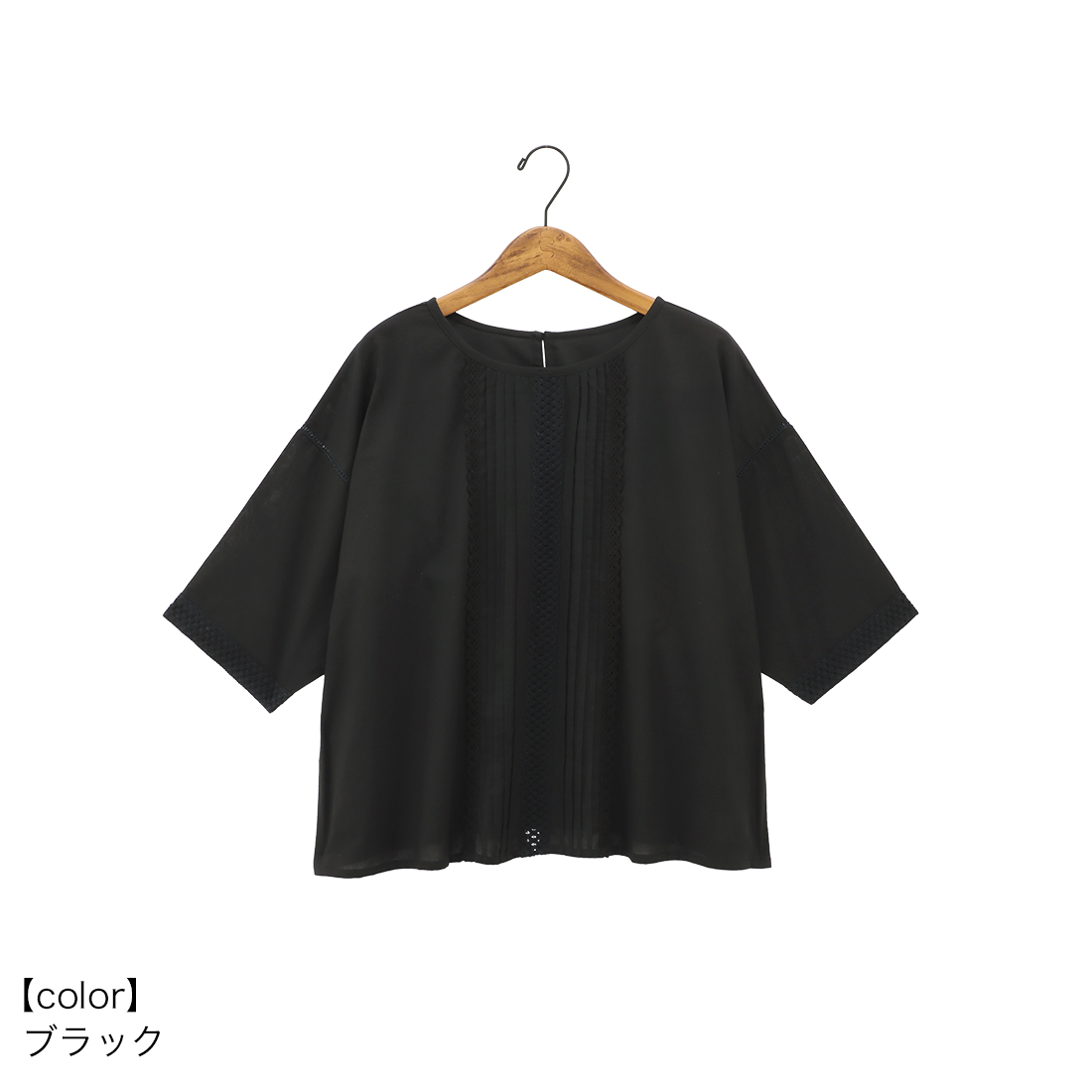 プルオーバーは中央のレースとピンタックで上品な印象に。