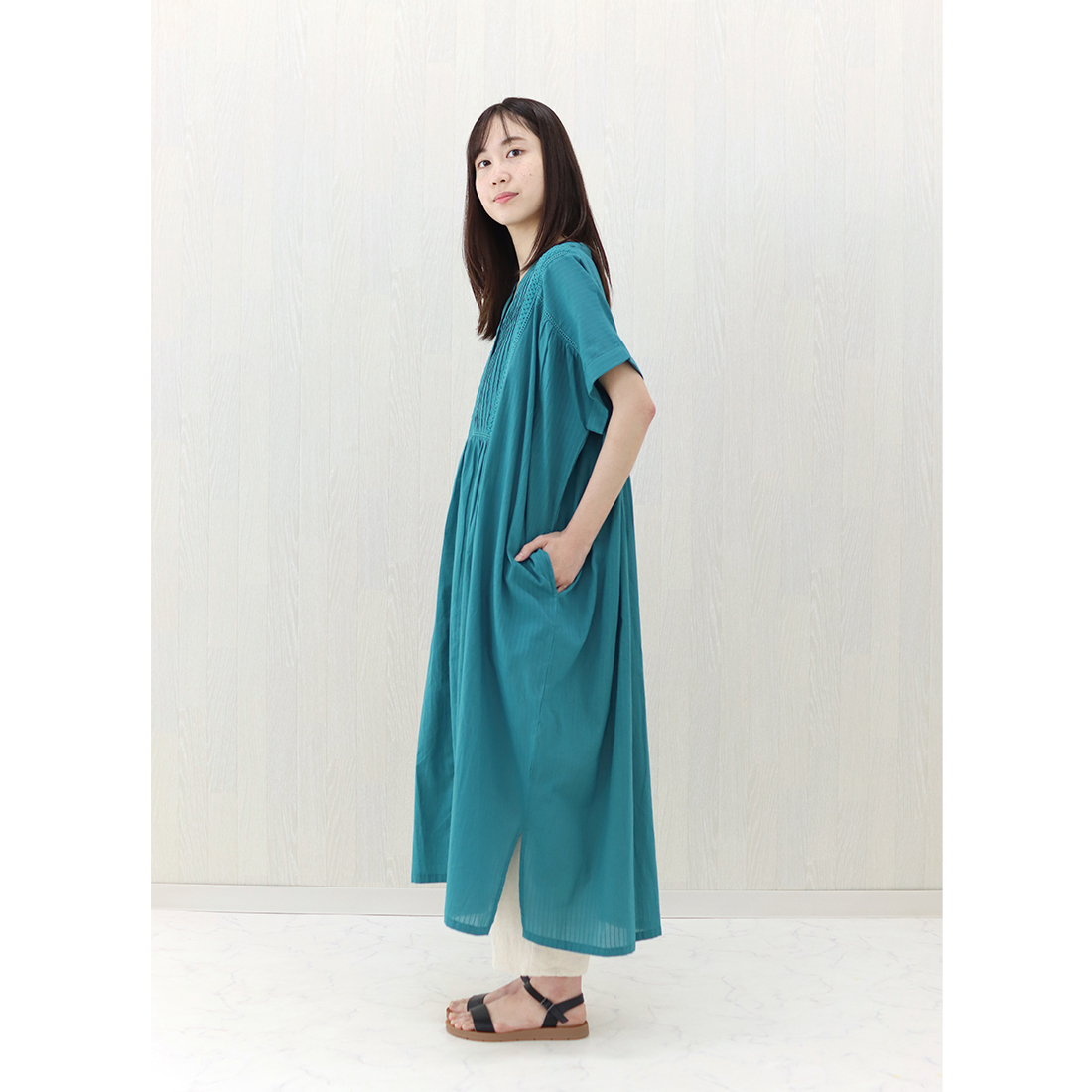 柔らかいキャンブリック生地にピンタックとコットンレースを合わせました。
