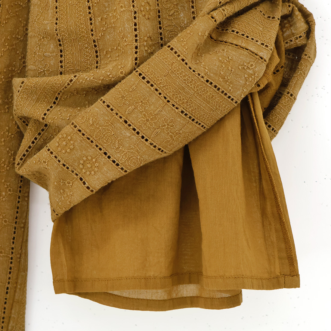 シフリー生地にエンザイムウォッシュを施し、やわらかなヴィンテージ感を漂わせました。