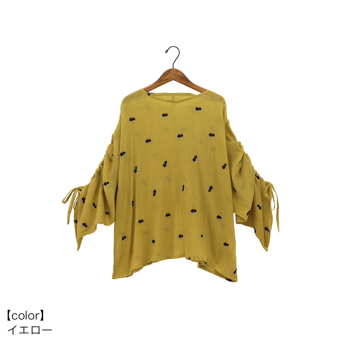 花の刺繍が映えるコットンクレープで、ナチュラルで可愛らしい印象に仕上げました。