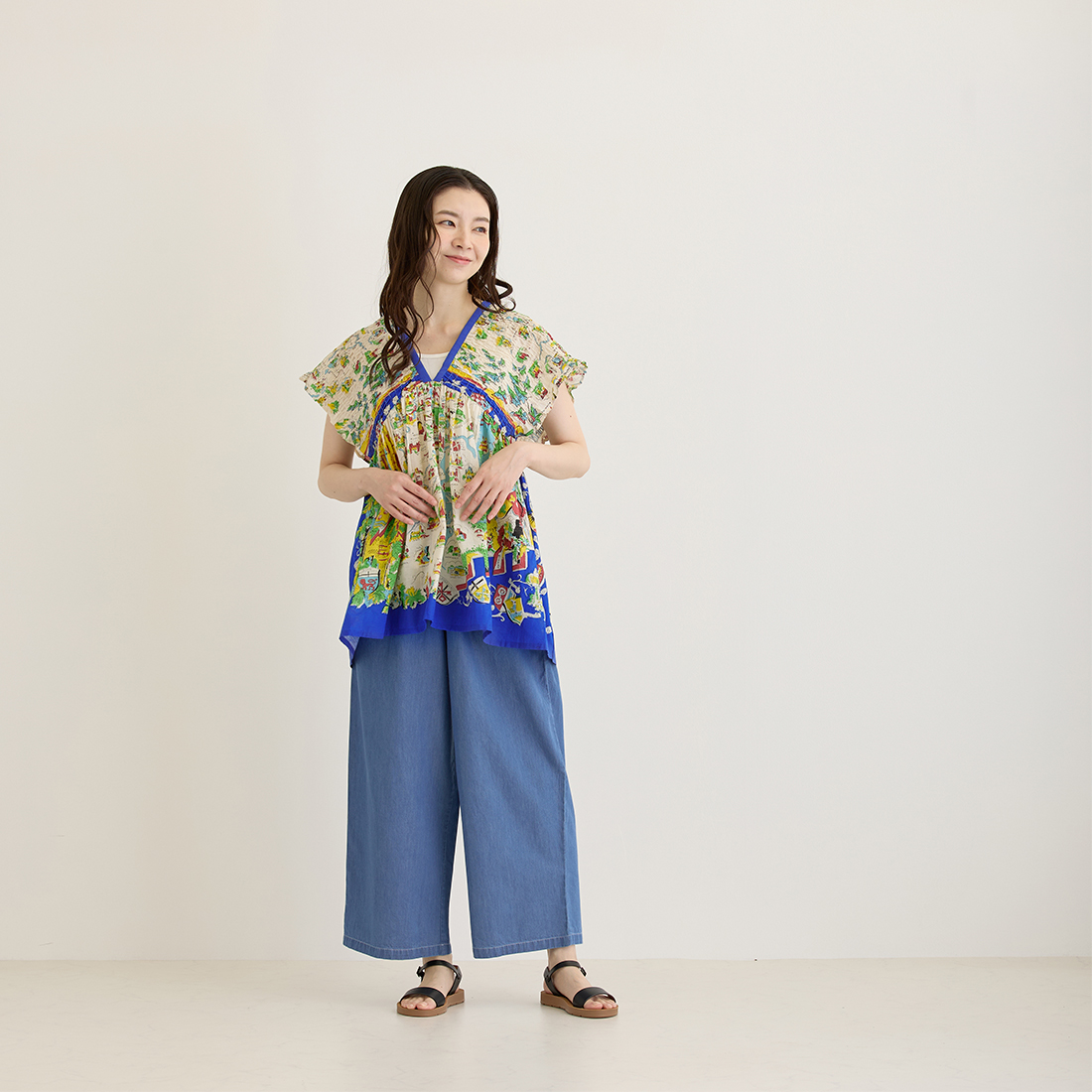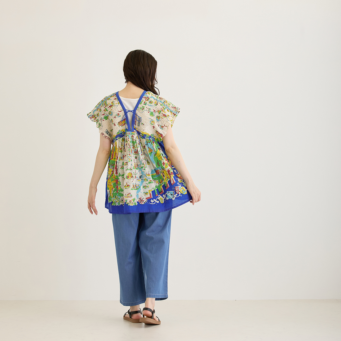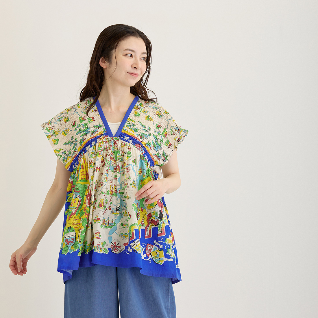 地図や風景画を描いたスカーフ調プリントで、どこか異国の雰囲気を感じる爽やかなシリーズです。