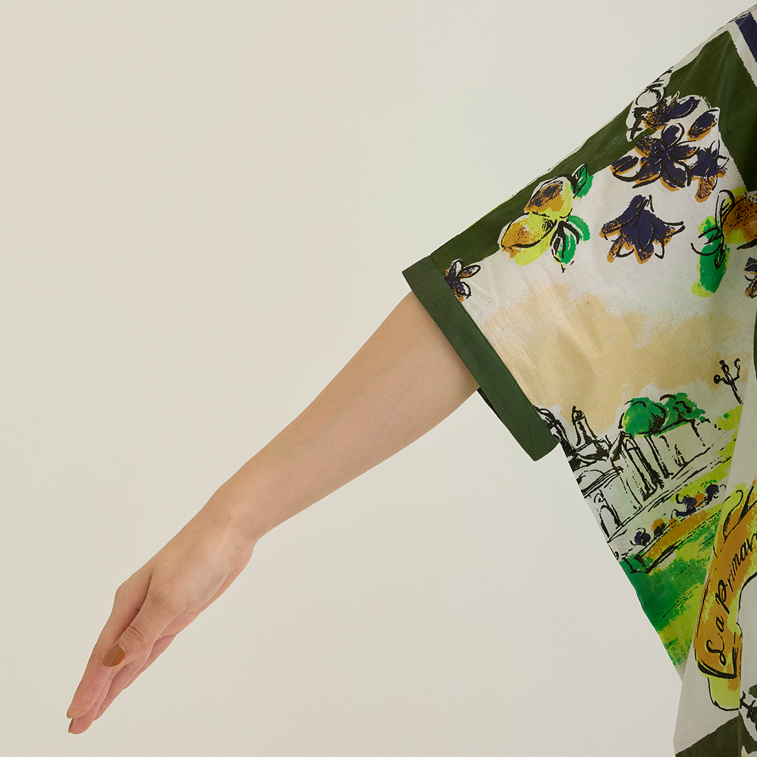両手を広げて柄を見せたくなるようなアートな雰囲気。