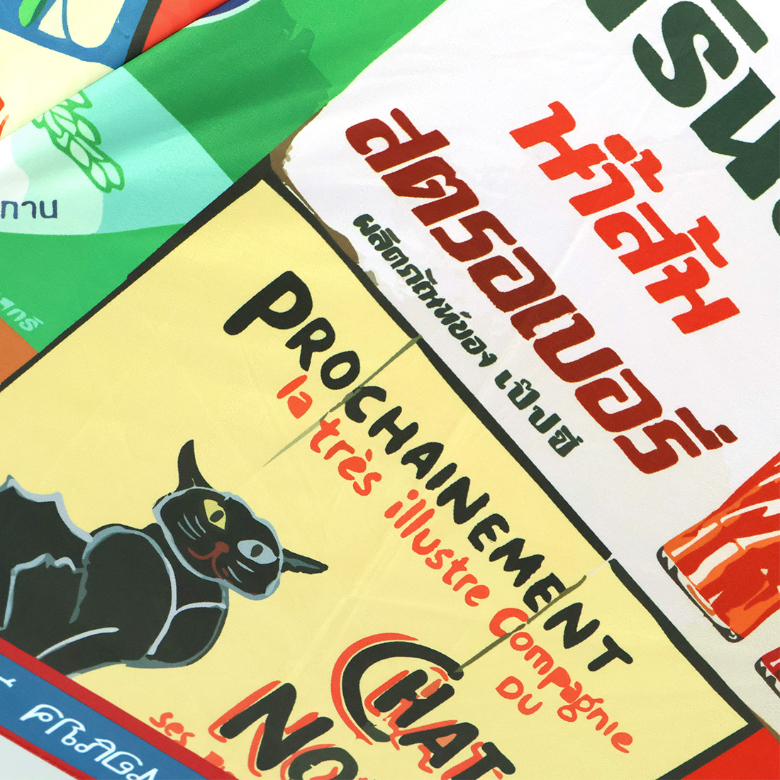 エスニックなストリートサインを切り張りしたようなユニークなデザイン!