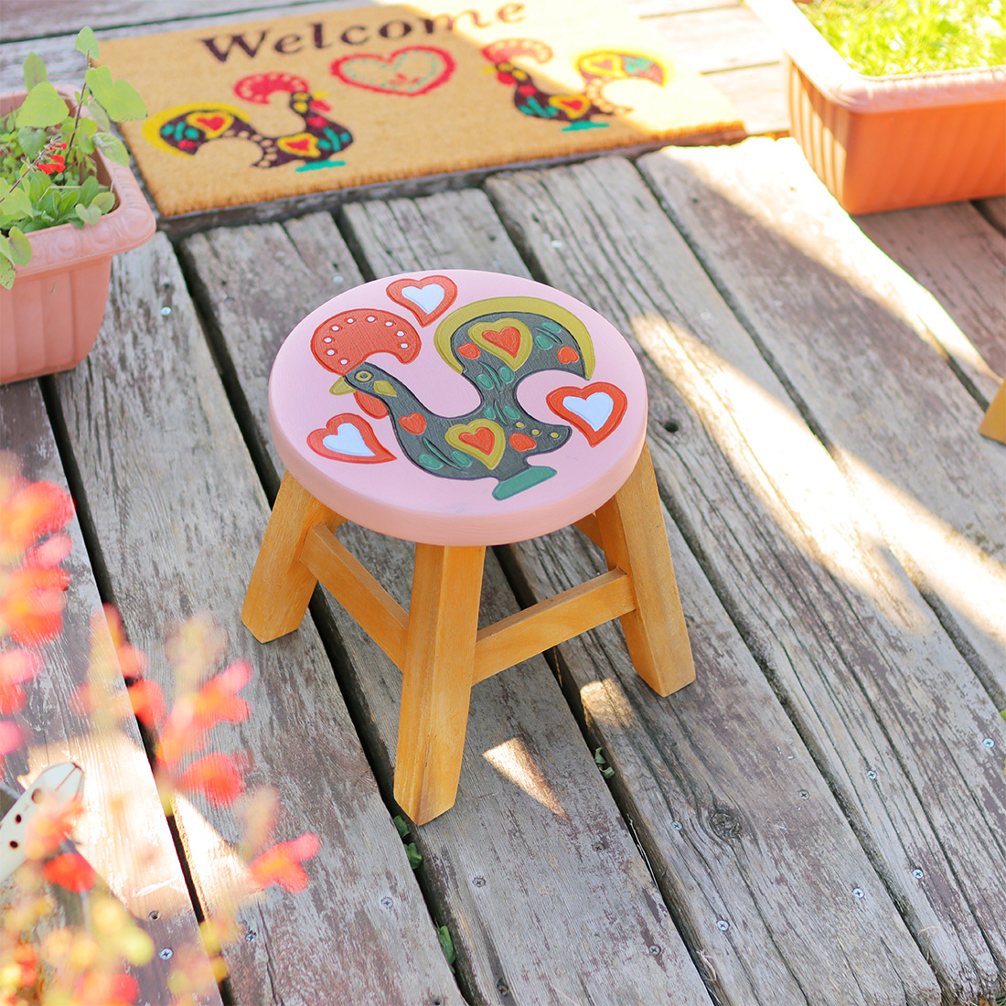 座面の柄はひとつひとつ手作業で彫られ、ハンドクラフトならではの温かみがあります。