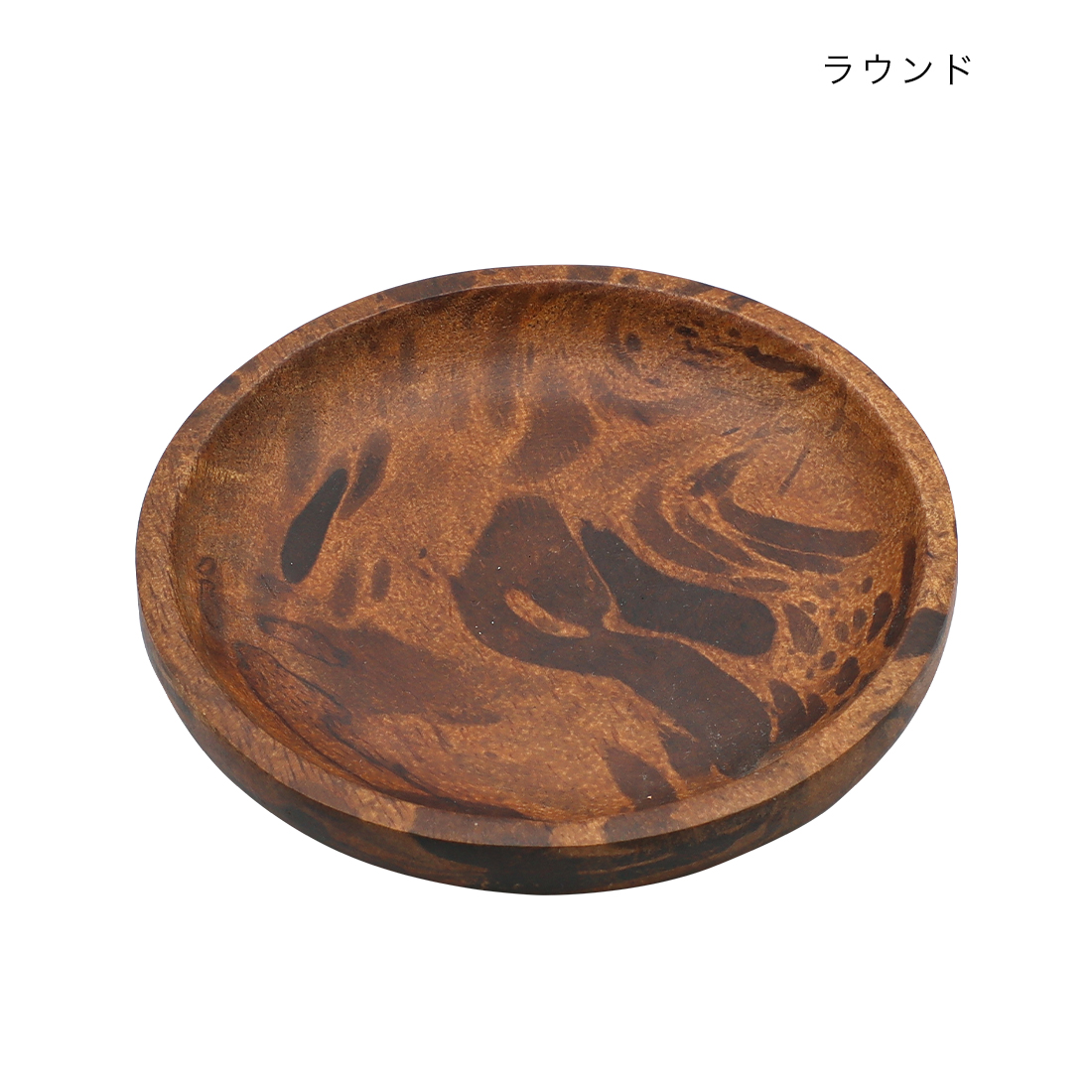マンゴーウッドをベースに、マーブルプリントを施した、表情豊かなウッドトレイ。