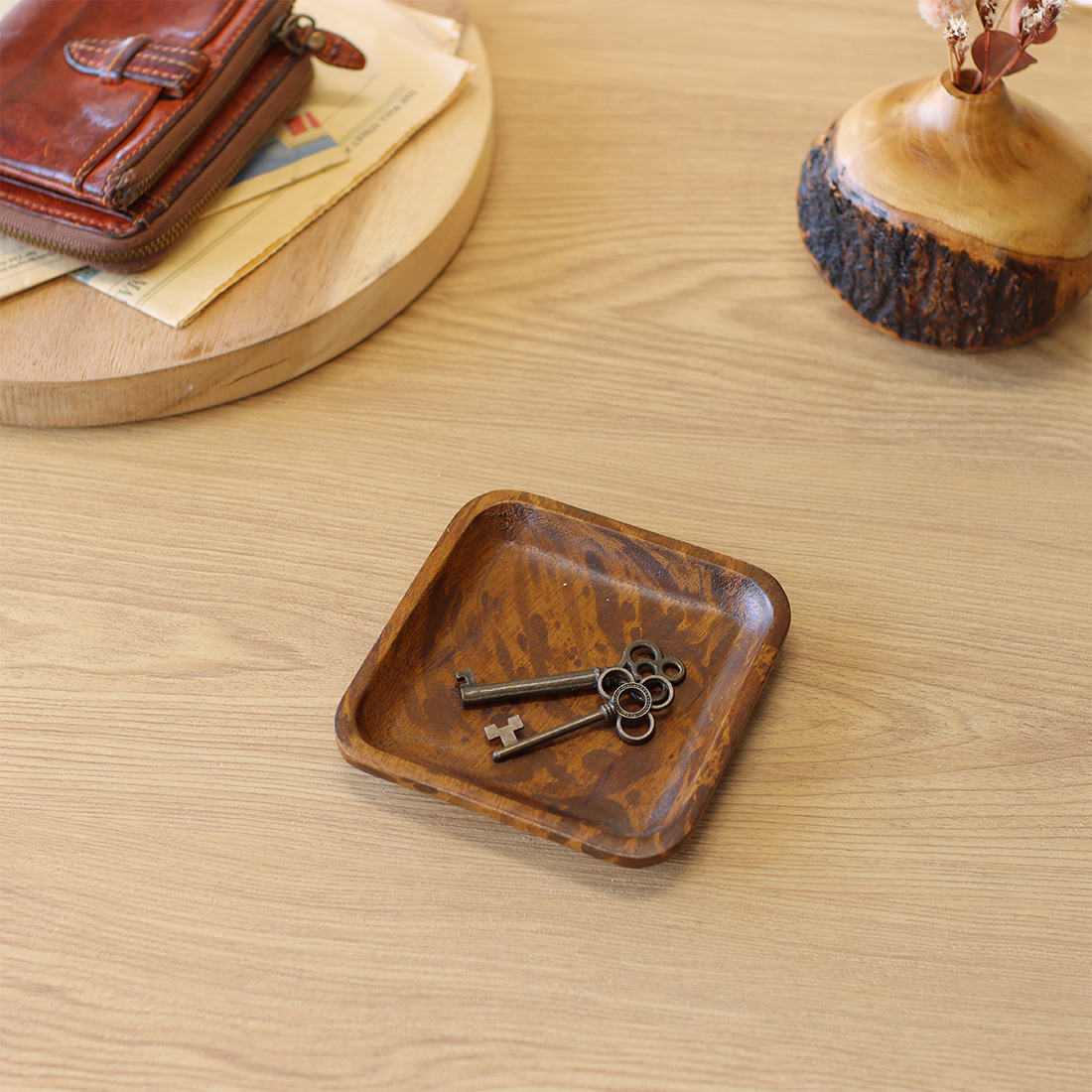 マーブル模様が際立つ、温もりあふれるウッドトレイ。