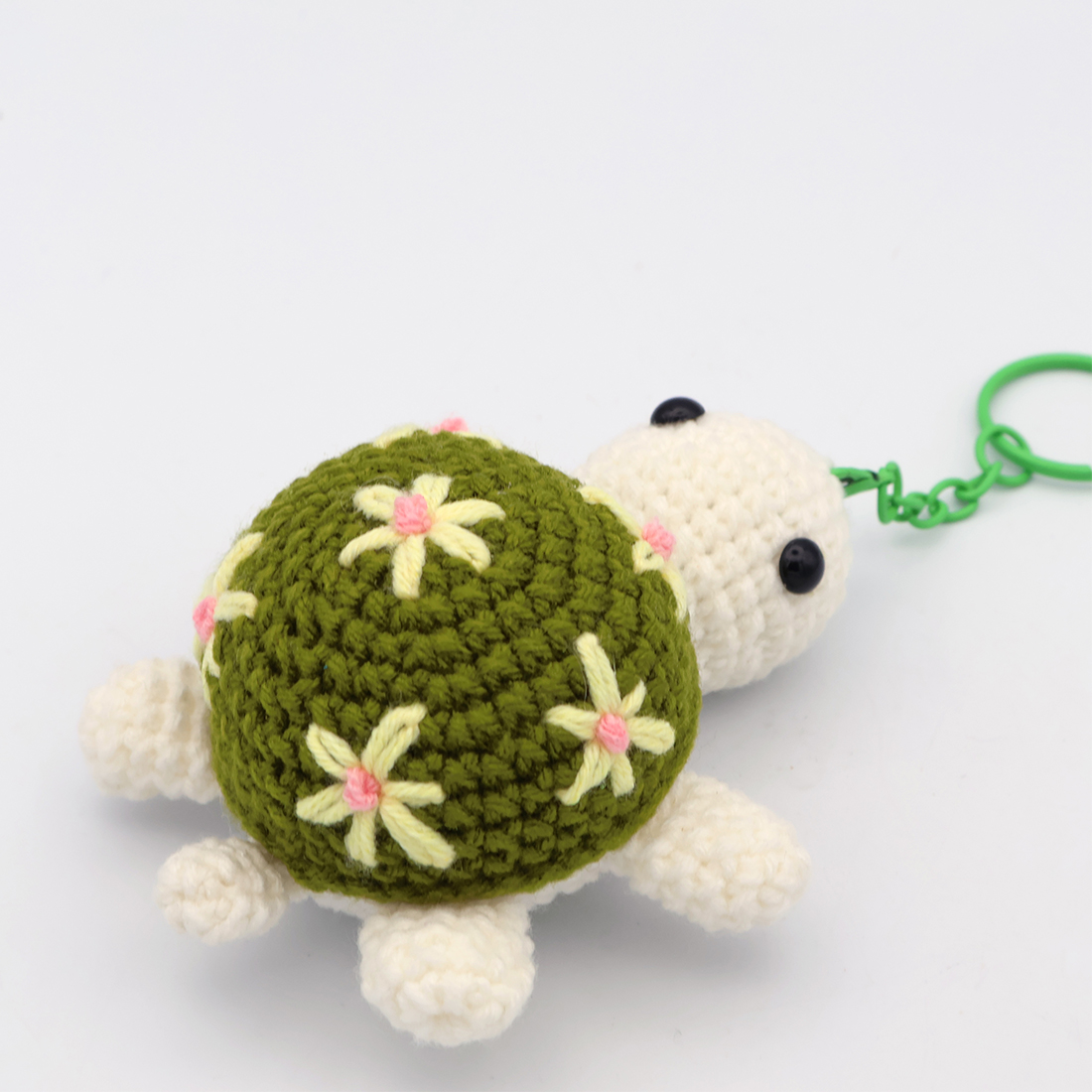 ひとつひとつ手編みした可愛いカメのキーホルダー