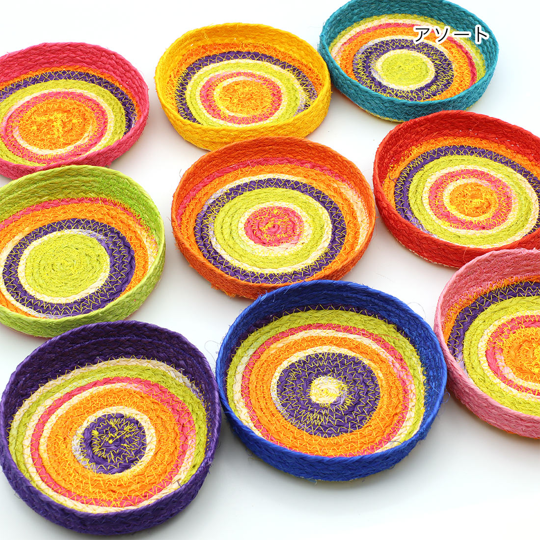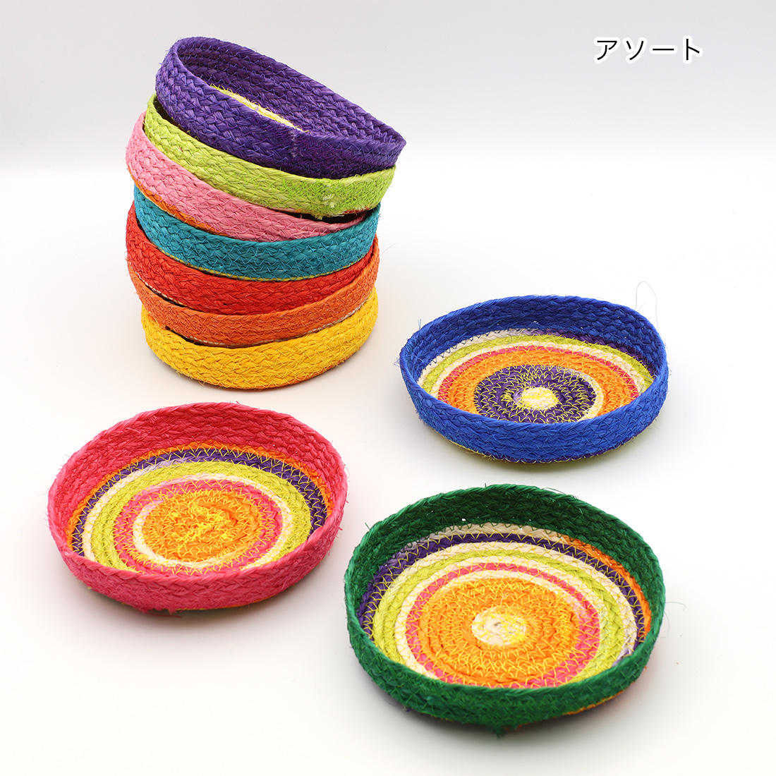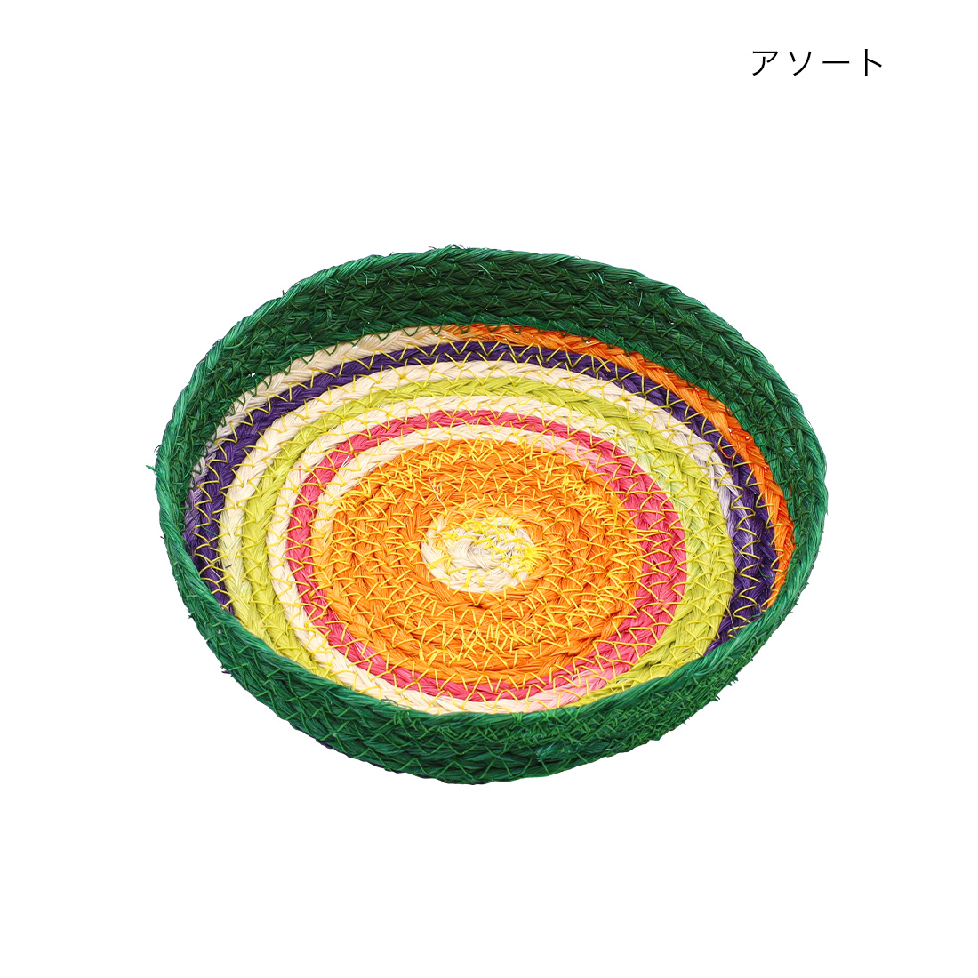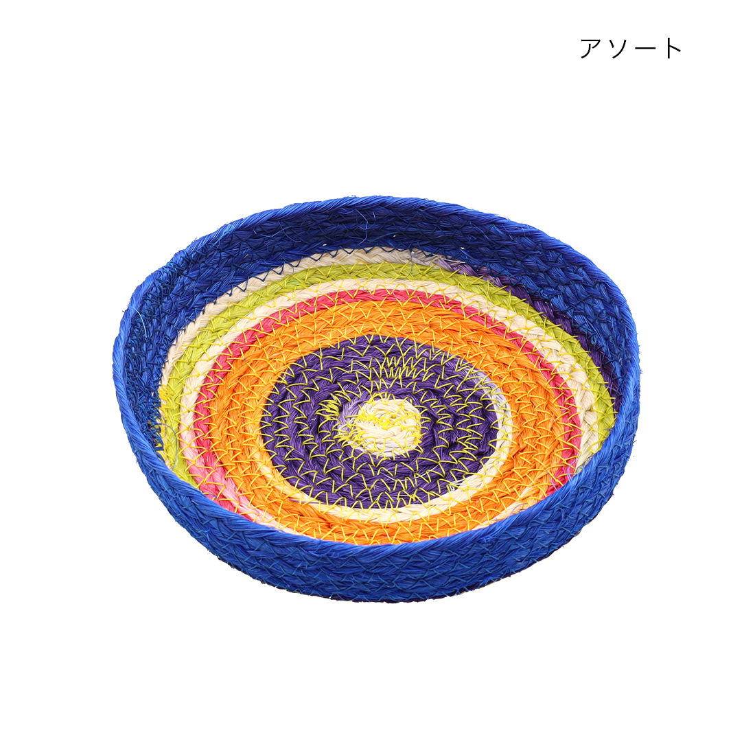 サイザル麻を丁寧に手編みしたカラフルなミニトレイ。カラフルなアソート展開で、複数並べるだけでディスプレイが華やかに。ちょっとした小物入れにちょうどいいサイズです。
