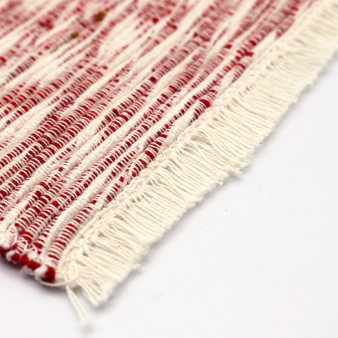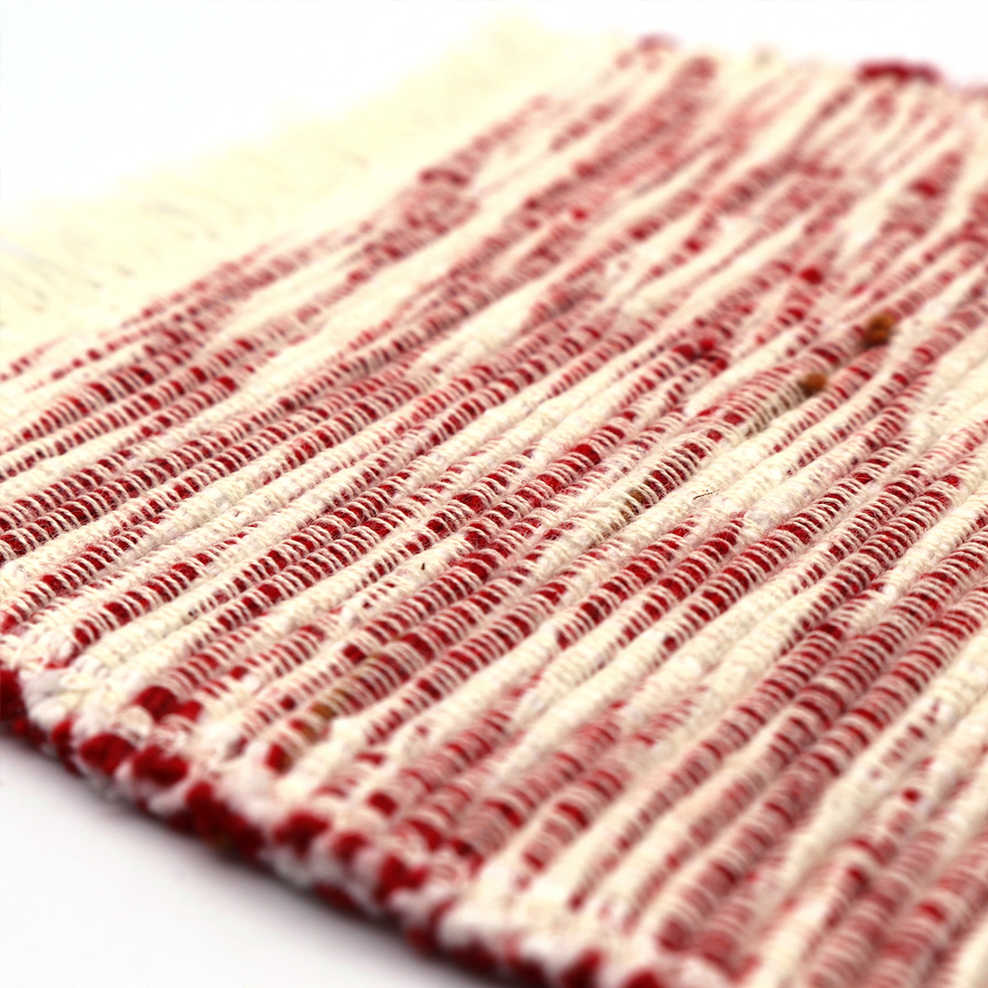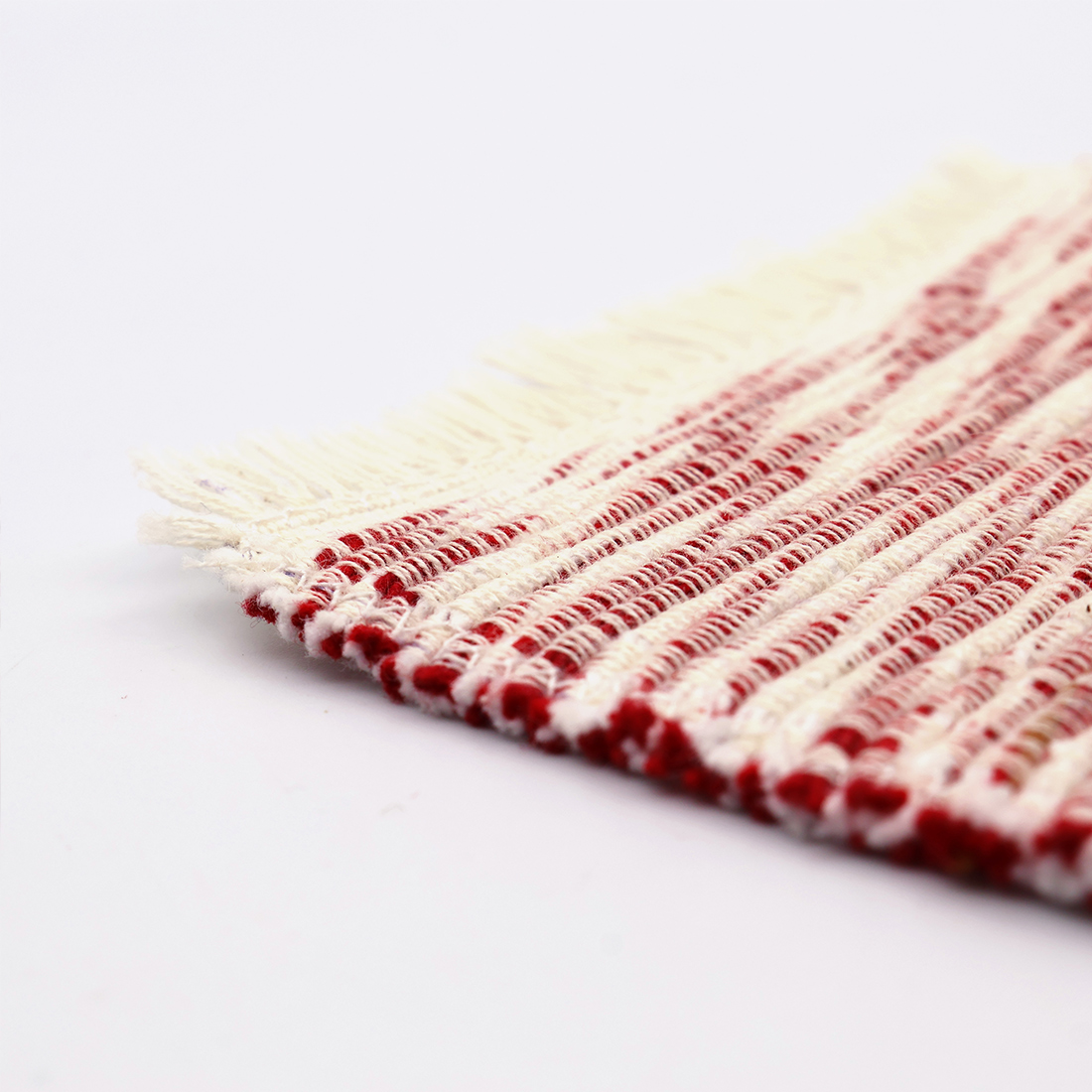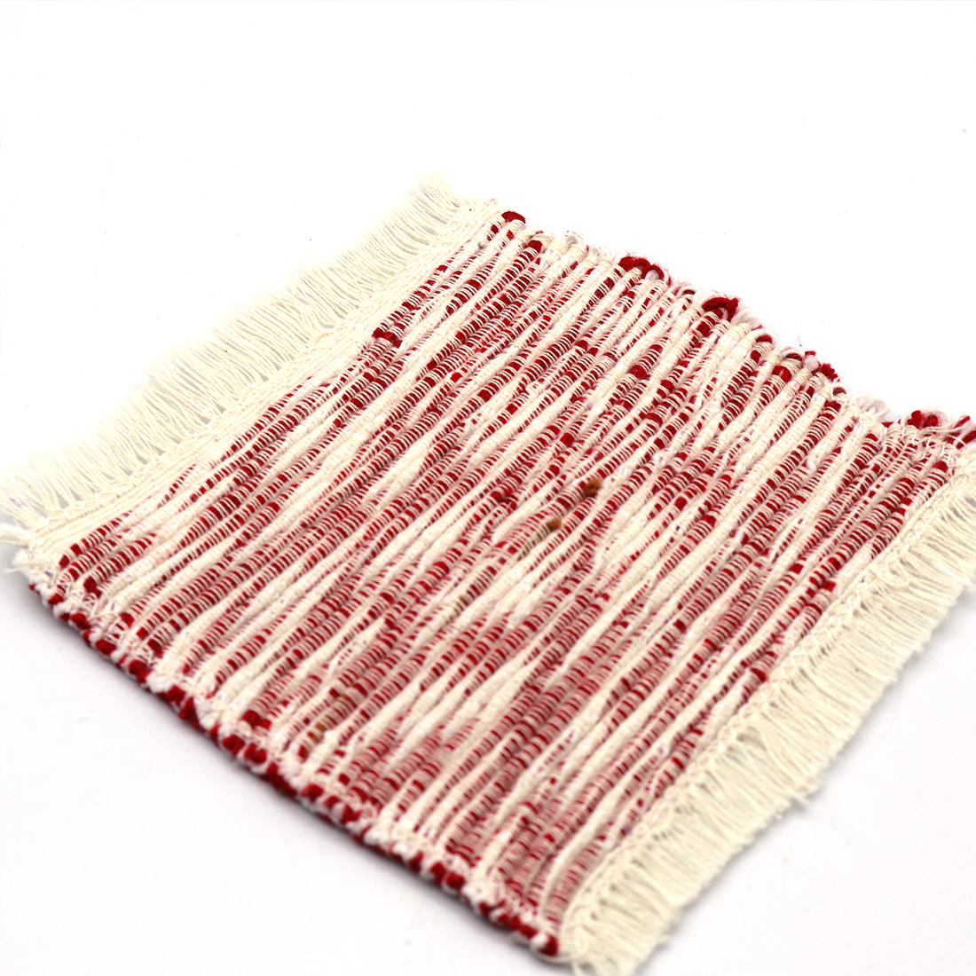 綿100%のやさしい風合いが魅力の、織り柄コースターです。端にはフリンジをあしらい、ナチュラルな雰囲気に仕上げました。同シリーズのランチマットと揃えて使っても◎。