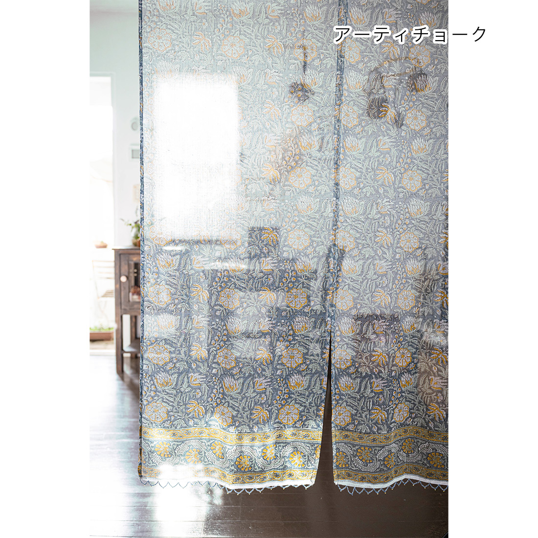 太い糸と細い糸を間隔を開けて緩く織り上げたコタドリア生地の“のれん”です。