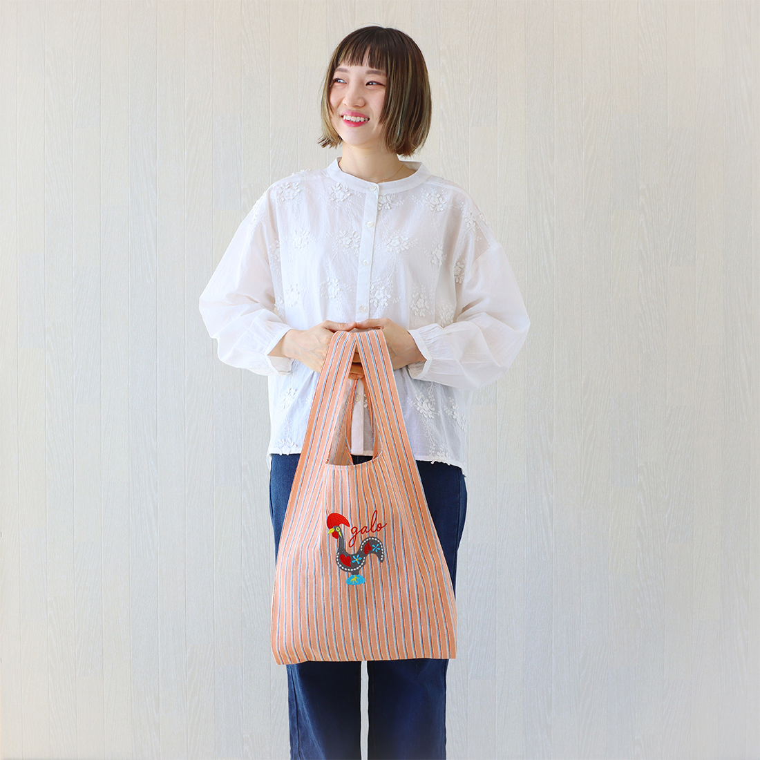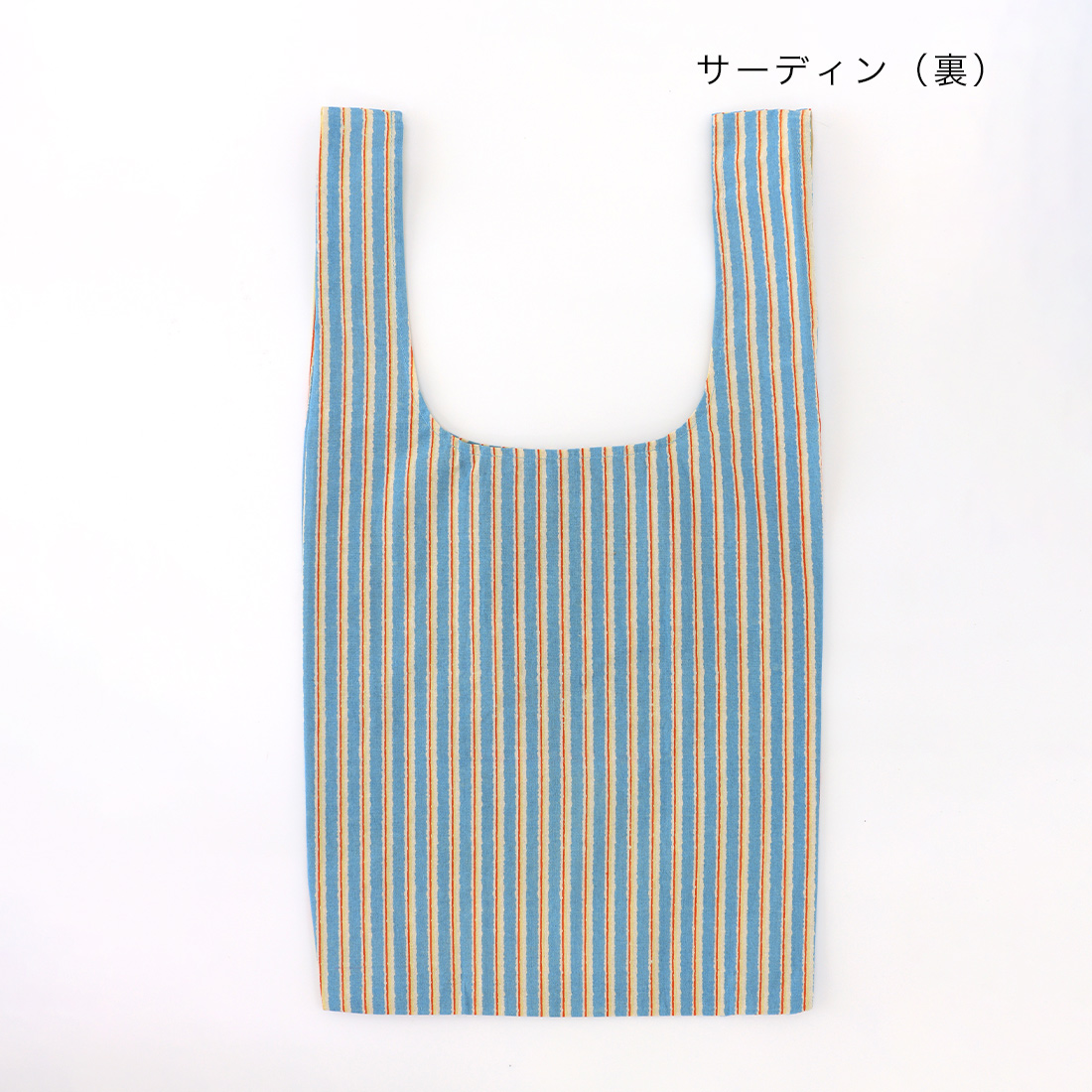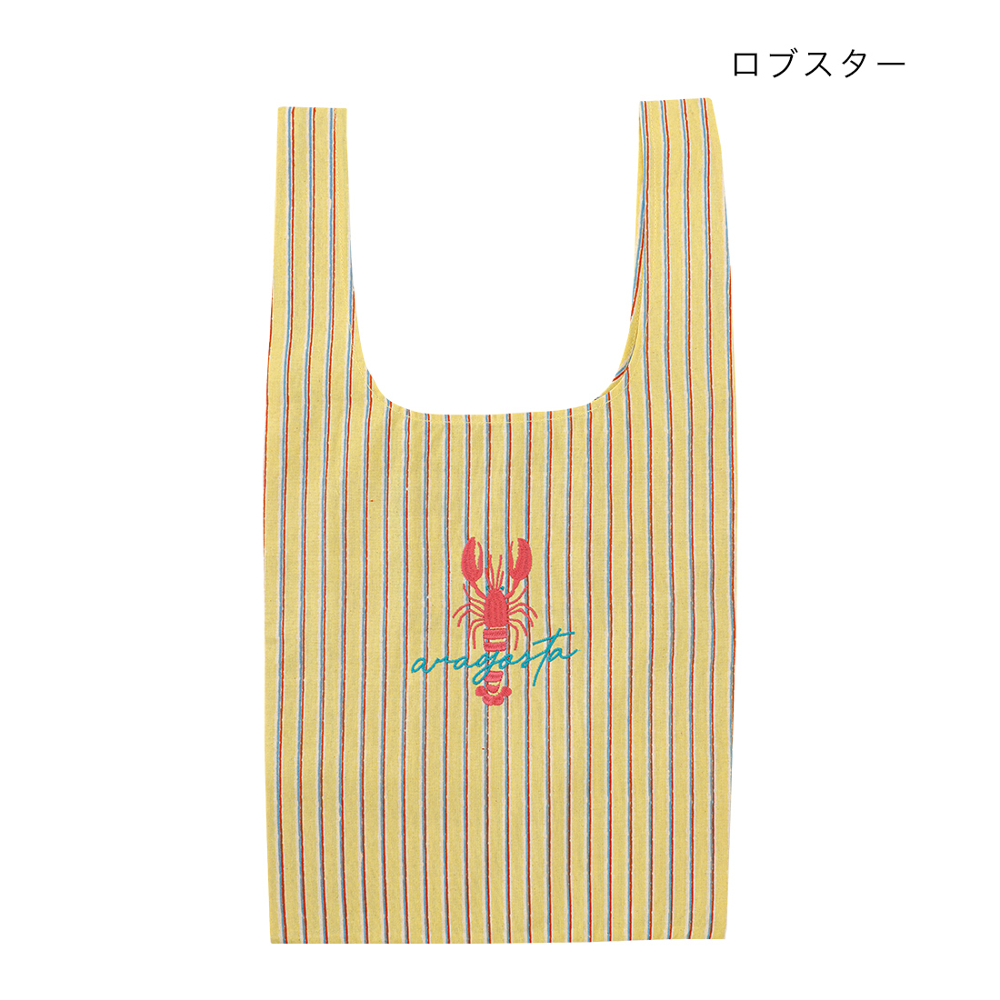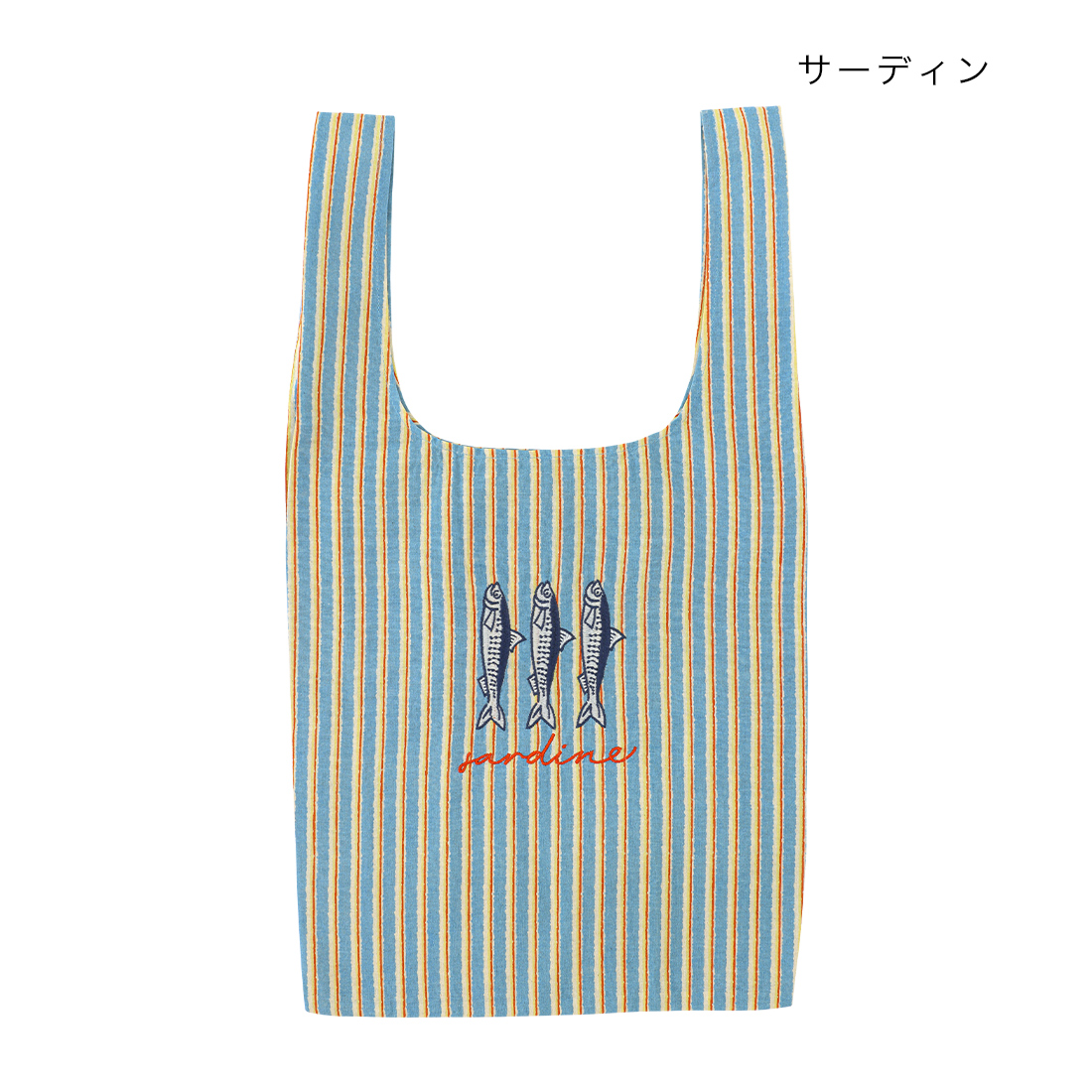 爽やかなストライプに南欧テイストを感じるマルシェバッグ。心が明るく元気になるような可愛いカラーとユニークな絵柄がポイント♪お買い物への足どりが軽くなりそうです。