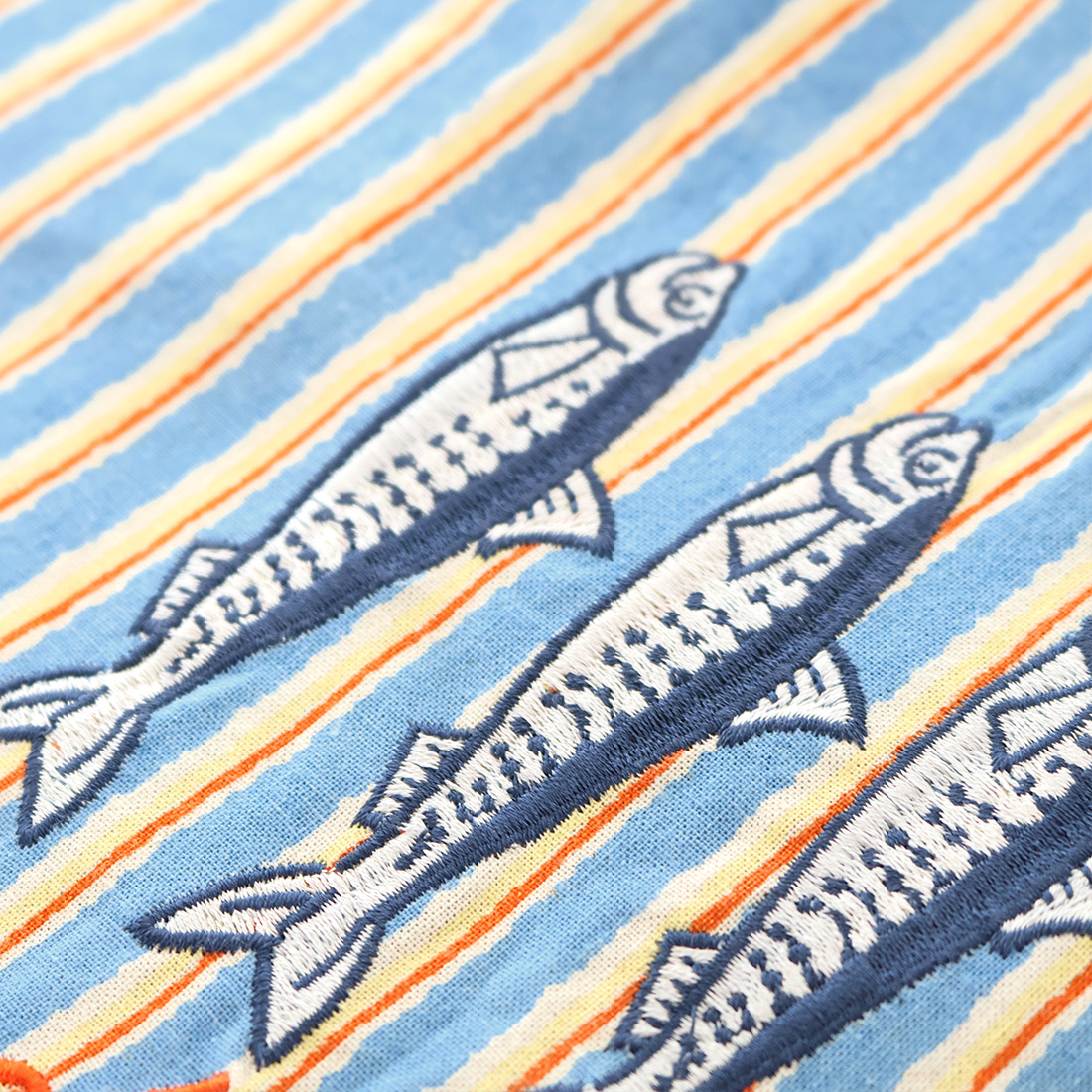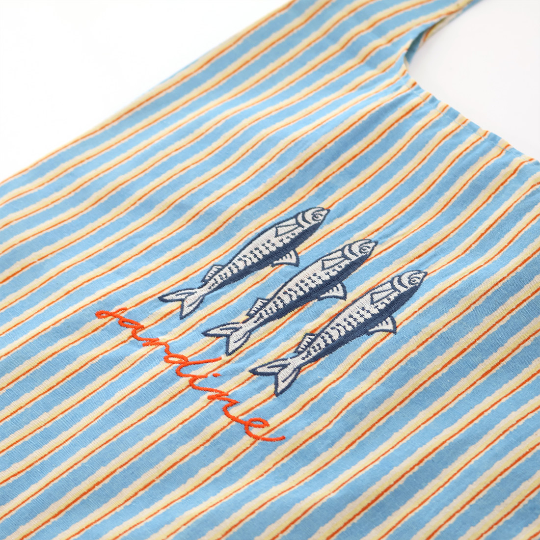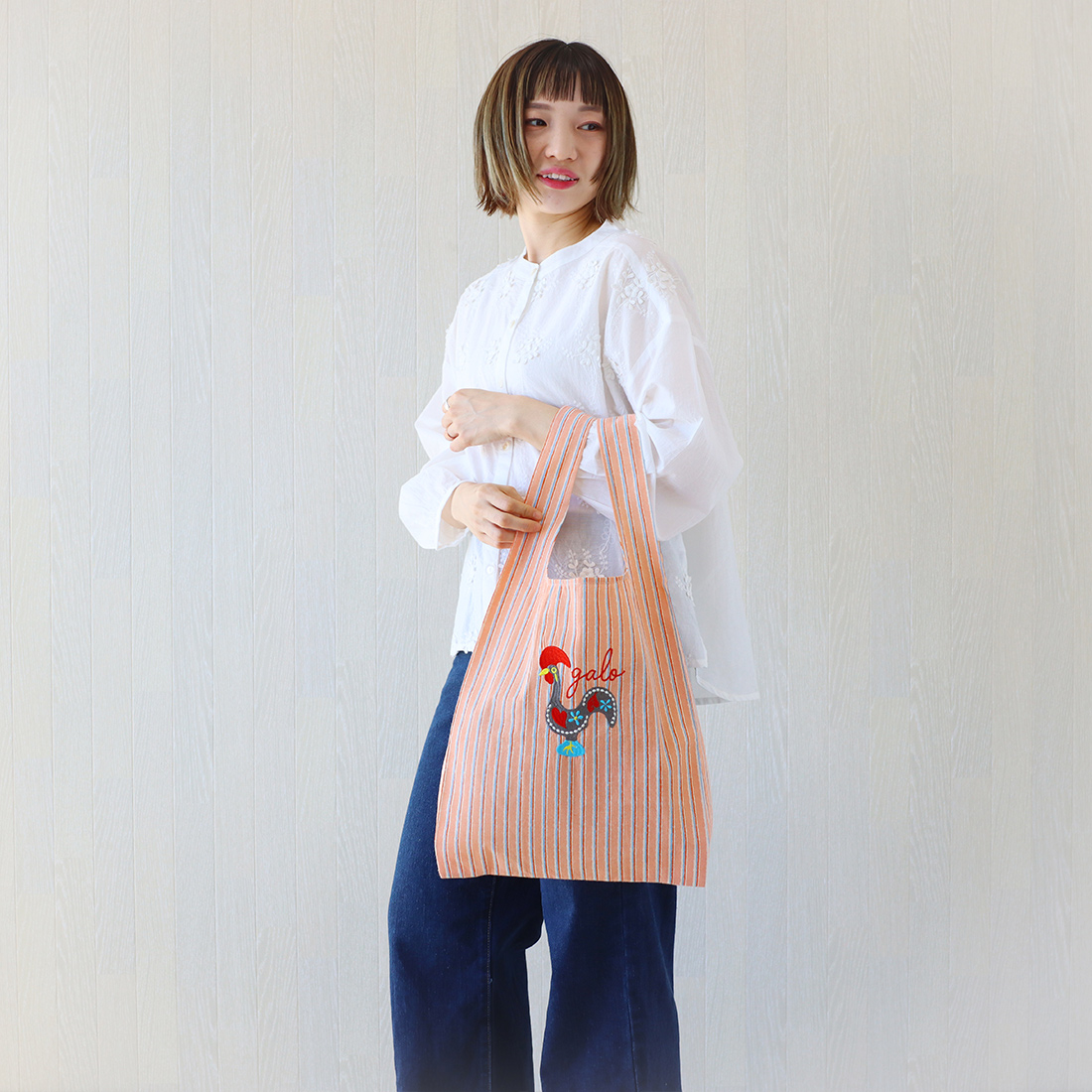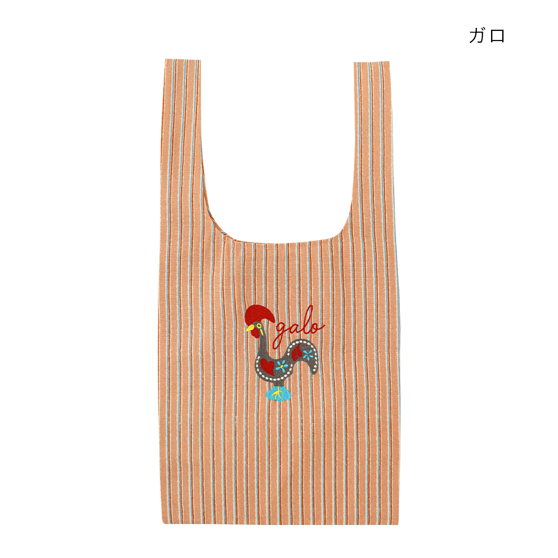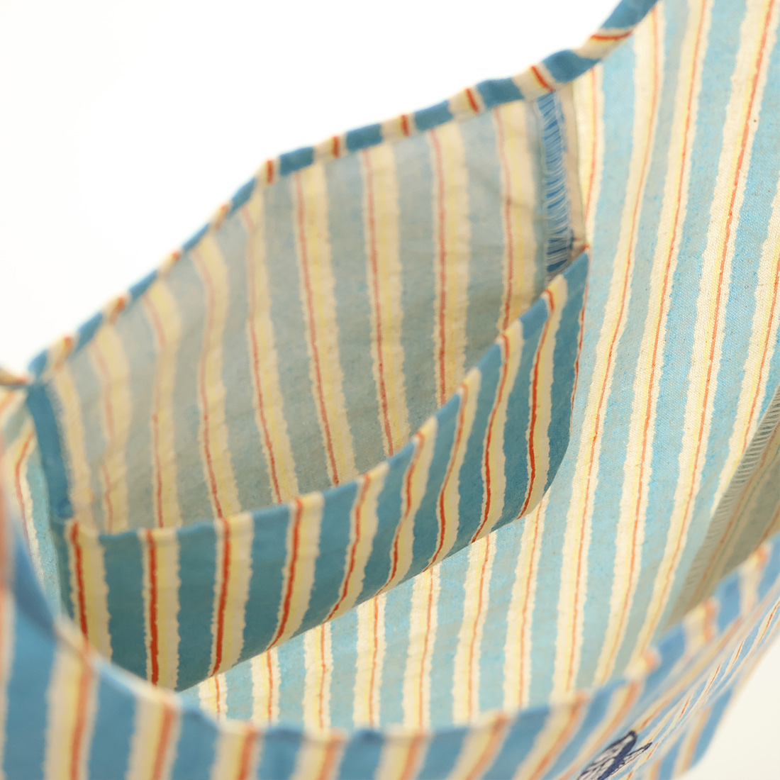 爽やかなストライプに南欧テイストを感じるマルシェバッグ。心が明るく元気になるような可愛いカラーとユニークな絵柄がポイント♪お買い物への足どりが軽くなりそうです。