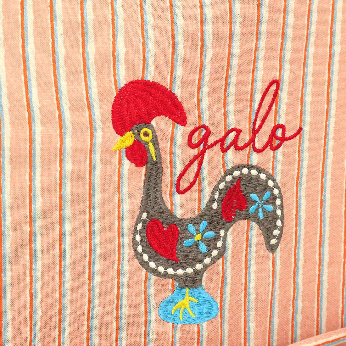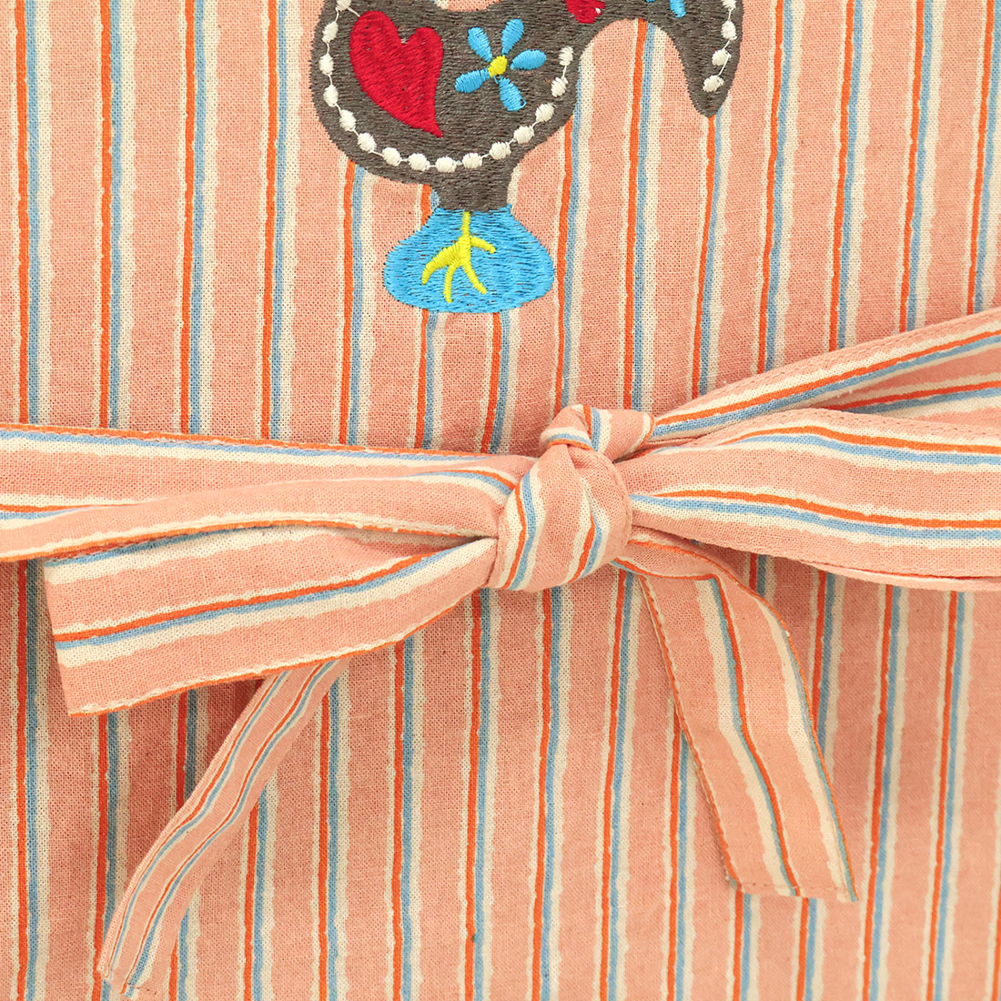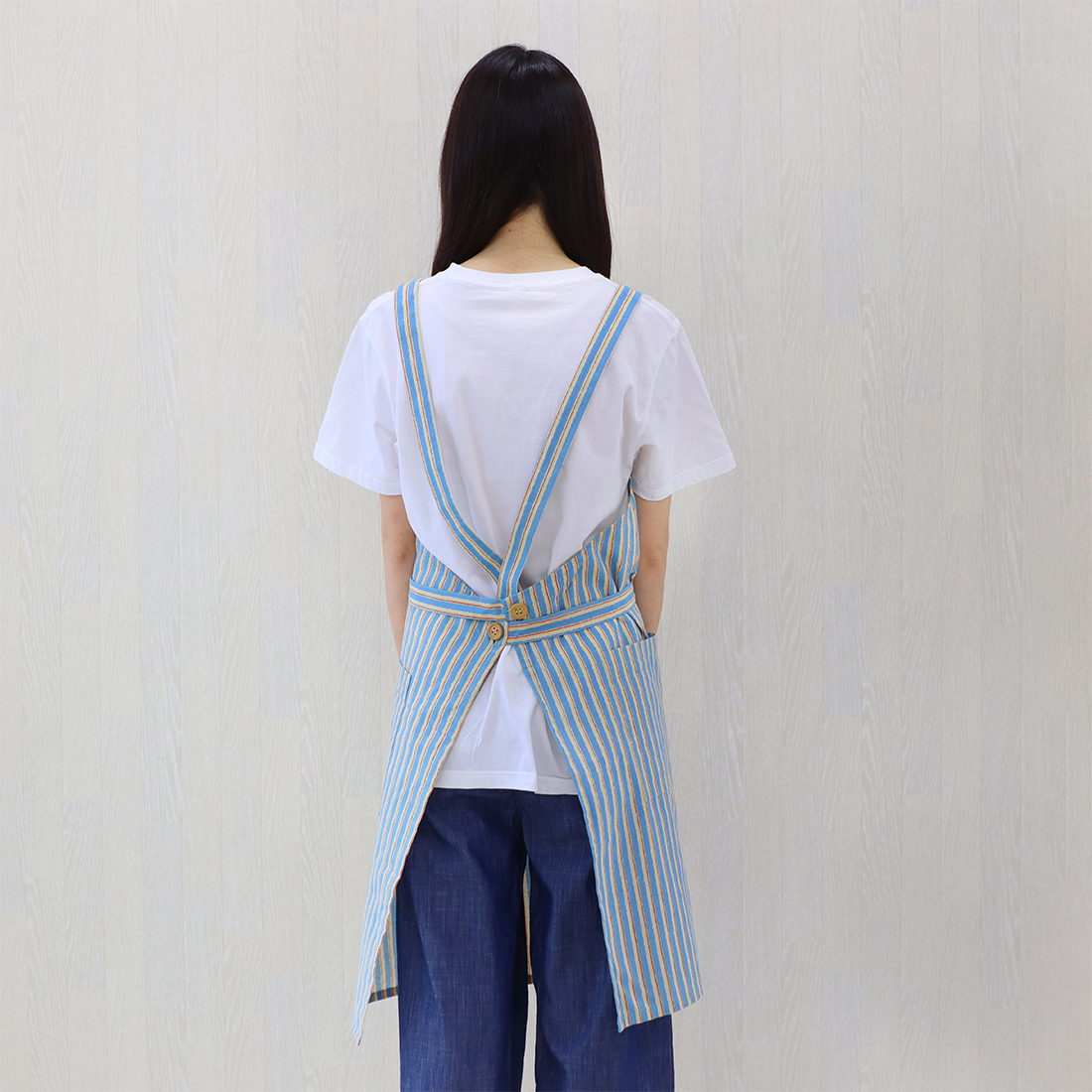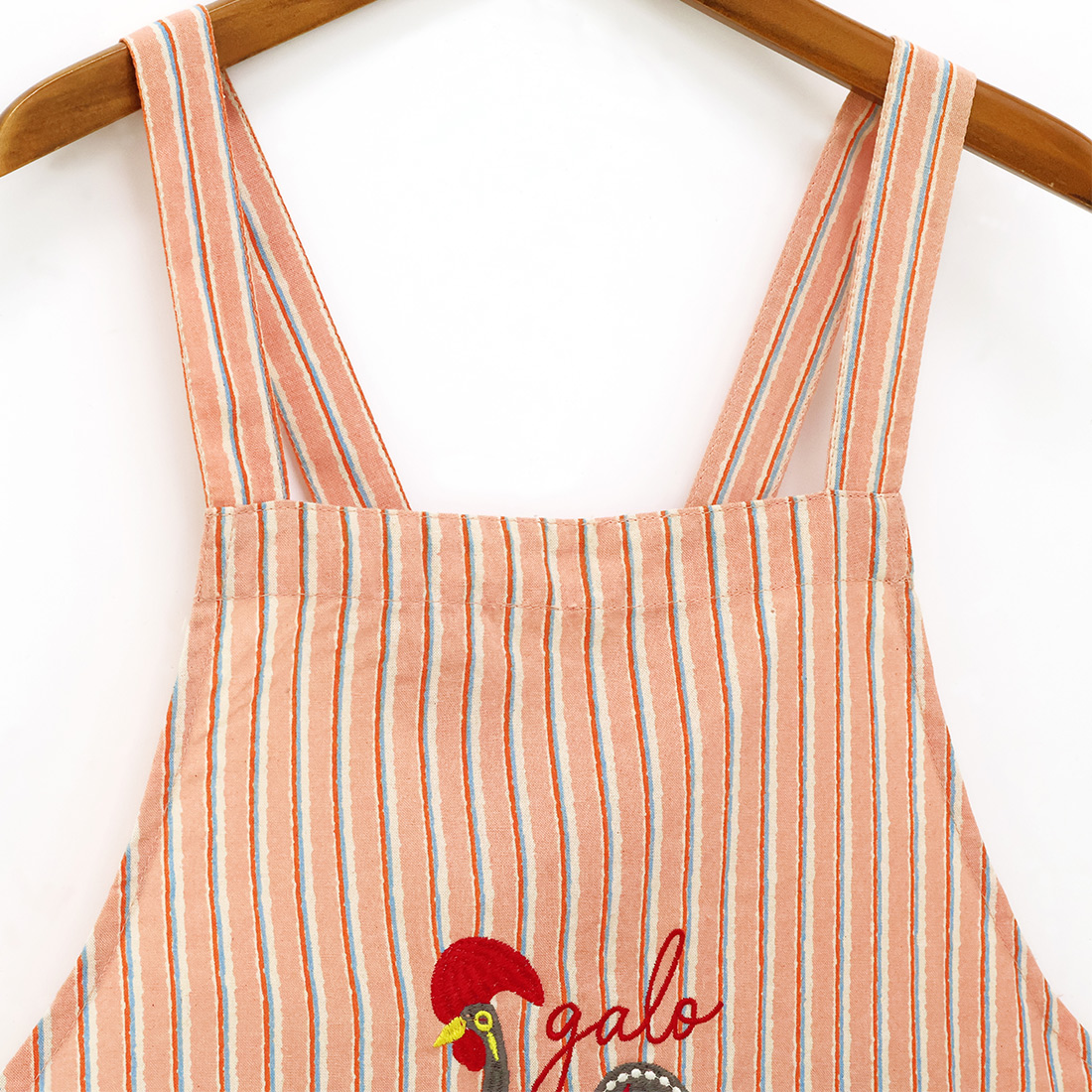 爽やかなストライプに南欧テイストを感じるエプロン。心が明るく元気になるような可愛いカラーとユニークな絵柄がポイント♪お料理が楽しくなりそうです。