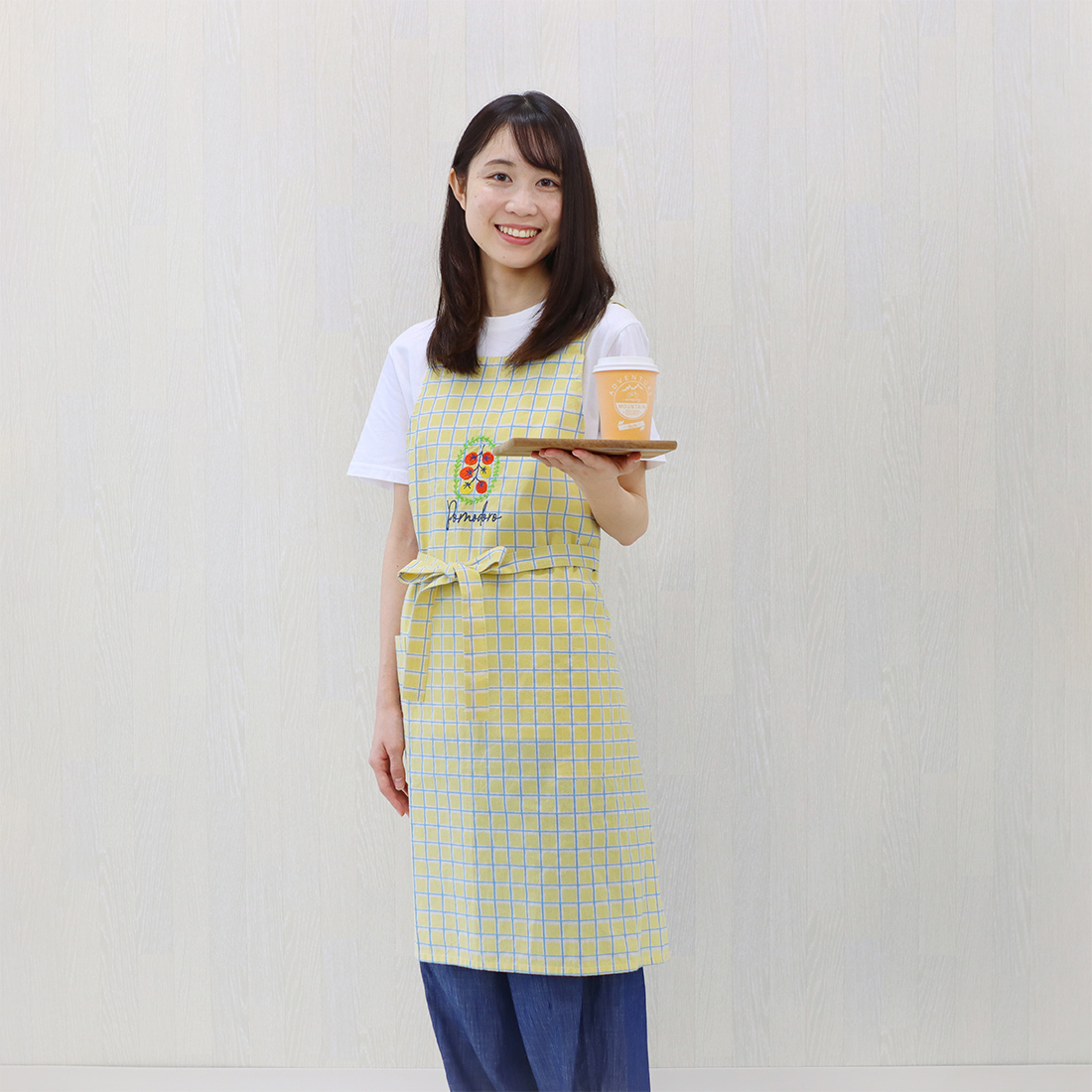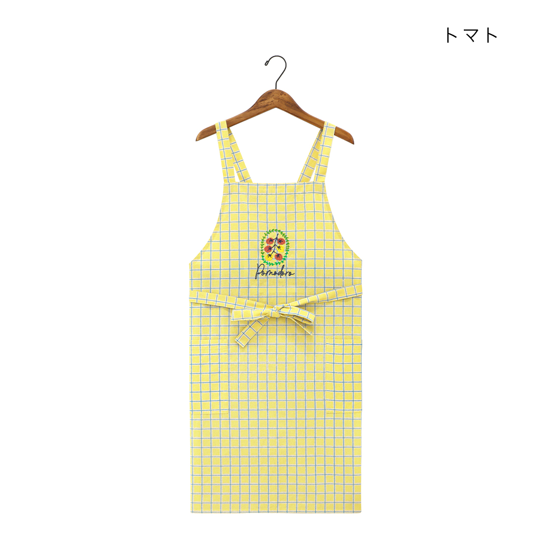 2026春夏から登場!レモンとオレンジ、プチトマトをモチーフにした、南欧テイストを感じるエプロンです。心が明るく元気になるような可愛いカラーがポイント♪お料理が楽しくなりそうです。