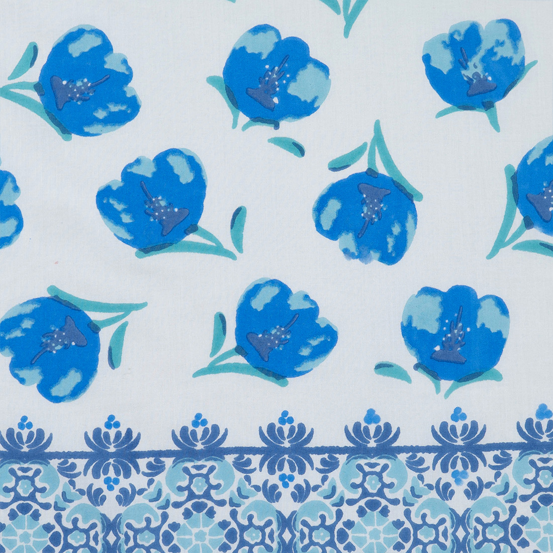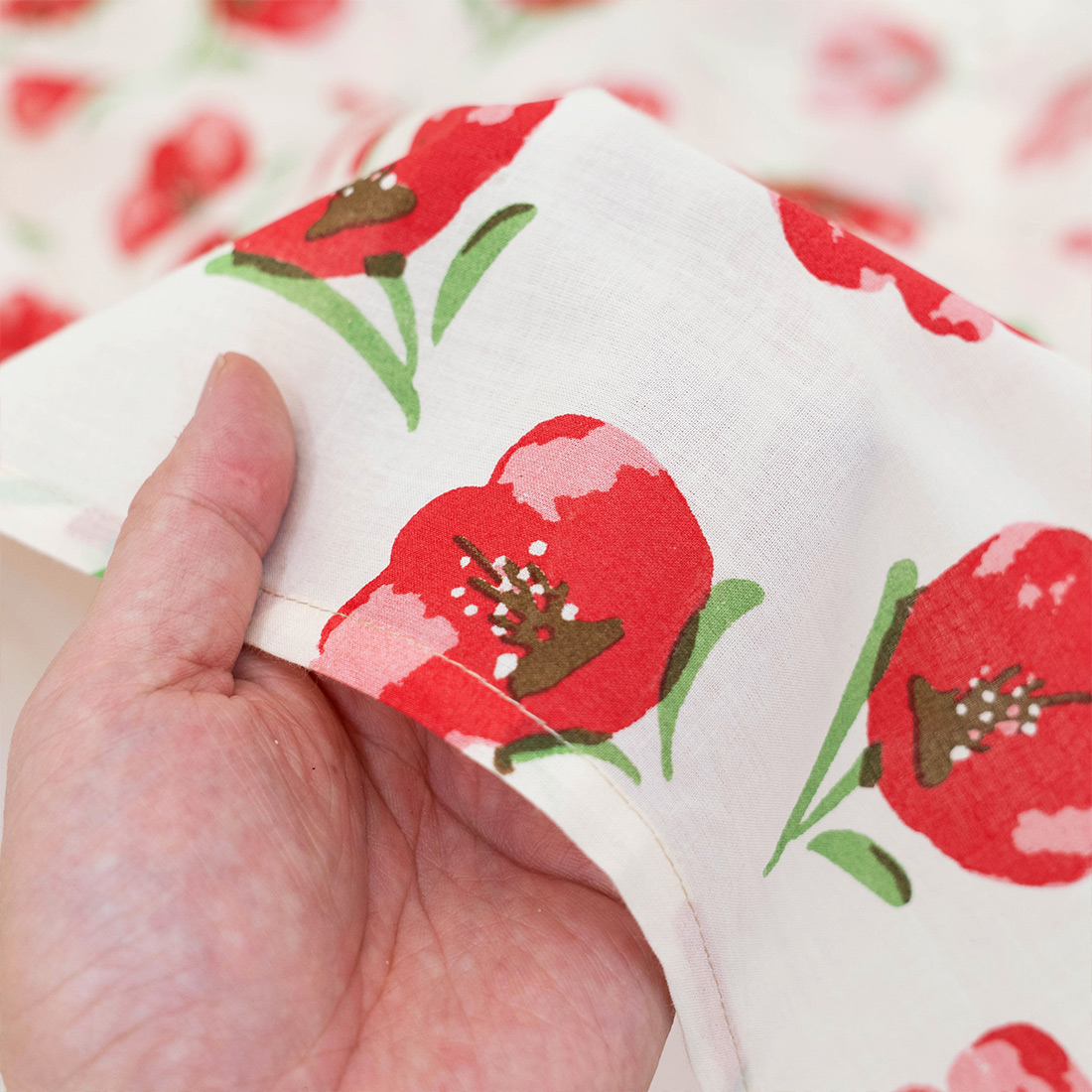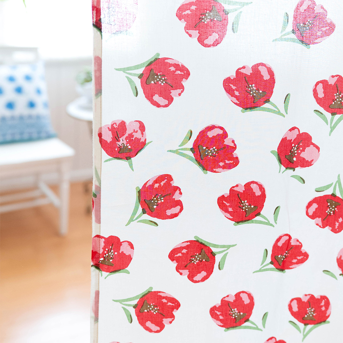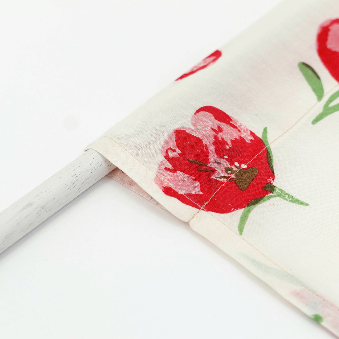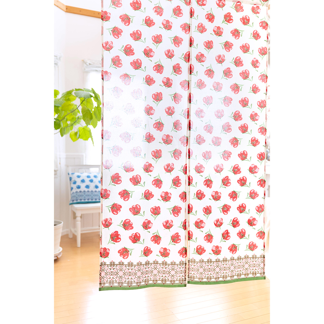 スペイン・アンダルシア地方の陶器をモチーフにしたポピー柄のれん。日々の暮らしに華やぎを添えます。