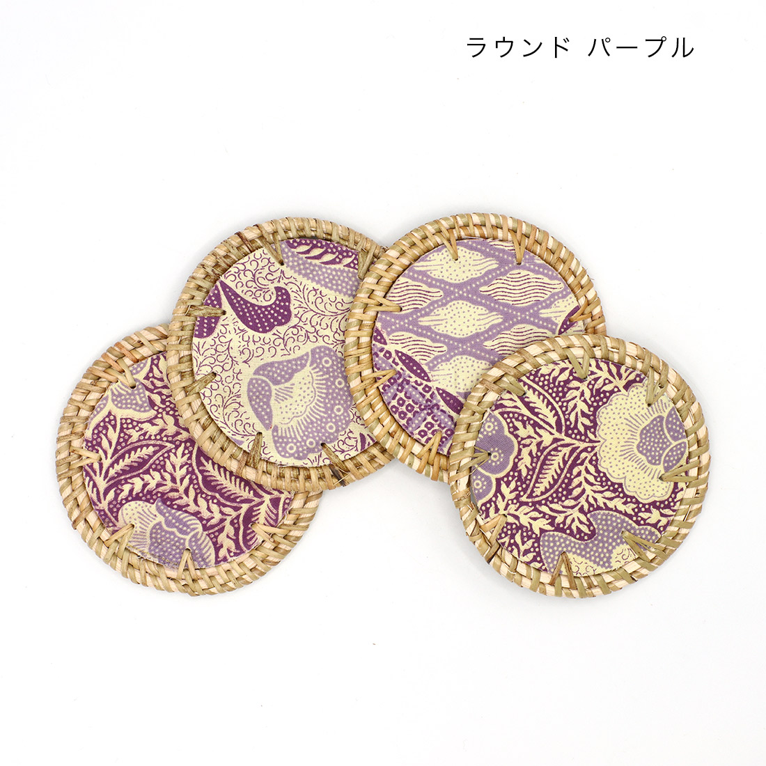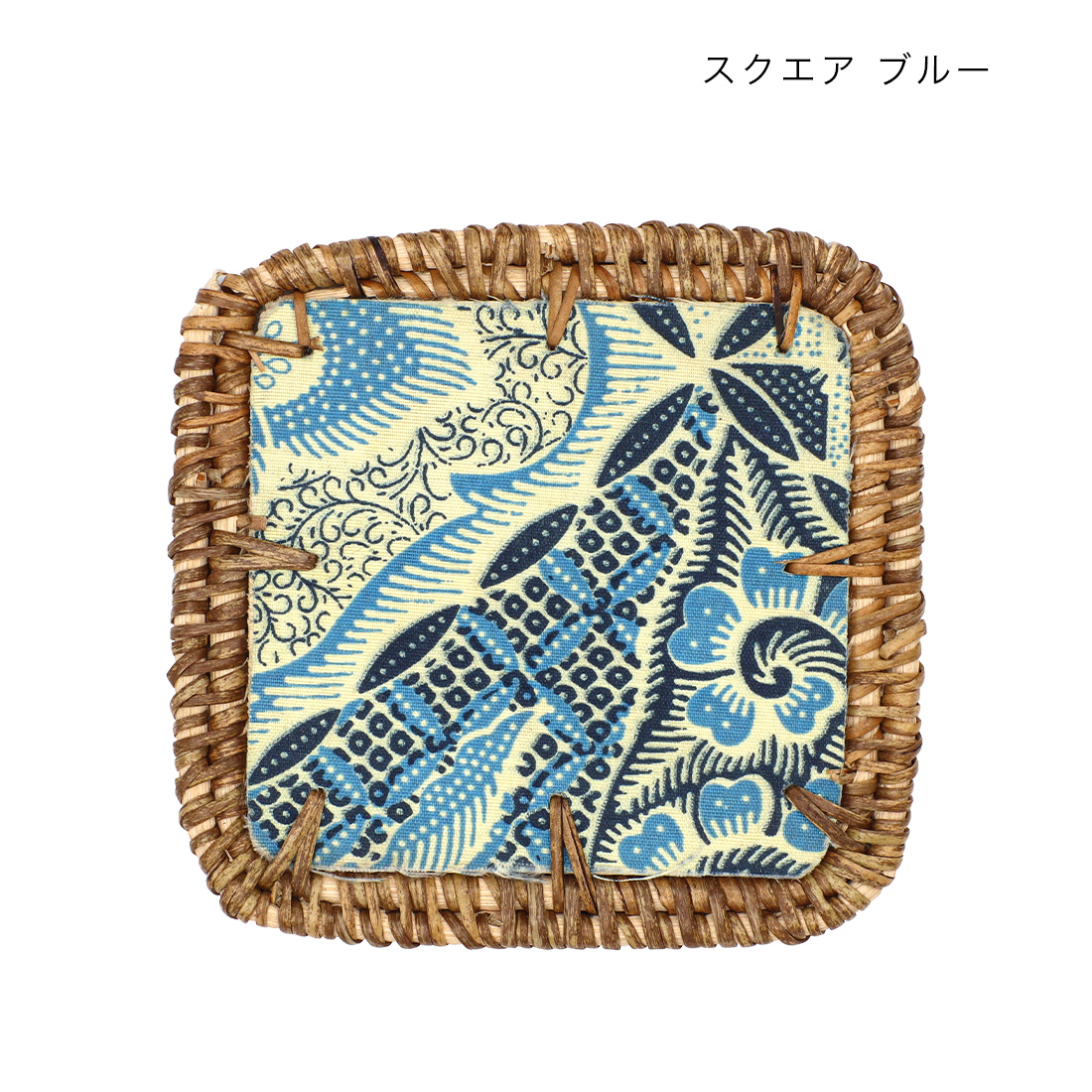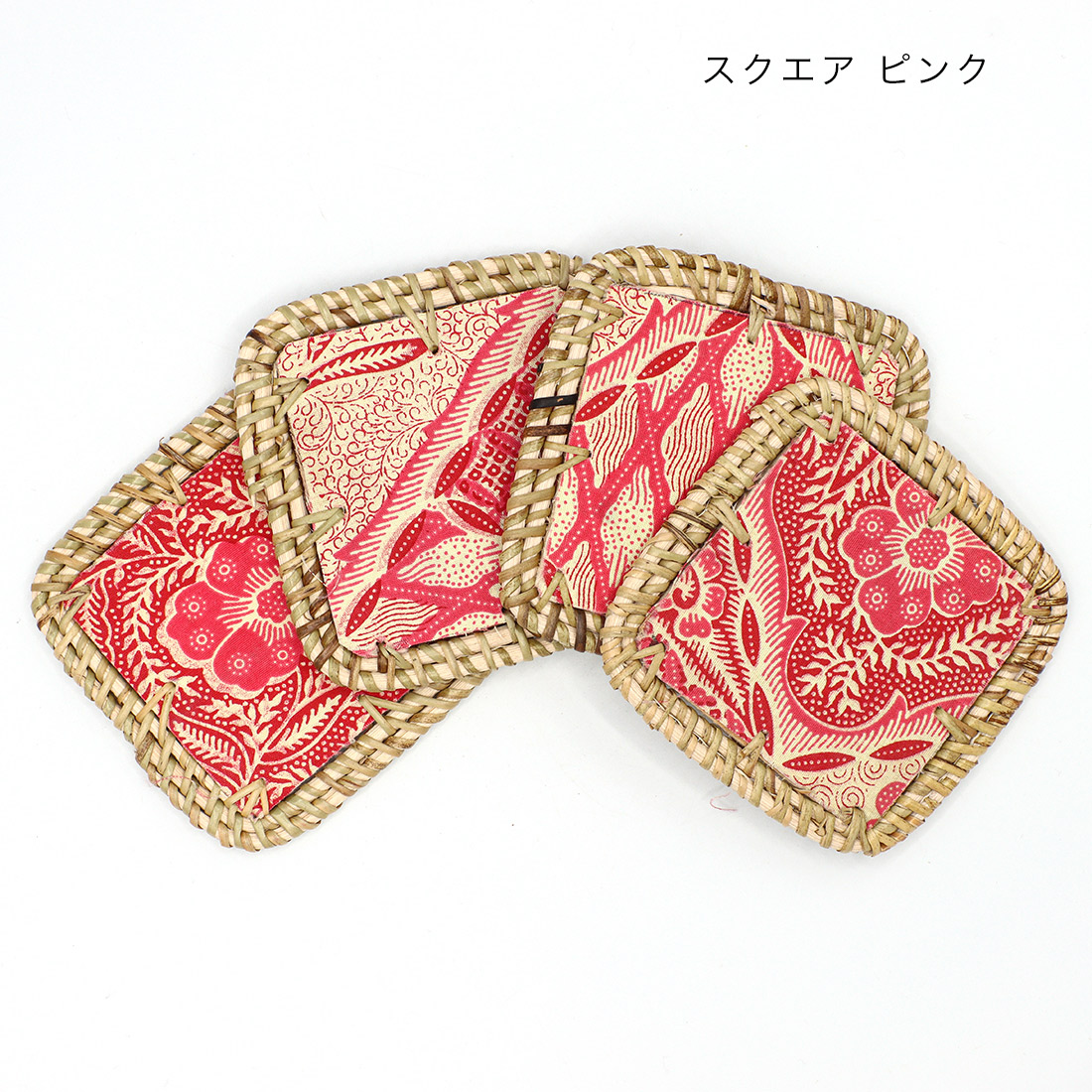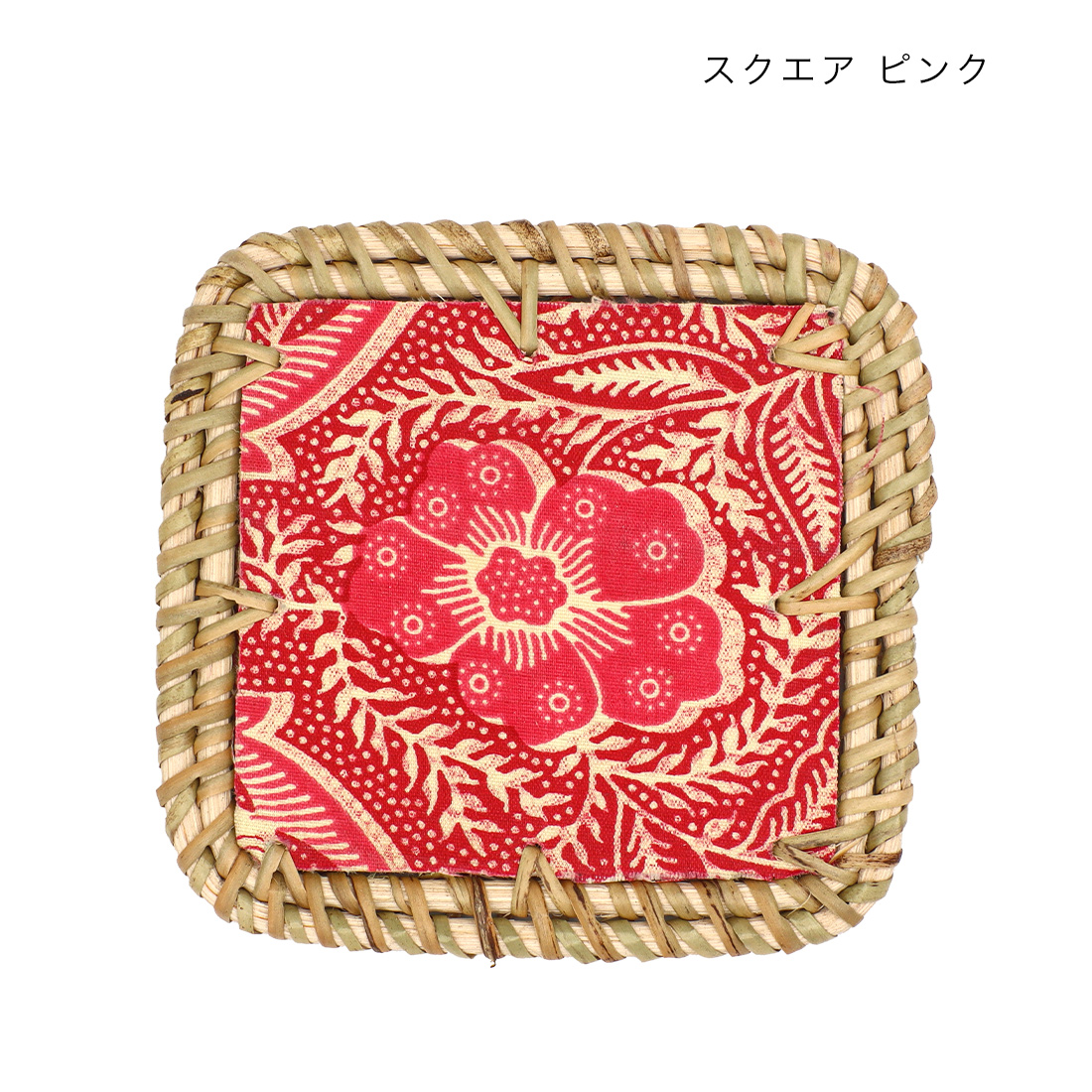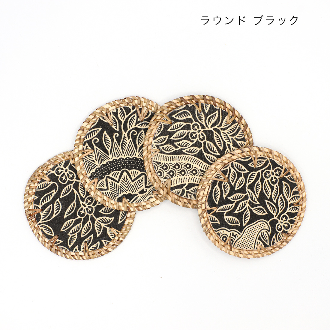 インドネシアの伝統技法・バティック(ろうけつ染め)の柄をモチーフにした、雑材コースター。