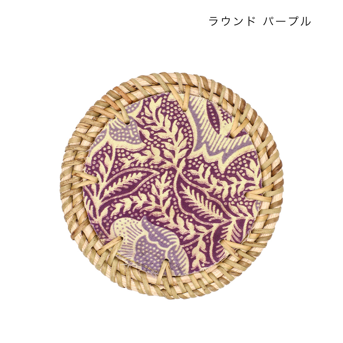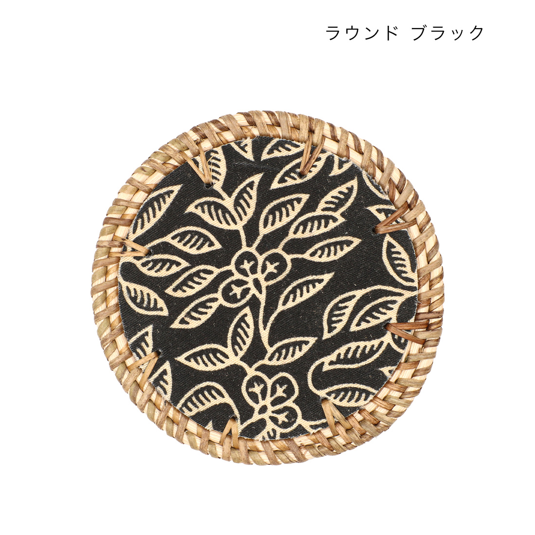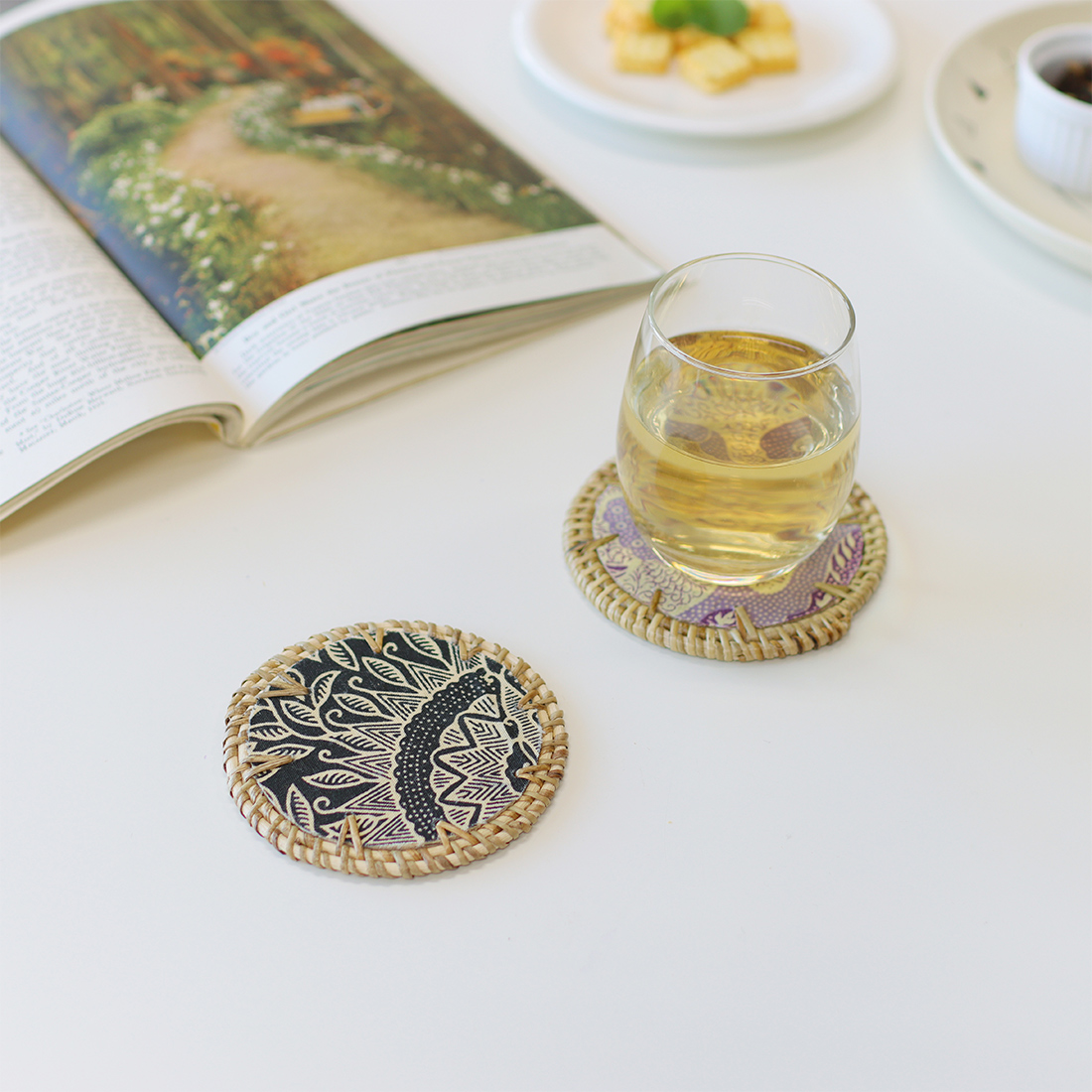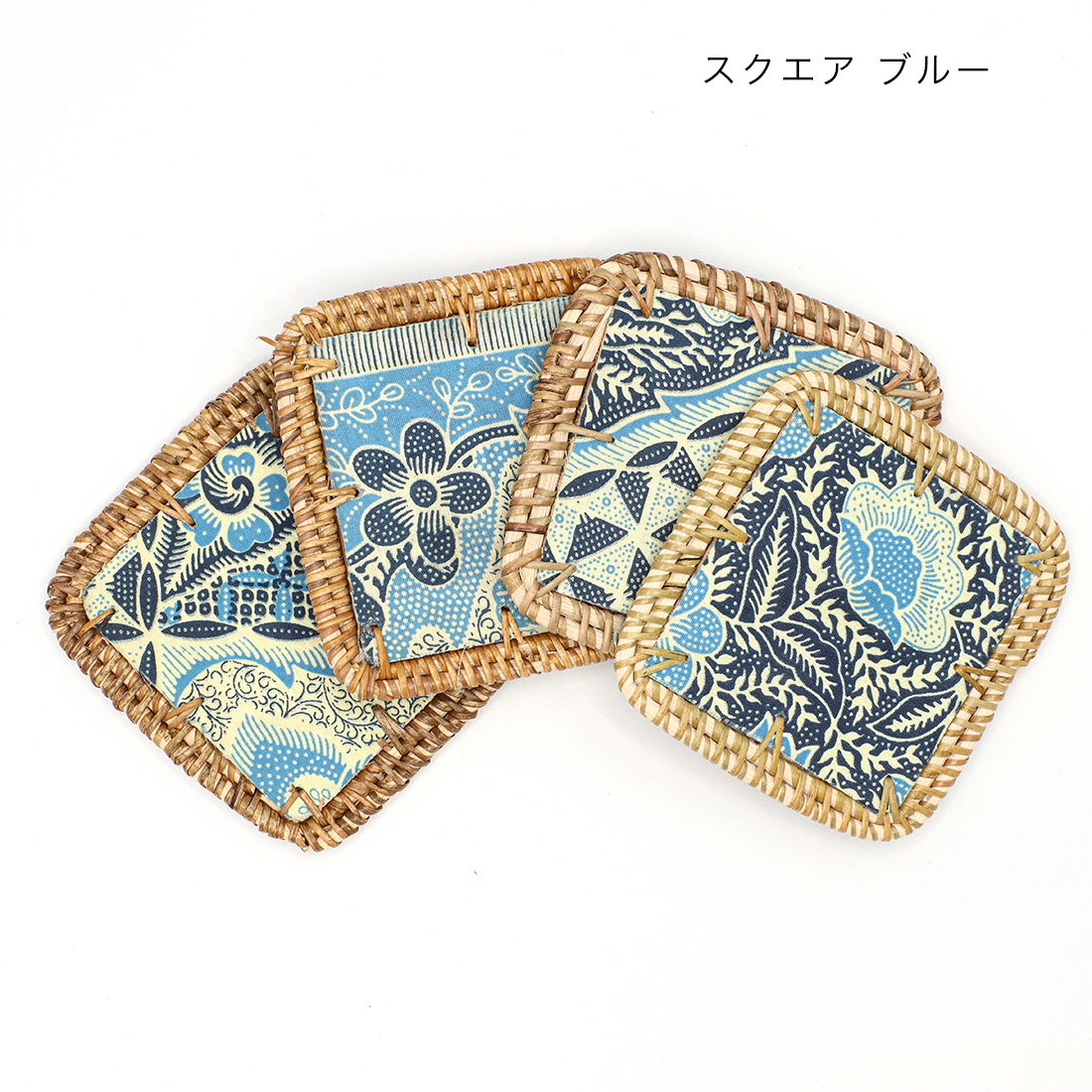 インドネシアの伝統技法・バティック(ろうけつ染め)の柄をモチーフにした、雑材コースター。